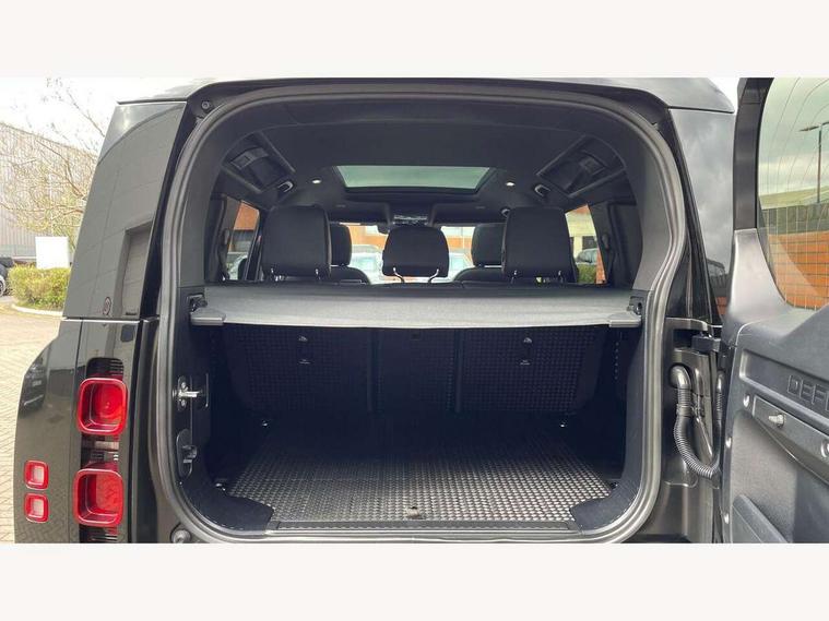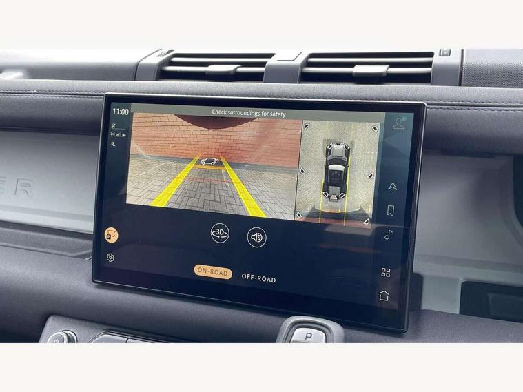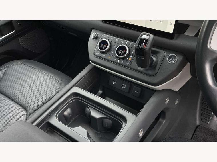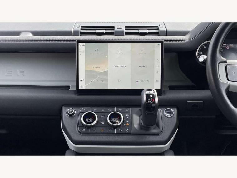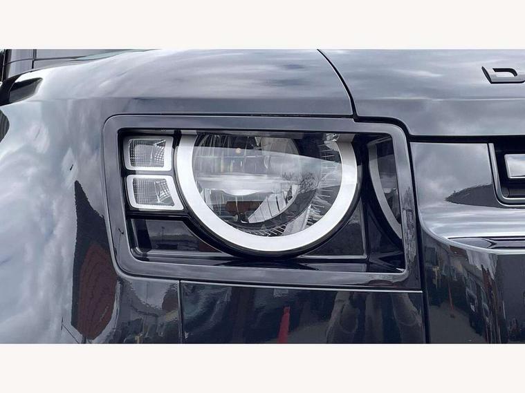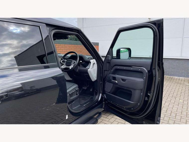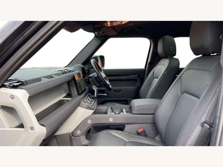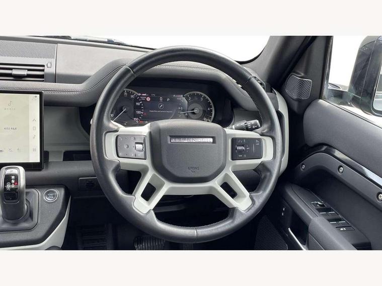 360 degree parking aid, 3D Surround Camera with 360 View, 180 Rear View, Front Traffic Detection, Forward Vehicle Guidance, Tow Hitch Assist and clear sight Ground View, Adaptive cruise control, Android Auto, Apple CarPlay, Assisted tailgate with soft close, Bluetooth system, Brake pad wear indicator, Connected navigation pro, Driver condition monitor, Electric power assisted steering (EPAS), Lane keep assist, Push button start, Traffic sign recognition with adaptive speed limiter, Trip computer, Wade Sensing, 8 speed automatic transmission, All wheel drive system, Twin speed transfer box, DAB Radio (Digital Audio Broadcasting), Meridian 400w sound audio system with 11 speakers and subwoofer, Pivi pro connected, Auto high beam assist, Automatic headlight levelling, Automatic headlights, Centre high mounted stop light, Electric heated/power fold door mirrors with approach lights and auto dimming driver side, Electric windows with one touch open/close and anti-trap, Follow me home lighting, Front fog lights, Heated rear window with timer, Heated windscreen, LED tail lights, Premium LED headlights with signature DRL, Privacy glass, Puddle lights, Rain sensing windscreen wipers, Rear fog lights, Rear side wing doors, Rear wiper, Side hinged tailgate, Trailer stability assist, X-Dynamic badge, 12V power socket in loadspace, 3 seat bench in 2nd row, Alpine lights, Durable rubber cabin flooring, Durable rubber loadspace flooring, Footwell lights, Front head restraints, Loadspace cover, Loadspace Hook, Multifunction steering wheel, Overhead stowage for sunglasses, Rear headrests, Rear ISOFIX, Rear reading lights, Single front passenger seat, Standard seat configuration, Storage glovebox, Sunvisors with illuminated vanity mirrors, Online pack with data plan - Defender, 5 x 3 point seatbelts, ABS, Brake hold function, Cornering brake control (CBC), Customer configurable autolock, DSC - Dynamic Stability Control, EBD - Electronic brakeforce distribution, Electric parking brake (EPB), Emergency brake assist, Emergency braking, ESP + traction control, Front airbags with passenger seat occupant detector, HDC - Hill descent control, Hill launch assist, Low traction launch, Power operated child locks, Remote for (e-Call, Optimised assistance call, InControl app, Climate, beep and flash and door), RSC - Roll stability control, Seat belt reminder, TPMS (Tyre pressure monitoring system), Alarm, Immobiliser, Intrusion sensor, Keyless entry, Locking wheel nuts,