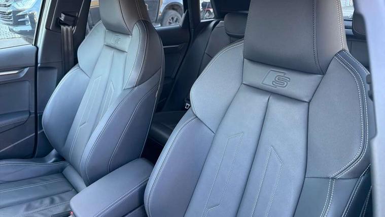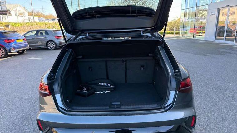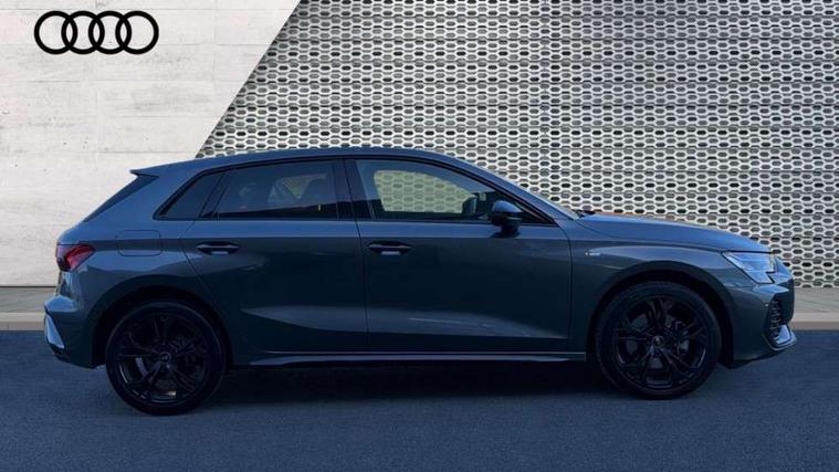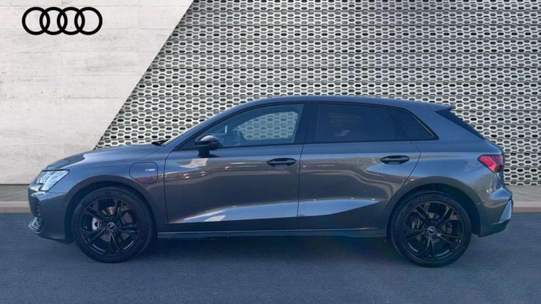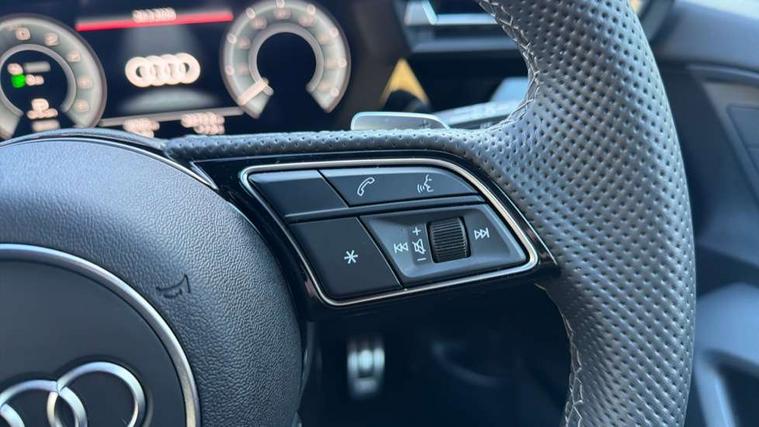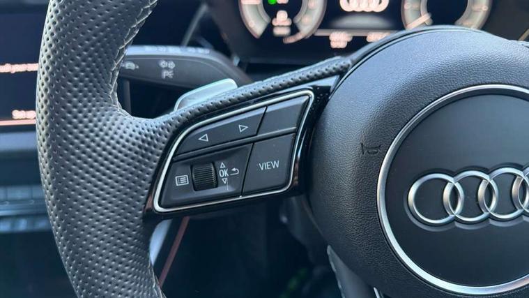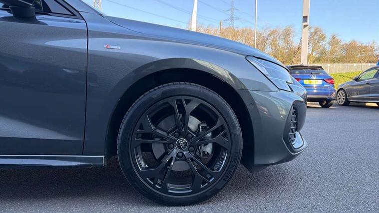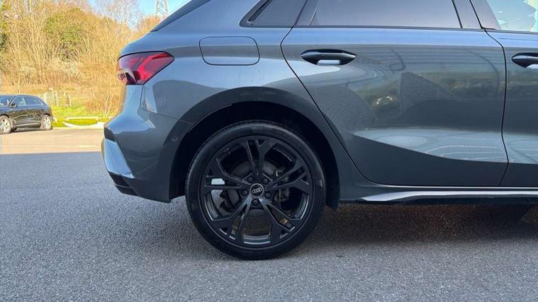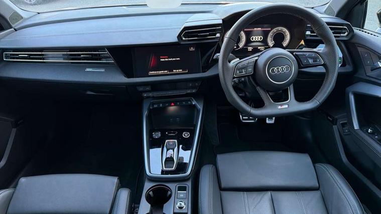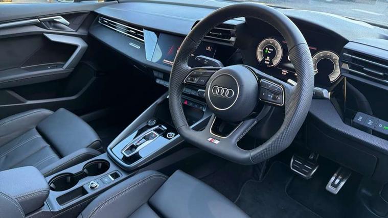 Adaptive cruise control (ACC), Adjustable speed limiter, Audi drive select (Auto, Comfort, Dynamic, Efficiency and Individual), Audi virtual cockpit plus - 12.3" full HD resolution dynamic digital instrument cluster, Automatic start/stop system with recuperation, Bluetooth interface, Camera based traffic sign recognition, Collision avoidance assistant, Driver attention and fatigue detection, e-Call (emergency call), Electromechanical power speed sensitive steering, Emergency assist, Intersection assist, Lane departure warning system, MMI Navigation Plus with high resolution 10.1" colour touch screen display, Park Assist with parking system Plus, Reversing camera, Service indicator, Smartphone interface with app store includes wireless Apple carplay, Android auto and Amazon alexa integration, Trip computer, Voice control system with natural language interaction, CCS socket for DC charging, Charging cable for public charging, mode 3 (type 2), 32 A, Standard suspension, Type 2 socket for AC charging, Audi Phonebox light with wireless charging, Audi sound system - 10 loudspeakers including centre loudspeaker and subwoofer, DAB Digital radio, USB ports with charging function in the rear, Acoustic glass windscreen, All weather light, Anthracite grey Audi rings (front and rear), Audi beam uses LEDs to project the Audi logo onto the ground as you exit your A3, Auto dimming frameless rear view mirror, Automatic dynamic range control, Black accents front and rear bumpers, Black accents in the area of the Audi single frame grille, Black accents window trims strips, Dipped beam, main beam, position light and turning light, Electrically adjustable/heated/folding/auto dimming door mirrors with integrated LED indications + kerb view function for passenger side, Exterior model badging, Front and rear side air inlets in grained matt black with dark liquid chrome frame, Front electric windows, Front radiator grill in high gloss dark chrome, Heat insulating glass windscreen, Illuminated door sills with aluminium inserts at the front with S logo, Intersection light, Invisible tailpipe, LED 3rd brake light, LED brake lights, LED daytime running x3, LED headlights with LED rear lights and dynamic rear indicators, LED rear number plate lights, LED reverse light, LED tail lights, Light and rain sensors, Manoeuvring light, Motorway light, Privacy glass - dark tinted rear window, rear door and side windows, Rear diffuser and grill in grained matt black with inlay in dark liquid chrome, Rear electric windows, Rear side wing doors, Rear wiper, S roof spoiler, Side sill trim in dark liquid chrome, Static cornering light, 12V socket and storage compartment in front centre console, 3 seat bench in 2nd row, 3 spoke flat bottomed leather multifunction sport steering wheel with gear shift paddles, 3-zone deluxe automatic air conditioning, 4 way electrically adjustable lumbar support for driver and front passenger, 40/20/40 split folding rear seat bench, Black cloth headlining, Black front and rear floor mats, Convenience auxiliary air conditioning, Front and rear centre armrest in artificial leather with contrasting stitching on armrests and instrument panel, Front and rear headrests, Heated front seats, Height and reach adjustable steering wheel, i-Size child seat mounting on the front passenger side and outer rear seats, i-Size and top tether on the outer rear seats, Manual boot compartment lid, Manually adjustable front seats, Rear centre armrest with cupholder, S badging on the steering wheel, Seat side bolsters, Single front passenger seat, Stainless steel pedals and front footrest in black, Twin leather upholstery with front sports seats S embossed logo, Aluminium interior elements pack - A3, 3x3 point rear seat belts, Acoustic vehicle alerting system, Driver and front passenger airbag with passenger airbag deactivation, Electronic Stabilisation Control (ESC) including ABS, ASR and EDL, First aid kit with warning triangle and 2 safety vests, Front side airbags with head airbags and interaction airbag, Hill hold assist, Pre-sense front with pedestrian and cyclist detection, Seatbelt monitoring, Tyre pressure loss indicator, Anti theft alarm, Anti-theft wheel bolts, Electronically operated child locks, Immobiliser, Black dashboard, 18" 5 Y twin spoke style alloy wheel in metallic black, Tyre repair kit,