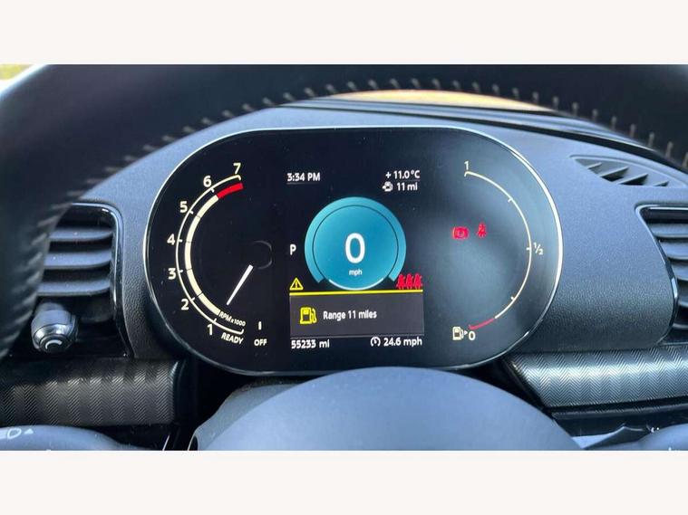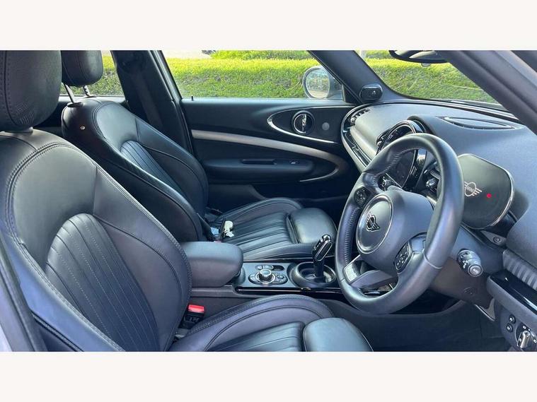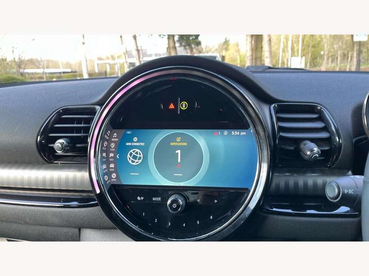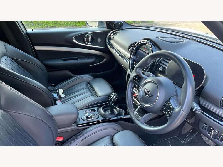 Active Guard incl speed limiting and lane departure functions with auto steering, and front collision warning with brake intervention, Automatic start/stop function with brake energy recuperation, Car sharing preparation, Compatible mobile phone bluetooth with audio streaming, Electro-mechanical speed dependant steering assistance, Instrument cluster, Mini E-call, MINI TeleServices, On board computer, Rear parking distance control, 7 Speed steptronic transmission with double clutch including electronic gear shifter, Double Vanos system, Fully variable valve control, High precision injection, Performance Control, 6 speakers, FM tuner and DAB digital radio, Body colour fuel filler cap, Chrome lower front grille grating, Chrome radiator grille bars, Door sill strips, Dynamic brake lights, Electric windows, Exhaust tailpipe, Heated rear window, Heated windscreen washer jets, LED headlights with closed ring as daytime driving lights, LED rear light with union jack design, Left exhaust tailpipe with chrome finisher, Model logo on rear doors, Rain sensor with auto headlights, Rear fog lights, Rear window wiper, Side scuttle panel with integrated indicator, Split rear doors, Sun/heat protection glass, White indicator lenses, 12V Accessory socket in centre console, 360L luggage compartment capacity, 4 lashing eyes in luggage compartment, 60/40 split folding rear seat, Anthracite headlining with grab handles and clothes hooks, Chrome air vents, gear lever base and door handles, Chrome interior highlights, Cupholders, English handbook, Front and rear head restraints, Glove compartment, Height and length steering column adjustment, Interior lighting with 12 basic colours selectable via toggle switch in roof, Isofix rear child seat preparation, Leather gearshift lever and handbrake gaiters, LED reading lights, vanity mirror lights, front foot well light and spotlight on front seats, Manual air conditioning, MINI Yours exterior badging in C-Pillar, MINI Yours floor mats, Multifunction steering wheel, Nappa leather steering wheel with MINI Yours badge, Storage compartments in doors, Sunvisors with vanity mirrors, Toolkit, Excitement pack - Clubman, Extended interior lighting pack - Mini Clubman, Navigation pack - Clubman, 2 tone horn, 3 point seatbelts on all seats, 6 Airbags - front, side, head and seat belt tensioners, Anti-lock braking system (ABS), DSC - Dynamic Stability Control, Electronic handbrake, Front and rear disc brakes, Tyre pressure monitoring system, Alarm system with tilt sensor, monitoring doors, bonnet interior and tailgate, Auto drive away locking, Deadlocking function, Electronic vehicle immobiliser, Locking wheel bolts, Start/stop toggle with keyless go,