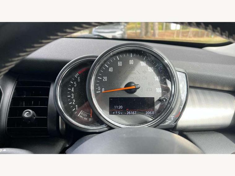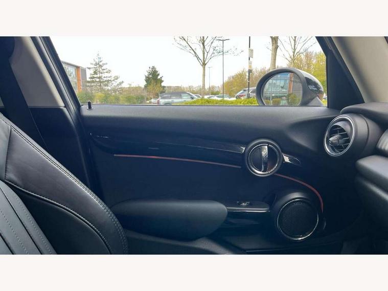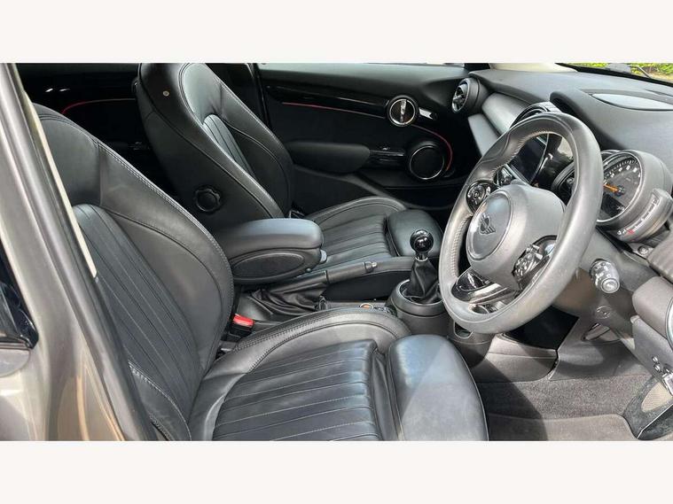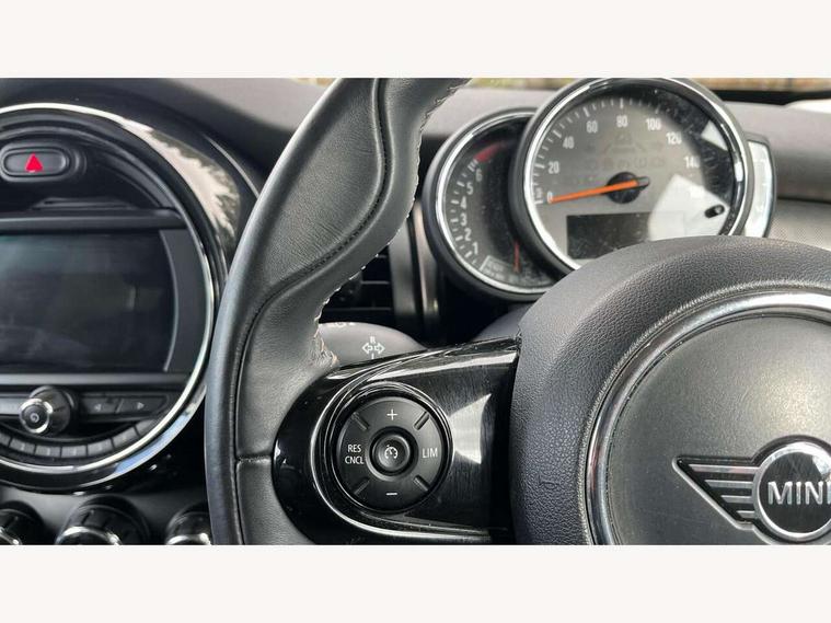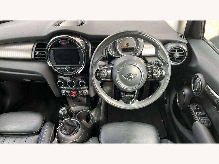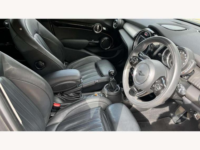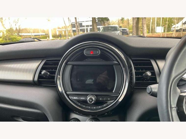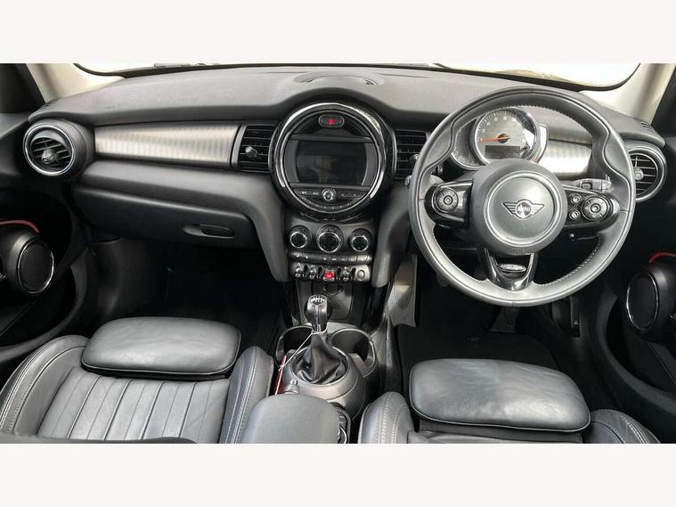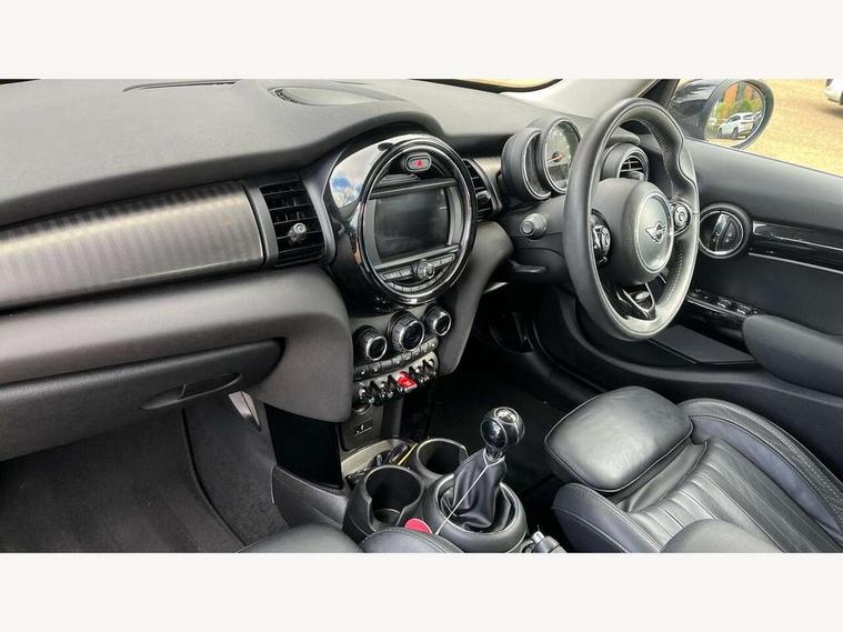 Compatible mobile phone bluetooth with audio streaming, Cruise control with brake assist, Instrument cluster, Mini E-call, MINI TeleServices, On board computer, Service interval indicator, 6.5" touchscreen with LED ring, FM tuner and DAB digital radio, Automatic headlight activation switch, Body colour fuel filler cap, Chrome border high gloss black slats radiator grille, Chrome line exterior, Dynamic brake lights, Electric front+rear windows, Heated rear window, Heated windscreen washer jets, LED headlight with closed ring and daytime driving lights, Left exhaust tailpipe with chrome finisher, Metal door sill strips with MINI imprint, Model logo Cooper on right of tailgate, Rain sensor window wipers, Rear fog lights, Rear LED lights with union jack design, Rear window wiper, Side scuttle panel with integrated indicator, Sun/heat protection glass, White indicator lenses, 12V Accessory socket in centre console, 4 lashing eyes in luggage compartment, 60/40 split folding rear seat, Chrome interior highlights, Cupholders, Front and rear isofix with front passenger airbag deactivation, Glove compartment, Height and length steering column adjustment, Interior lighting with 12 basic colours selectable via toggle switch in roof, Leather gearshift lever and handbrake gaiters, LED reading lights, vanity mirror lights, front foot well light and spotlight on front seats, Manual air conditioning, Mechanical seat adjustment, driver seat height adjust, forward/back and front seats backrest, Mini logo projection on floor from drivers exterior mirror, MINI Yours leather steering wheel with silver contrasting stitching with MINI Yours badge, Multifunction steering wheel, Storage compartments in doors, Sunvisors with vanity mirrors, 3 point seatbelts on all five seats, 6 Airbags - front, side, head and seat belt tensioners, Anti-lock braking system (ABS), DSC - Dynamic Stability Control, Front and rear disc brakes, Hill start assist, Single tone fanfare horn, Tyre pressure monitoring system, Alarm system with tilt sensor, monitoring doors, bonnet interior and tailgate, Electronic vehicle immobiliser, Start/stop toggle with keyless go, Chrome line interior, Tool kit,