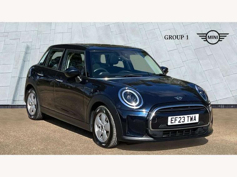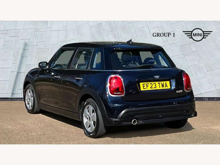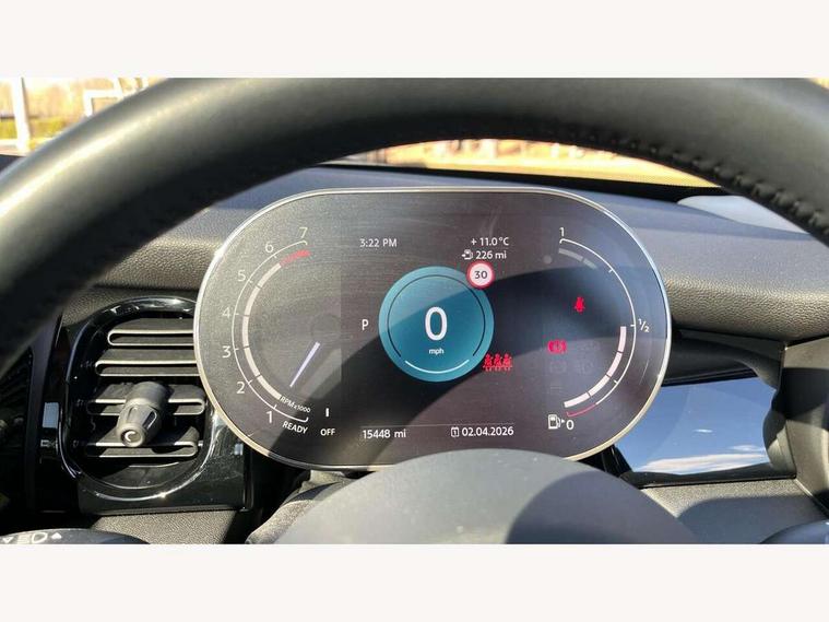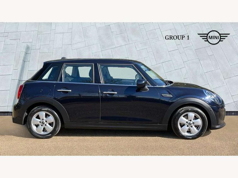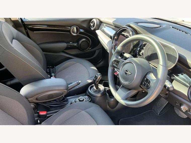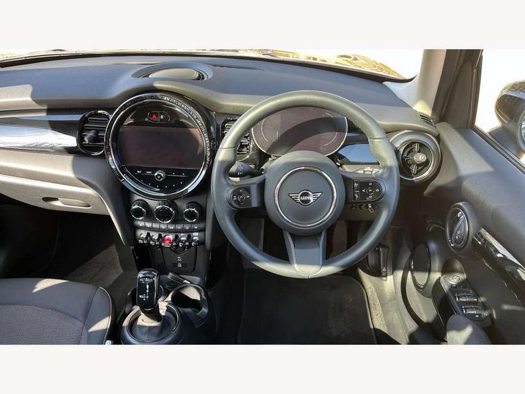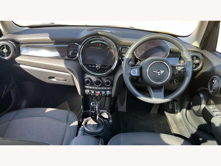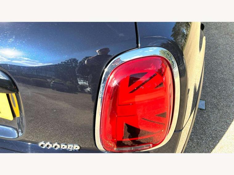 Apple CarPlay, Automatic start/stop function with brake energy recuperation, Compatible mobile phone bluetooth with audio streaming, Cruise control with brake assist, Electro-mechanical speed dependant steering assistance, Flexible car sharing preparation, Instrument cluster, Mini E-call, MINI TeleServices, On board computer, Service interval indicator, Double Vanos system, Fully variable valve control, Gear change indicator display, High precision injection, Performance Control, Steptronic transmission with double clutch, 8.8" touchscreen with LED ring, FM tuner and DAB digital radio, 3rd brake light, Automatic headlight activation switch, Body colour fuel filler cap, Chrome border high gloss black slats radiator grille, Dynamic brake lights, Electric front+rear windows, Exhaust tailpipe on left with chrome finisher, Heated rear window, Heated windscreen washer jets, LED headlight with closed ring and daytime driving lights, Metal door sill strips with MINI imprint, Model logo Cooper on right of tailgate, Rain sensor window wipers, Rear fog lights, Rear LED lights with union jack design, Rear side wing doors, Rear window wiper, Side scuttle panel with integrated indicator, Sun/heat protection glass, White indicator lenses, 12V Accessory socket in centre console, 3 seat bench in 2nd row, 4 lashing eyes in luggage compartment, 60/40 split folding rear seat, Ambient lighting, Carbon black colour line - Knee roll and door armrest, Chrome interior highlights, Cupholders, Front and rear head restraints, Front and rear isofix with front passenger airbag deactivation, Front and rear velour floor mats, Glove compartment, Height and length steering column adjustment, Interior lighting with 12 different colours across the dashboard, underneath door bezel with illuminated laser-engraved design on central display, Leatherette gearshift lever and handbrake gaiters, LED reading lights, vanity mirror lights, front foot well light and spotlight on front seats, Manual air conditioning, Mechanical seat adjustment - forward/back & backrest for front seats and driver seat height adjust, Multifunction steering wheel, Satellite grey headlining including grab handles and clothes hooks, Single front passenger seat, Sport leather steering wheel with speed limiter and audio/communication controls, Storage compartments in doors, Sunvisors with vanity mirrors, 3 point seatbelts on all five seats, 6 Airbags - front, side, head and seat belt tensioners, Anti-lock braking system (ABS), Child locks on rear doors, DSC - Dynamic Stability Control, Front and rear disc brakes, Hill start assist, Single tone fanfare horn, Tyre pressure monitoring system, Alarm system with tilt sensor, monitoring doors, bonnet interior and tailgate, Electronic vehicle immobiliser, Start/stop toggle with keyless go, Piano black interior trim, Tool kit, Tyre repair kit,