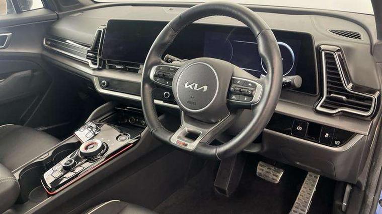 12.3" Driver display screen, 12.3" Touchscreen navigation system, 360 degree around view monitor, Apple car play/Android Auto, Blind spot collision avoidance assist, Blind spot view monitor, Drive mode selector, Driver attention warning, E-call, Emergency stop signalling system, Forward collision avoidance assist (FCA) - city/pedestrian/cyclist/junction covering, Front and rear parking sensors, Highway Driving Assist (HDA), Intelligent speed limit assist, Kia Connect (UVO), Lane Following Assist (LFA), Lane keep assist, Low washer fluid warning, Motor driven power steering, Parking collision avoidance assist (PCA), Rear cross traffic collision avoidance assist (RCCA), Reversing camera system integrated into centre fascia screen, Safe exit warning (SEW), Smart cruise control with stop and go functionality, Smart power tailgate, Speed limiter, Trip computer, Windscreen washer level indicator, Wireless Smartphone charger, 1x USB-C port in front, 2 rear USB-C ports, Bluetooth audio streaming, DAB Radio with MP3, Harman Kardon premium sound system with 8 speakers, Steering wheel mounted audio controls, USB C type charging ports on centre console, USB port for connection of a media device, All round electric windows with drivers and front passenger auto up/down function, Auto dimming rear view mirror, Automatic headlight control system, Automatic window defogger, Black and body coloured bumpers, Body colour exterior door handles, Body colour radiator upper garnish and door garnish, Dual LED headlights with adaptive driving beam, Electrically adjustable/heated/folding door mirrors with LED indicators, Front and rear chrome skid plates, Gloss black door mirrors, Gloss black radiator grille, Gloss black side sill and wheel arch body mouldings, Glossy black roof rack, GT-Line exterior styling, Heated rear window, High beam assist, Interior electrochromic mirror, LED daytime running lights, LED front fog lamps, LED High mounted stop light, LED rear combination lamp, Panoramic sunroof with tilting and sliding function with electric blind, Rain sensing wipers with aero blades, Rear fog lamp, Rear privacy glass, Rear side wing doors, Rear spoiler, Rear wiper, Satin finished beltline, Silver window surround, Tinted rear glass, Trailer stability assist, 12V power socket in front centre fascia and luggage compartment, 3 seat bench in 2nd row, 3 x passenger assist grips, 40/20/40 split folding rear seat, All-round height adjustable headrests, Alloy pedals, Automatic air conditioning, Black headlining, Centre console storage box, Cupholders in rear armrest, Customisable ambient lighting, Door courtesy lamps, Drink holder at centre armrest, Driver and front passenger side sunvisors with illuminated vanity mirrors, Drivers seat power lumbar support, Electric adjustable driver seat with memory function, Electric adjustable front passenger seat, Front and rear door storage, Front seat and rear pockets, Gear shift indicator, Glovebox illumination, GT-Line Interior Styling, Heated front and outer rear seats, Heated steering wheel, ISOFIX Child seat top tethers and anchor fixings outer rear seats, Leather steering wheel, LED front cabin light, LED interior personal lamp, LED lighting in overhead console, LED rear reading lights, Luggage area LED light, Luggage area load cover, Luggage area parcel shelf, Luggage board, Luggage compartment under floor storage, Luggage net with hooks, Manual adjust steering wheel, Metal paint interior door handles, Paddle shift controls, Rear air conditioning, Rear cabin light, Rear coat hooks, Single front passenger seat, Suede leather upholstery, Ventilated front seats, Ventilation ducts to rear compartment, Active front headrests, All round 3-point seatbelts, Anti-lock braking system (ABS), Dual front side airbags, Dual horn, Dynamic brake control, Electronic parking brake with auto hold function, Electronic stability control with downhill brake control, Front passenger airbag cut-off switch, Front seatbelt pretensioners + load limiters, Height adjustable front seatbelts, Hill start assist control (HAC), Impact sensing auto door unlocking, Multi collision brake assist, Rear airbags, Rear door child safety locks, Rear seat alert system, Seatbelt reminder warning, Traction control, Twin curtain airbags, Twin front airbags, Tyre pressure monitoring system, Vehicle stability management, Customisable automatic door locking, Customisable automatic door unlocking, Door deadlocks, Engine Start/Stop Button with Smart Entry System, Locking wheel nuts, Smart key with motion sensor, Speed sensitive auto door locking, Thatcham category 2 security alarm and immobiliser, Visible vehicle identification number, Aluminium pattern finish centre fascia and door garnish, 19" GT-Line alloy wheels, Tyre mobility kit,