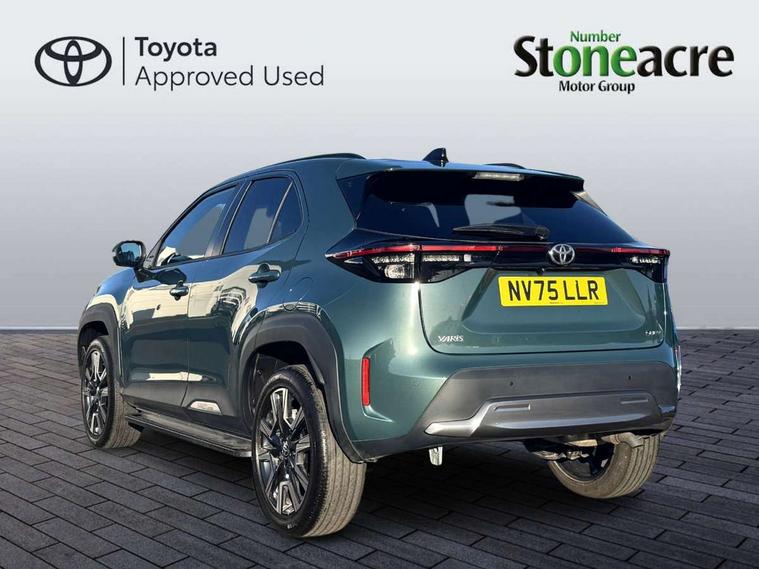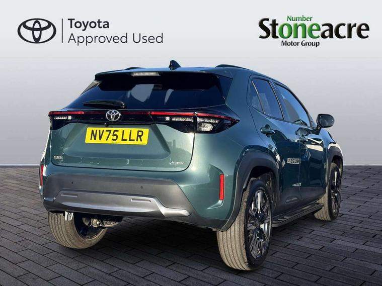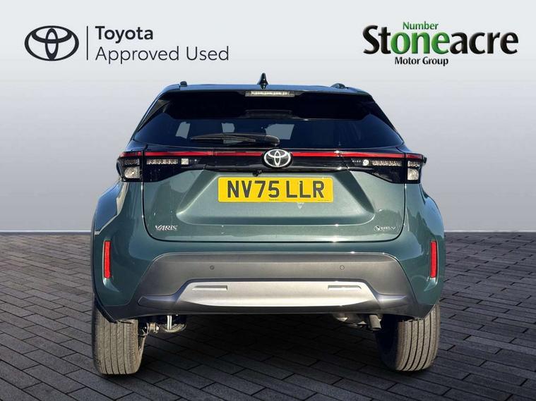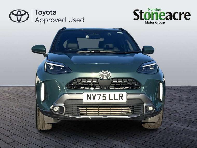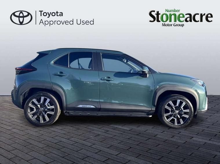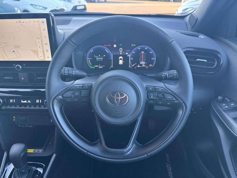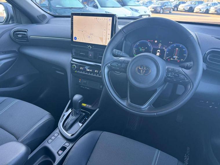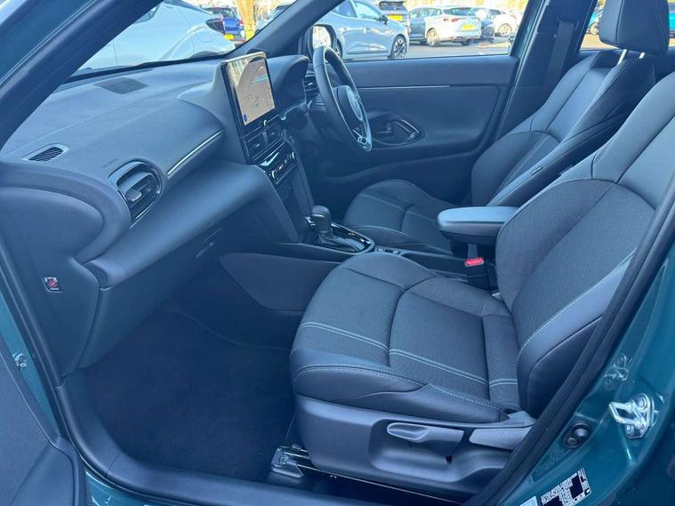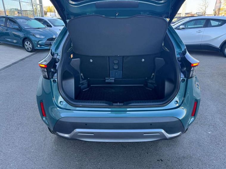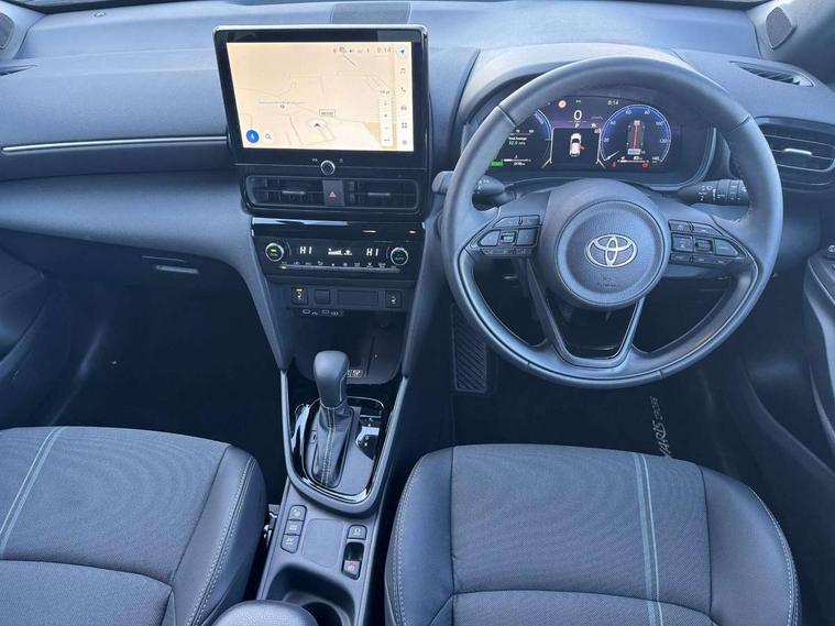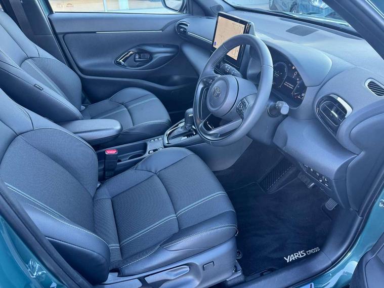 10.5" Multimedia display screen, 10.5" Toyota smart connect+ with navi multimedia system with wireless Smartphone integration incl Apple CarPlay, 360 degree panoramic view monitor, 7" Multi information display screen, Adaptive cruise control, multi info switches on steering wheel, Adjustable speed limiter, Advanced parking assist, Blind spot monitoring, Bluetooth connectivity, Color multi-information display, Digital speedometer, Digital tachometer, Drive mode selector, Driver attention alert system, Dynamic guide lines on reversing camera, eCall emergency system, Electric power steering, Emergency driving stop system, Full range intelligent adaptive cruise control, Hybrid system indicator, Intelligent front and rear parking sensors with clearance sonar and automatic braking, Intersection turn assist, Key reminder warning, Lane change assist, Lane trace assist, My T Connected services, Power tailgate, Pre-collision system enhanced with emergency steering assist, Rear cross traffic alert, Remote boot door release in cabin, Road sign assist - RSA, Safe exit assist, Tailgate, Telephone switch on steering wheel, Wireless Mobile Phone Charger, Steering assisted vehicle stability control, 6 speakers, DAB Digital radio, Front USB Type-C connector, Front USB-C device charger, Acoustic windscreen glass, Anti-jam protection on power windows, Auto dimming rear view mirror, Auto high beam [AHB] with on/off switch, Auto intermittent windscreen wipers, Automatic headlights, Automatic headlights cut-off, Automatically retractable door mirrors, Black door moulding, Black lower front grille, Black protection moulding on side doors, Black roof rails, Black wheel arch mouldings, Body colour door handles, Body colour front bumper, Body colour rear bumper, Electric adjustable heated door mirrors, Follow me home headlights, Front and rear electric windows with auto up/down function, Gloss black upper front grille, Headlight cut off reminder, Indicators integrated on door mirrors, Intermittent rear wiper, Kick activated power back door, LED 3rd brake light, LED daytime running lights guide, LED front fog lights, LED front light guide, LED Indicators, LED projector headlights, LED rear lights with sequential indicators, Manual headlight levelling, Meshed shape upper front grille, Noise reduction layer on windscreen, Pre wiring for towing hook, Privacy glass, Rain sensor, Rear roof spoiler, Rear side wing doors, Rear window defogger, Shark fin antenna, 12v power outlet - front, 12V power point in boot, 2x Rear coat hooks, 3 seat bench in 2nd row, 3 spoke leather steering wheel, 40/60 split deckboard, 40:20:40 split folding rear bench seat, Adjustable rear headrests, Adjustable speed limiter switch on steering wheel, Boot light, Central armrest, Driver and front passenger personal lights, Driver and front passenger Whiplash injury Lesseing seats, Driver and passenger seatback pockets, Dual zone automatic air conditioning, Fabric door trim, Front console box, Front cup holders, Front door pockets, Front head restraints, Front sport seats, Front/rear assist grips, Gear shift indicator, Grey roof lining, Heated driver and passenger seats, Heated steering wheel, Height adjustable driver's seat, Height adjustable front passenger seat, Hooks for luggage holding belts, ISOFIX child restraint system, Lane departure alert switch on steering control, Leather gearshift, LED centre room light, Light on driver and passenger sun visor, Manual telescopic and tilting steering wheel, Mirror on driver and passenger sun visor, Nanoe-X air purifier, Partial synthetic leather upholstery, Pollen air filter, Power adjustable lumbar support on driver seat, Rear cup holders, Rear door pockets, Rear head restraints, Remote air-conditioning system, Single compartment glovebox, Single front passenger seat, Soft tonneau cover, Storage box under boot floor, Voice recognition switch on steering wheel, White ambient lighting in centre console, White ambient lighting in footwell, White ambient lighting on front doors, Yaris cross floor mats, 3x3 point rear seat belts, ABS+EBD+Brake assist, Downhill Assist Control (DAC), Driver and passenger central airbags, Driver and passenger front airbags, Driver and passenger side airbags, Electronic parking brake, Emergency brake light system (EBS), Front seat belt reminder, Hill start assist control (HAC), Passenger airbag on/off switch, Pre-collision system with pedestrian and cyclist detection, Rear door child safety locks, Rear passenger side airbags, Rear seat belt reminder, Traction control, Tyre pressure warning system, Immobiliser, Intrusion alarm, Keyless smart entry with push button start, Power door locks, Power passenger window lock, Remote door lock, Gloss black side air vent surrounds, Tyre repair kit,