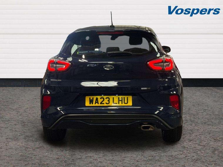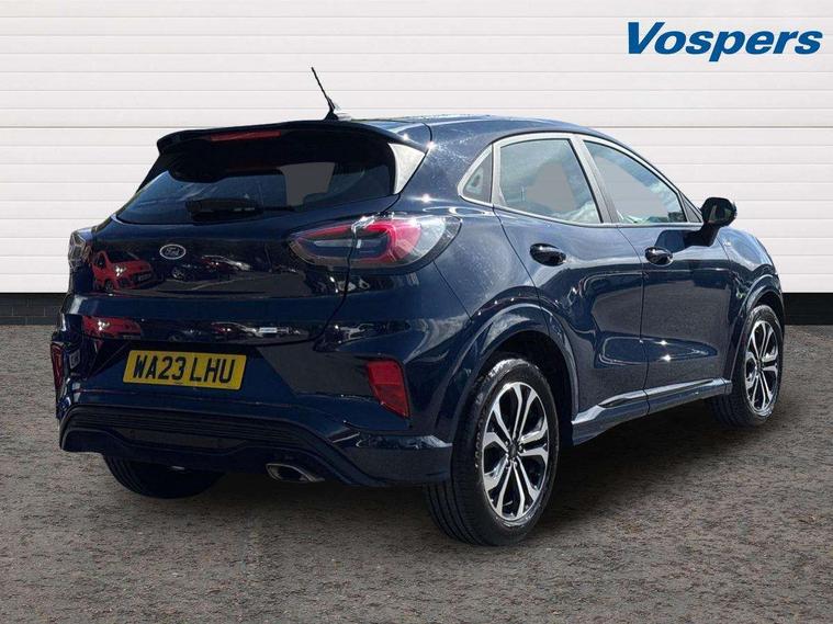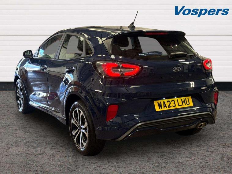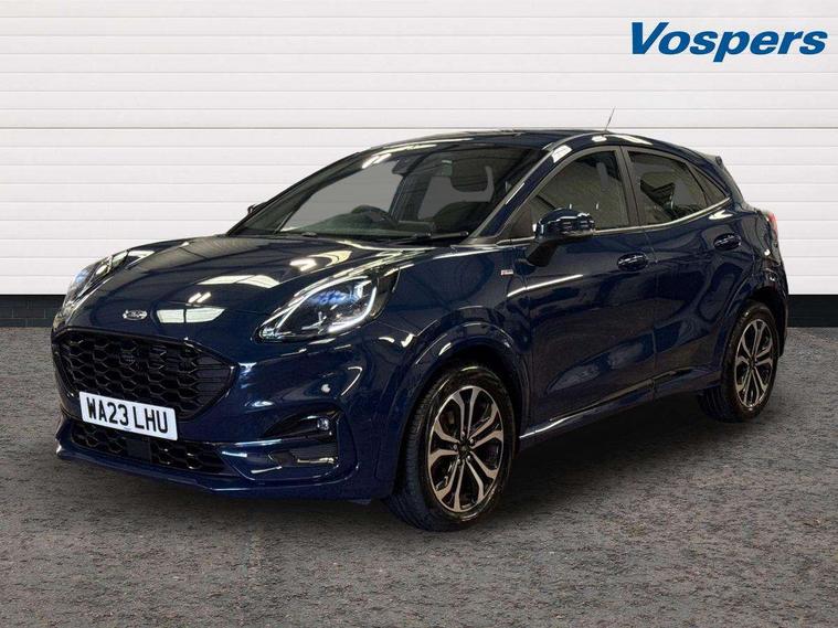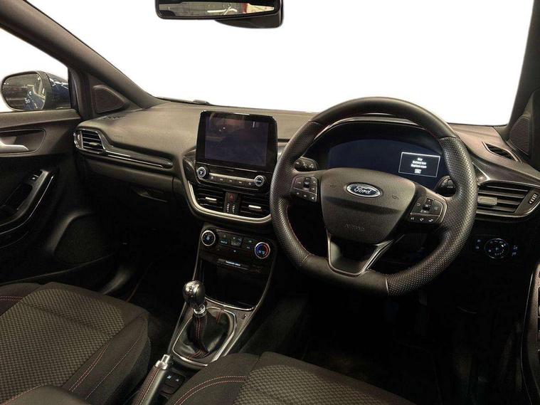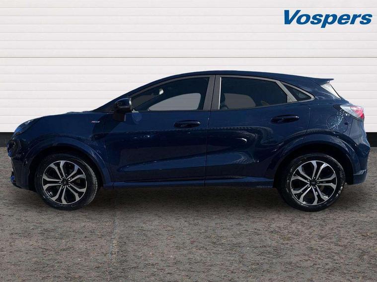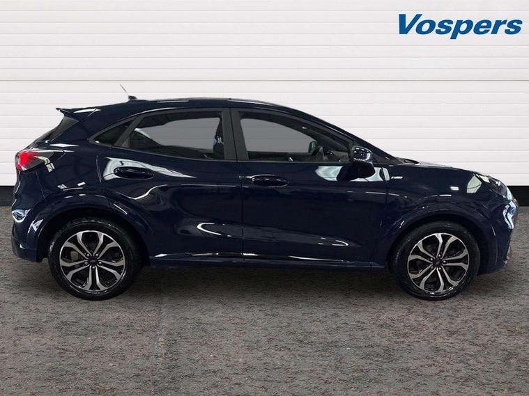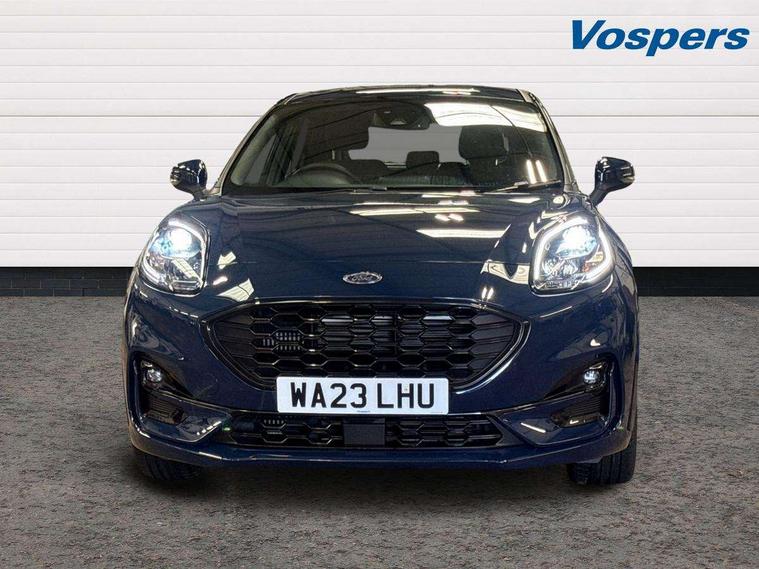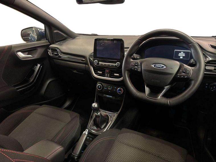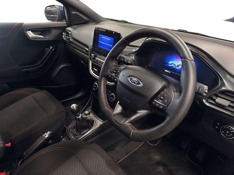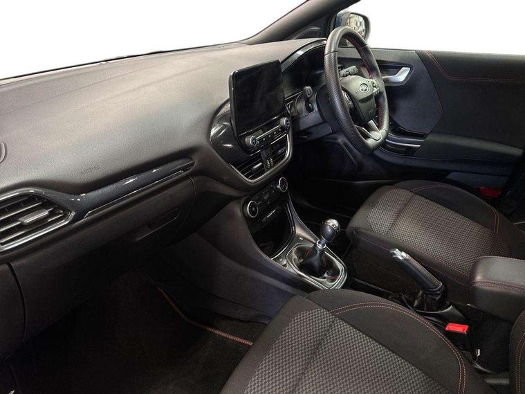 Driver impairment monitor, Emergency call service, Ford easy fuel, Full digital 12.3" instrument cluster, Lane keeping aid with lane departure warning, Power assist steering, Power start button, Rear parking sensor, Selectable drive modes(Normal, Eco, Sport, Slippery and Trail), Speed sign recognition, Sport suspension, Automatic headlights with auto high beam, Automatic rain sensing wipers, LED rear lamps, Power foldable heated door mirrors with puddle lamps, Projector headlamps with LED day time running lights and front fog lamps, Quickclear heated windscreen, Rear side wing doors, Rear wiper, ST-Line body styling kit with unique grille and large body colour rear spoiler, Third brake light, 3 seat bench in 2nd row, Centre console with armrest and stowage, Ford megabox extended bootspace, Front and rear head restraints, Front floor mats, Manual 2 way passenger seat adjustment, Manual 4 way driver seat adjust with lumbar adjustment, Single front passenger seat, ST- Line cloth trim with red stitching, ST-Line flat bottomed sensico leather steering wheel with leather handbrake and aluminium gear knob, Ford SYNC 3 navigation pack - Puma, 3 rear seatbelts, Child safety lock, Electronic stability control (ESC) and hill start assist, Pedestrian/cyclist detection & post-collision braking, Pre collision assist system, Tyre pressure monitoring system (TPMS), Thatcham alarm,