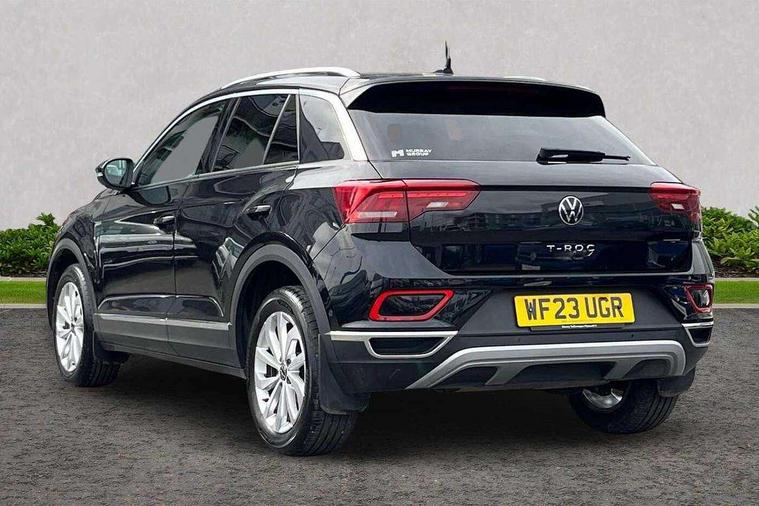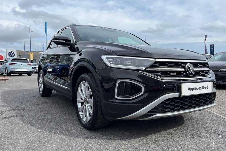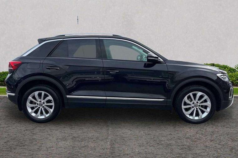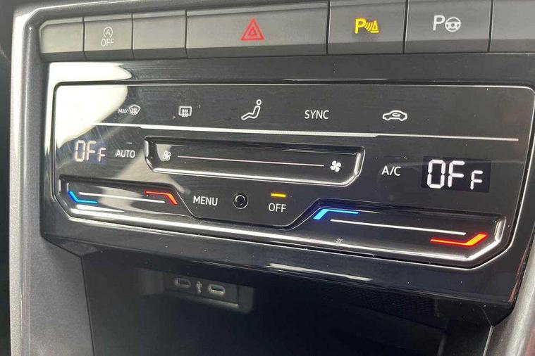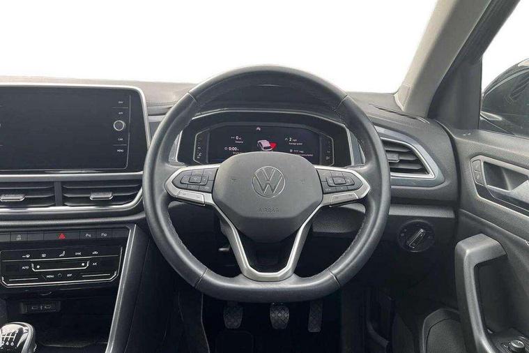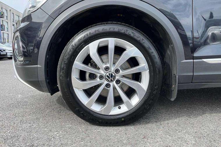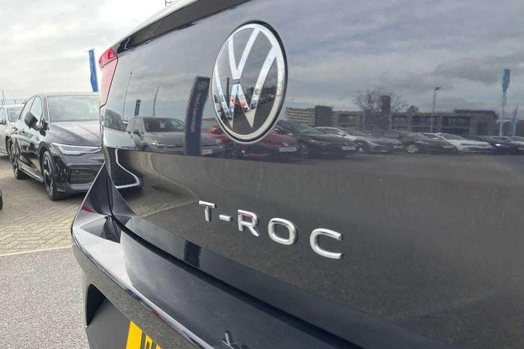 10.25" Digital cockpit pro, Bluetooth mobile phone interface, Driver alert system with fatigue detection, Driver tips and journey analysis, Dynamic road sign display, Emergency call service, Lane keeping system Lane Assist, Modified key software - reduce switch off time for key status change to Long no motion, Online services, Park assist including front and rear parking sensors, Power assisted speed sensitive steering, Service interval indicator, Tailgate/trunk lid release from outside, Think blue trainer driver tips and journey analysis, Warning sound and light for front seatbelts unfastened, Wireless app connect, Battery regeneration during braking, Front shock absorption, Rear shock absorption chassis with increased ride height, Start/stop function with battery regeneration, Diversity antenna for FM reception, Front and rear 6 speakers, Music playback - MP3, WMA and AAC files, Premium USB cable in choice of either Apple or Android smartphone compatibility, SD card slot, Simultaneous pairing of 2 compatible mobile devices, Title and cover art display, We Connect and We Connect Plus functionality, 3rd brake light, Auto dimming interior rear view mirror, Automatic hazard lights activation under emergency braking, Automatic headlight control with LED separate daytime running lights with coming/leaving home function, Body colour sports bumpers with silver metallic underbody fascia, Dynamic headlight range control with self adjusting whilst driving, Extended roof spoiler, Exterior mirrors aspherical on driver side, convex on front passenger side, External USB type C socket and charging sockets, Front windscreen wiper with intermittent wipe and 4 position delay, Heated rear window, LED Plus headlamps, LED rear combination lamps, LED rear number plate lights, LED tail lamp rear comination lamps, Light mode for poor weather, rain, fog or snow, Power windows with comfort operation and circuit breaker, Rain sensor, Rear exhaust tailpipe, Rear fog light on one side and reversing lights on both sides, Rear side wing doors, Rear wash/wipe with intermittent wipe setting, Remote electrically foldable door mirrors, puddle lights and reverse activated passenger's door mirror, 12V power socket in centre console, 3 rear head restraints, 3 seat bench in 2nd row, 4 load lashing points in luggage compartment, Air care climatronic air conditoning system with active combination filter and 2-zone temperature control, Chrome plated radiator grille inserts, air vent surrounds and light switch surrounds, Door and side trim panel with leatherette insert, Drawer under drivers seat, Front + rear carpet mats, Front centre armrest, Front comfort sports seats, Front cupholders x 2, Front footwell illumination, Instrument lighting, white adjustable panel illumination, Interior ambient lighting and surround lighting, Interior light delay, Isofix child seat preparation, Leather gearshift handle, LED interior light with switch off delay/dimmer and 2 front/rear LED reading lights, Load-through provision with cup holder when folded down ('Unsplit rear seat bench, split folding backrest, with centre armrest), Luggage compartment lighting, Non-folding front passenger seat backrest, Single front passenger seat, Storage compartment in left and right luggage area, Storage compartment in rear doors, Storage compartments in driver and front passenger doors, Sunvisors with illuminated vanity mirrors, Variable boot floor, height adjustable and removable, Driver assistance pack without proactive passenger protection - T-Roc, 3 point height adj front seatbelts + pretensioners, 3 point seatbelts in outer rear with ECE label, ABS, Child locks on rear doors, Driver and front passenger airbag with front passenger airbag deactivation, Driver and front passenger safety-optimised head restraints, Drivers seatbelt reminder, Electronic parking brake, Electronic Stability Control (ESC) inc EDL (Electronic Differential Lock) and ASR (Traction Control), Front and rear passengers curtain airbag system including front side airbags, Front assist with city emergency braking and pedestrian monitoring, Front disc brakes, Front seat side impact airbags, Predictive pedestrian protection, Rear disc brakes, Single tone horn, Tyre pressure loss indicator, Volkswagen roadside assistance, Alarm with interior protection, Anti-theft alarm system with interior monitoring, backup horn, and towing protection, Remote central locking with SAFELOCK, radio remote control with 2 remote control folding keys, Trims for alloy wheels,