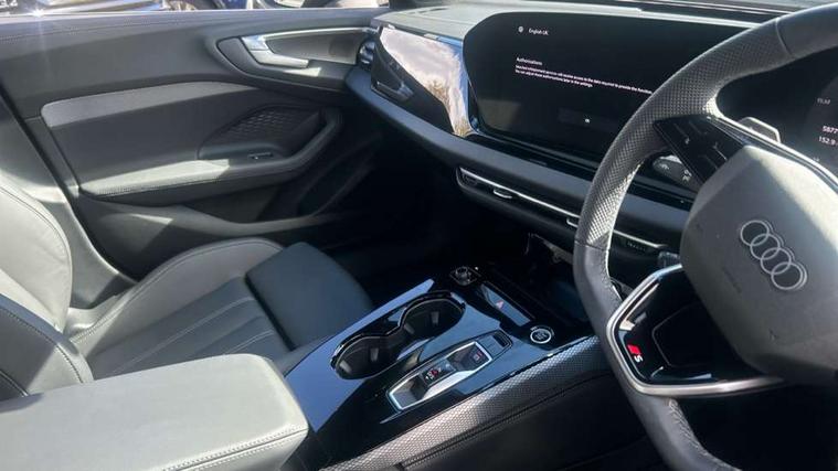 Adaptive cruise control, Advanced driver attention and fatigue montior, Audi application store, Audi assistant, Audi connect emergency call and service, Audi drive select, Audi smartphone interface, Audi virtual cockpit plus with 11.9" OLED colour display, Automatic start/stop system with coasting functionality, Camera based traffic sign recognition, Intersection assist, Lane departure warning, MMI navigation plus with high resolution 14.5" OLED touchscreen colour display, Park assist plus, Parking system plus with 360 display, Progressive steering with servotronic, Rear view camera, Swerve assist and turn assist, Traffic sign based speed limiter, Sports suspension lowered by 20mm, 2 USB-C ports in both the front and rear, Audi sound system impressive sound with 10 loudspeakers including centre speaker and subwoofer, 6-channel amplifier with a total output of 180 watts, DAB digital radio reception, Smartphone compartment with wireless charging, Aluminium window trims, Auto dimming rear view mirror, Body colour door mirrors, Door mirrors - electrically adjustable, heated, folding and auto dimming on both sides, Front and rear electric windows, Front door sill trims with aluminium inlays, illuminated with 'S' logo, High beam assist, LED headlights Plus incl. digital daytime running lights, turning light, all-weather light, motorway light, manouevring light and intersection light, LED rear lights pro incl. dynamic rear indicators and illuminated light strip with animated coming and leaving home function, LED third brake light, Privacy glass, Rear and side windows with heat insulating glass, Rear boot, Rear side wing doors, S Line badges on the front wings, S line bumpers, radiator grille and diffuser in phantom black and diffuser insert in matt anthracite, White rhombus logo projection light in exterior mirrors, Windscreen with acoustic glazing, 3 rear headrests, 3 seat rear bench, 3 spoke leather steering wheel with multi-function buttons with touch control, flattened on top and bottom, with S badging and contrast stitching, 3-zone automatic climate control, 40:20:40 split folding rear seat bench with centre armrest and cup holders, Comfort front centre armrest, Front and rear floor mats, Front seats with manual adjustment for position and 4-way electric lumbar support, Front sport seats with integrated headrest and S embossed logo, Headlining in black cloth, Heated front seats, i-Size child seat mounting on the front passenger side and outer rear seats, i-Size and top tether on the outer rear seats, Luggage compartment lid, electrically opening and closing, Manual steering column height and depth adjustment, Single front passenger seat, Stainless steel pedals and footrest, Steering wheel grips in perforated leather and shift paddles, Ambient lighting package plus - A5, 3x3 point rear seat belts, Driver airbag, Electric child safety locks, First aid kit with warning triangle and vests, Front emergency brake assist, Front passenger airbag, Front passenger airbag deactivation, Front side airbags with head airbag system and front interaction airbag, Hill hold assist, Seat belt monitoring with rear seat occupant reminder, Tyre pressure loss indicator, Anti theft alarm, Anti-theft wheel bolts, Keyless Go, Accent surfaces and control buttons in gloss black, Black dashboard with contrast stitching, Inlays in matt brushed aluminium with linear embossing, anthracite, Softwrap in leatherette with contrast stitching, Upper and lower interior elements in leatherette, Tyre repair kit,