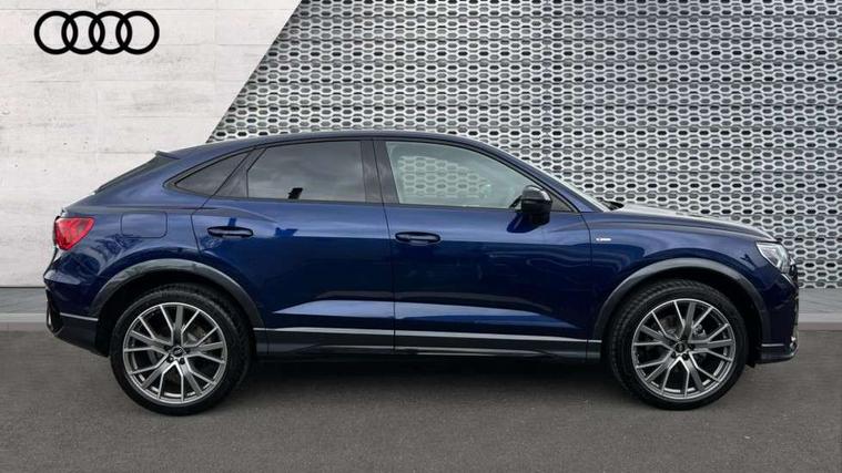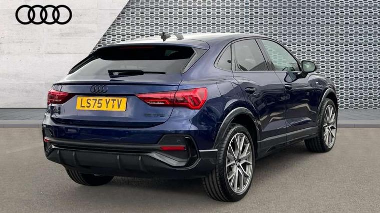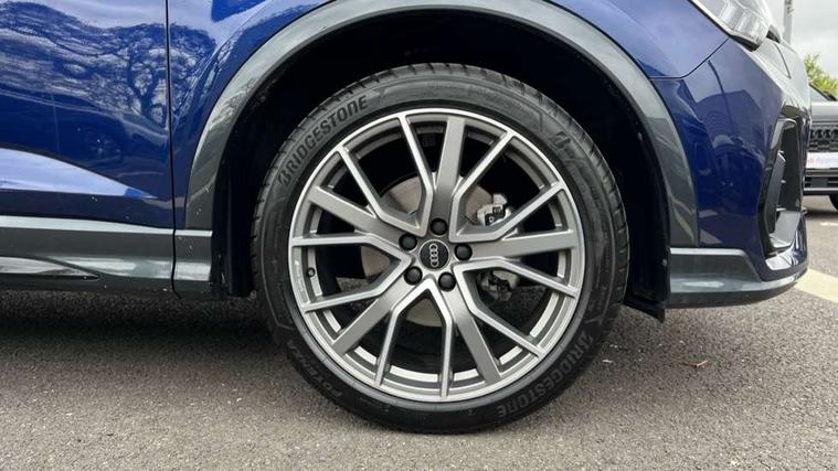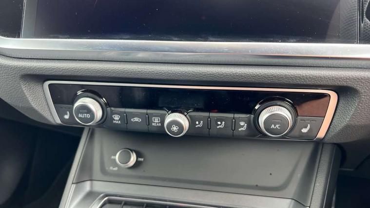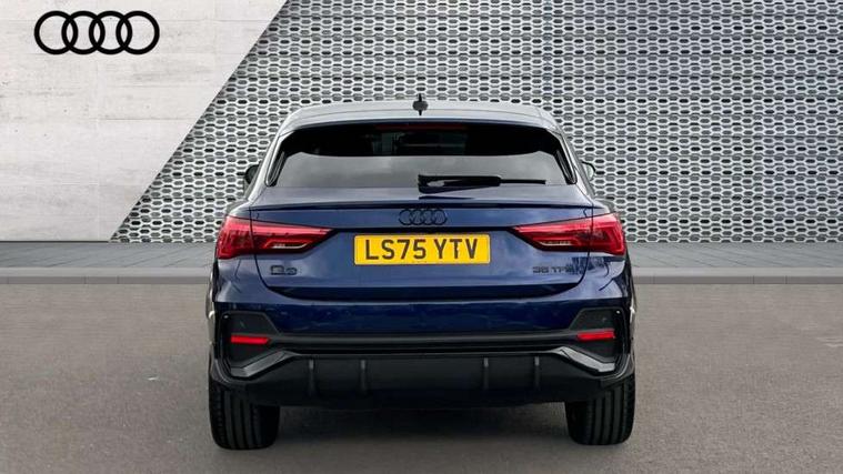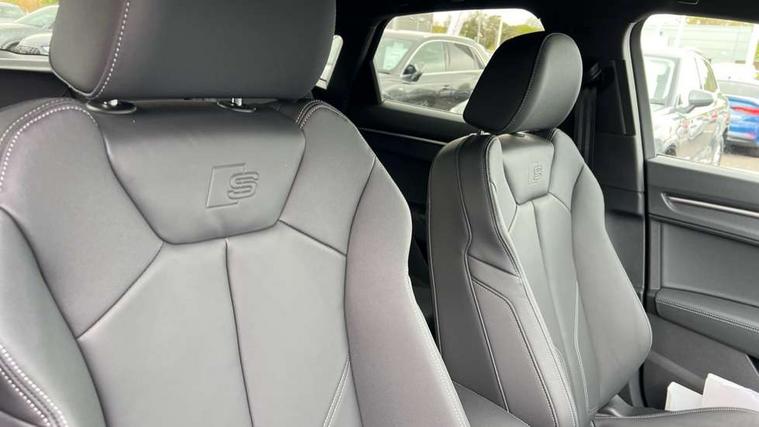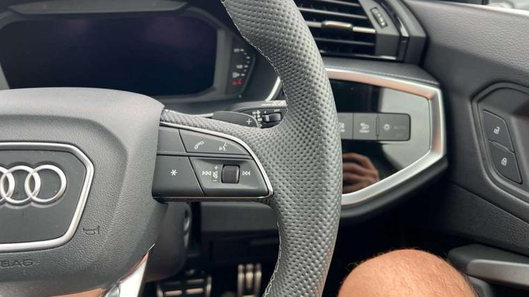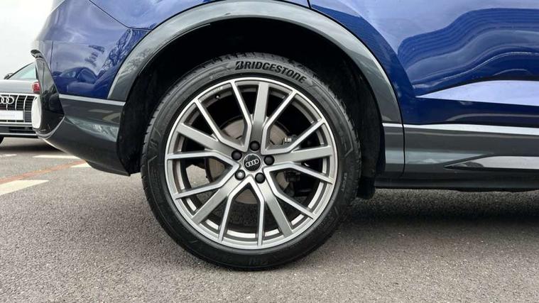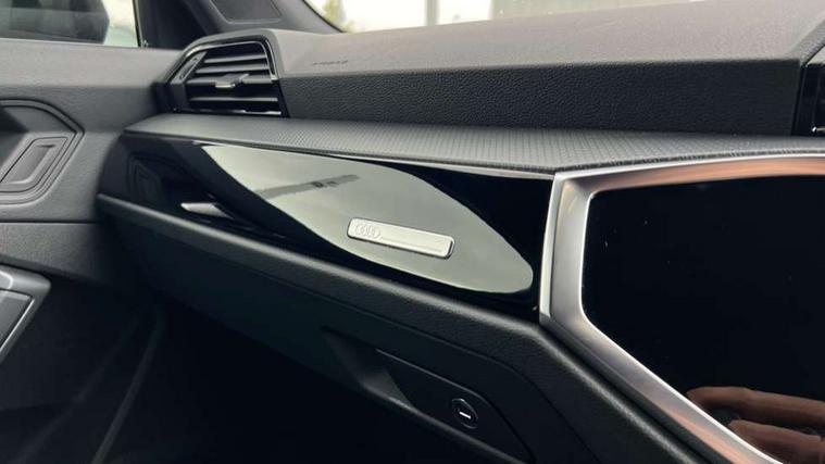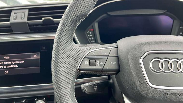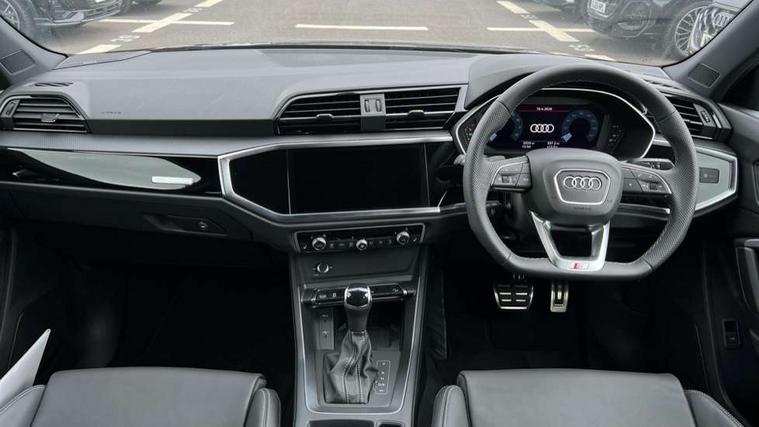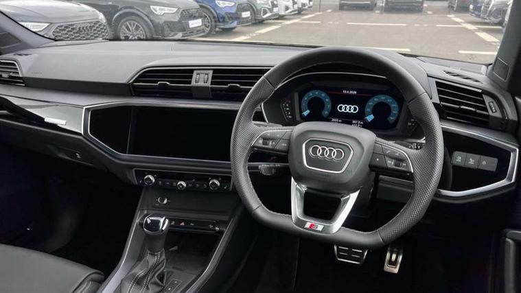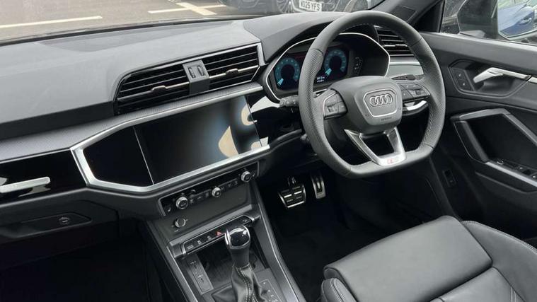 Audi connect safety and service, Audi drive select, Audi lane departure warning, Audi Virtual Cockpit - 10.25" display, Bluetooth interface, Camera based traffic sign recognition, Distraction and Fatigue warning, Legal emergency call, MMI Navigation Plus with high resolution 10.1 inch touchscreen colour display, Power operated tailgate, Progressive steering, Service interval indicator, Smartphone interface includes wireless Apple carplay/Android Auto, Start stop system with recuperation, Voice control system with natural language interaction, Sports suspension, 2 USB-C ports with charge and data functions, 6 passive loudspeakers, DAB digital radio module, Acoustic windscreen, Audi Beam uses LEDs to project the Audi logo onto the ground as you exit your Q3, Auto dimming door mirrors, Auto dimming frameless rear view mirror, Electrically folding, adjustable and heated door mirrors with integrated LED side indicators and kerb view function for passenger side, Front and rear electric windows, Front fog lights, Front underbody protection in manhattan grey paint finish, High gloss black finish B and C pillars, Honeycomb design radiator grille in matt anthracite black, LED Dynamic rear indicators, LED headlights with LED daytime running lights, LED rear lights, LED third brake light, Privacy glass dark tinted rear and rear-side windows (from B-pillar backwards), Rain and light sensors, Rear diffuser grille in grained matt black, Rear diffuser strip in matt anthracite black, Rear side wing doors, Rear underbody protection in matt black, Rear wiper, S line front and rear bumpers and side skirts in contrasting Manhattan grey paint finish, Variable front intermittent wipers, 12V socket in rear centre console, 3 seat bench in 2nd row, 40:20:40 folding with manual adjustment for 60:40 forwards/backwards position and backrest angle, Adjustable rear seat bench/backrest with centre armrest and cupholder, Black carpet mats, Black cloth headlining, Dual zone electronic climate control, Electric lumbar support, Front and rear black floor mats with contrast stitching in rock grey, Front and rear headrests, Front centre armrest, Height and reach adjustable steering wheel, Illuminated door sill trims with S logo, ISOFIX child seat mounting for front passenger with airbag deactivation and outer rear seat including top tether attachment point for outer rear seats, Luggage compartment sill protection in stainless steel, Manual front seats with height adjustment, Perforated leather gearknob, Single front passenger seat, Stainless steel pedals, Twin leather upholstery with front sport seats + S embossing, Black styling pack - Q3, Non smoking pack - Q3, 3x3 point rear seatbelts, 6 airbags - Driver, front passenger, curtain and side windows, Audi pre-sense front with pedestrain and cyclist recognition, Electrically operated child locks on rear doors, Electromechanical parking brake, Electronic stabilisation control including ABS, ASR and EDL, Front seatbelt reminder, Hill descent control, Hill hold assist, Pre sense basic, Seatbelt monitoring, Tyre pressure warning, Warning triangle and first aid kit, Anti theft wheel bolts, Immobiliser, Remote central locking, Thatcham approved category 1 anti theft alarm, Aluminium look interior elements, Detail dashboard around MMI touch colour display in glass look, black with surround in aluminium look, Leatherette door armrest, Piano black inlay,