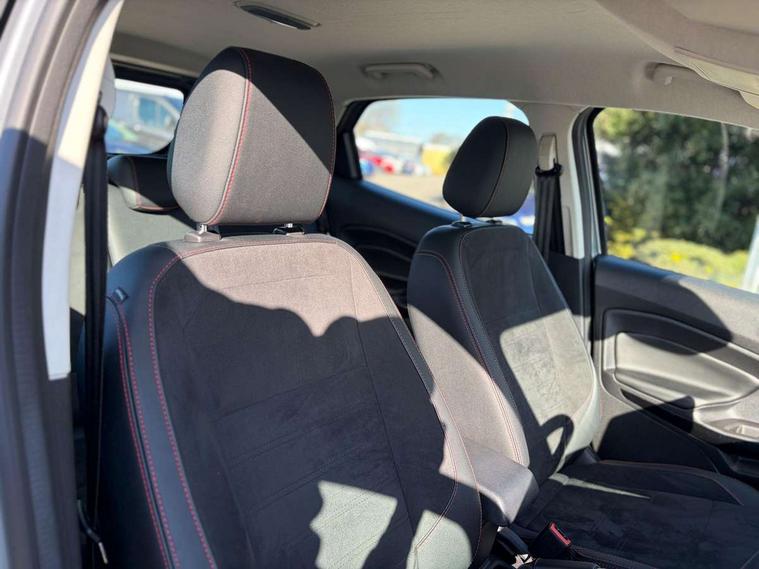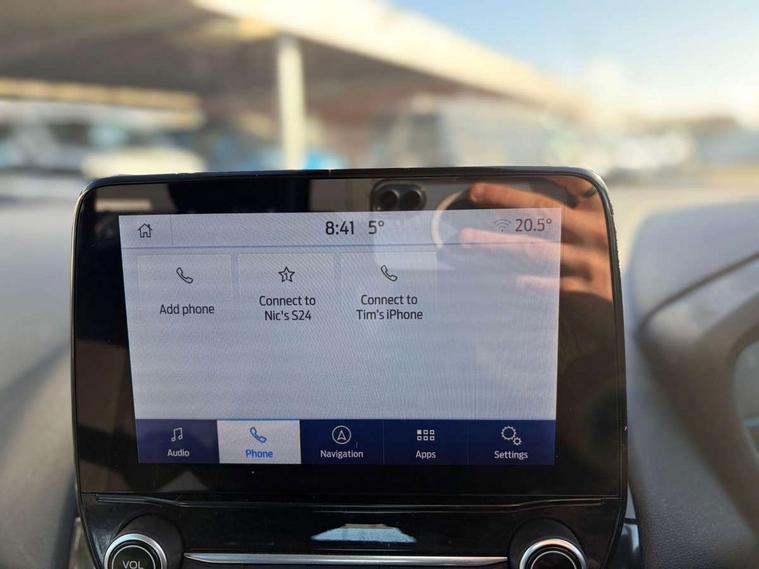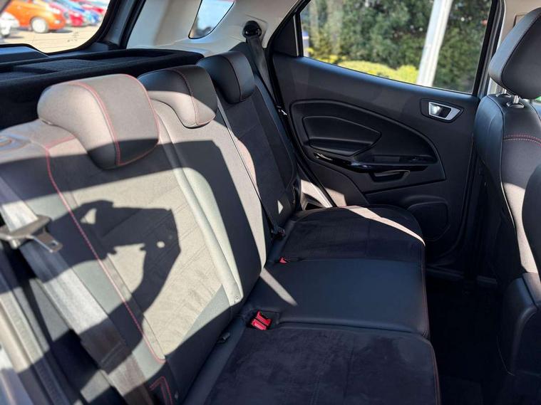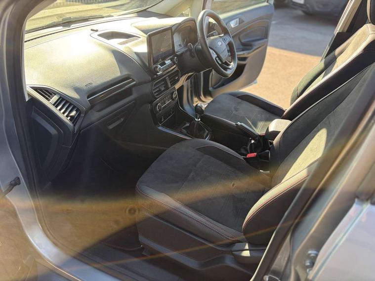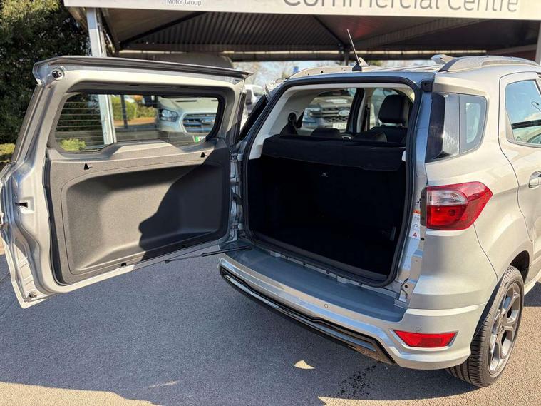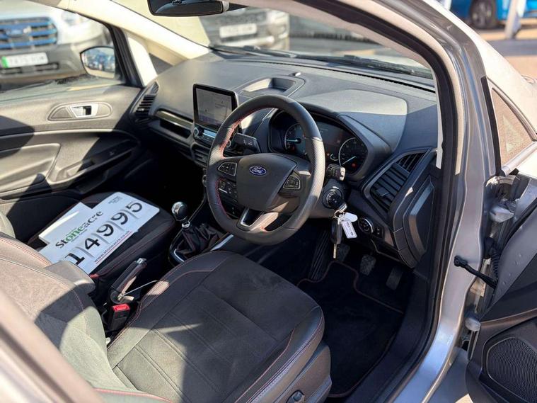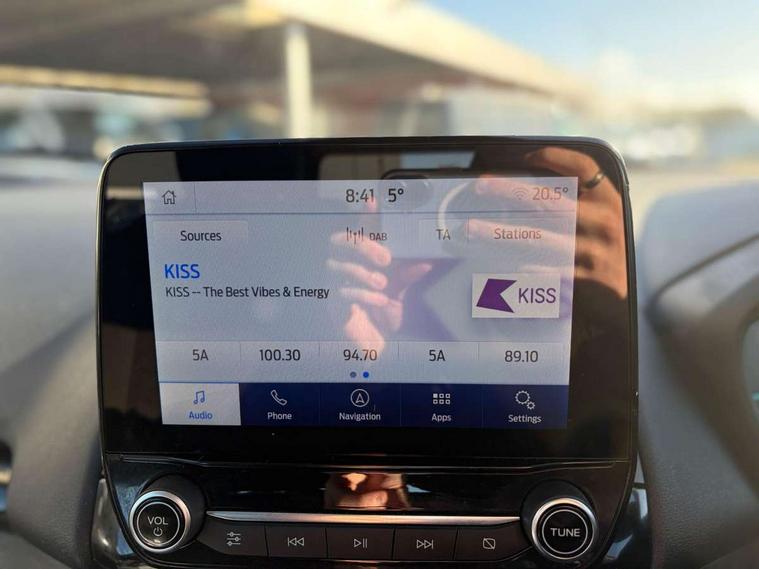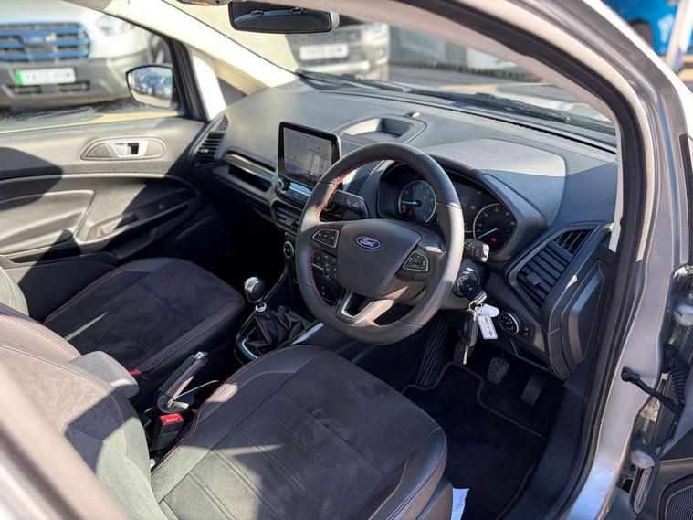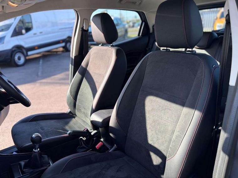 Cruise control, e-Call (emergency call), Easy fuel capless refuelling system, Ford SYNC 3 nav system with DAB radio, 8" screen, emergency assistance, Apple car play/Android auto, 2x USB, 6 speakers, Ford pass connect, Intelligent speed limiter, PAS, Rear parking sensors, Rear view camera, Traffic sign recognition, Trip computer, Sports suspension, Steering wheel mounted audio controls, Auto dimming rear view mirror, Automatic front wipers, Automatic headlights, Black roof rails, Body colour door handles, Body coloured bumpers, Chrome lower window surround, Electrically adjustable and heated door mirrors, Front fog lights, Front grille bars and surround in black, Headlight levelling control, Large rear roof spoiler, LED day running lights, LED third brake light, Power front and rear windows, Puddle lights, Quick-clear heated windscreen, Rear side wing doors, Rear wiper, ST Line body styling kit - Black headlamp bezel, front and rear sport bumpers, body colour lower door claddings, 12V socket in front and rear, 3 seat bench in 2nd row, 60/40 split rear seats, Ambient lighting, Centre console with sliding front armrest, Cooled glovebox, Courtesy lights with map reading light, Driver seat height/lumbar adjust, Driver's side glovebox, Driver/passenger sunvisors and lidded vanity mirrors, EATC - Electronic Auto Temperature control, Folding grab handles, Front head restraints, Front seat back map pockets, Illuminated glovebox, Illuminated luggage compartment, Isofix system on outer rear seats, Luggage compartment carpet, Neosuede/Partial sensico leather upholstery, Overhead console with sunglasses holder, Rake adjustable rear seats, Reach + rake adjustable steering column, Rear headrests, Sensico trimmed steering wheel, handbrake and gearshift gaiter with red stitching, Single front passenger seat, ST-Line Front floor mats with red stitching, Stainless steel sports pedals, Storage drawers under front seats, Tie down hooks, Variable boot floor, 3x3 point rear seatbelts, ABS, Autonomous emergency braking, Child locks on rear doors, Curtain airbags, Driver airbag, Drivers knee airbag, Electronic Stability Programme with hill launch assist, Front passenger airbag deactivation, Front side airbags, Passenger airbag, Pre collision assist system with AEB, Seatbelt reminder for driver and front passenger, Traction control, Tyre pressure monitoring system, Immobiliser, MyKey system, Remote central locking, Thatcham 1 volume sensing alarm, Low rolling resistance tyres, Tyre inflation kit,