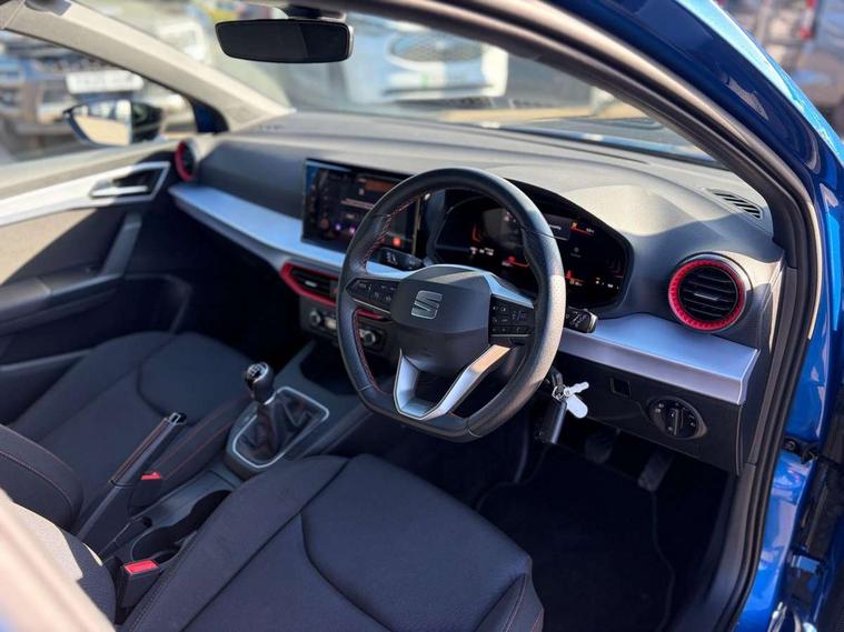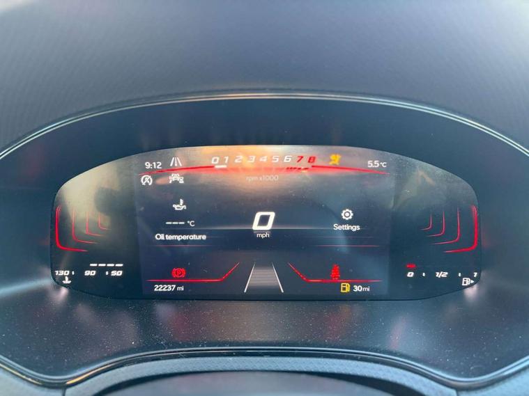 'Lights On' Reminder warning buzzer, 8" Digital cockpit, 9.2" touchscreen navigation system with type C USB socket, Voice control and DAB/AM/FM radio, Auto start and stop system, Bluetooth audio streaming with handsfree system, Digital clock, E-call, Full link smartphone integration with mirror link, wireless apple carplay, Google android auto + USB Type C cable for apple and android devices, Lane assist, Low fuel warning light, Outside temperature gauge, Power Steering, Seat connect with safety, service, remote and online, SEAT drive profiles and ECO function, SEAT logo boot release, Speed limiter, Trip computer, Sports suspension, Auxiliary input socket, Radio/MP3 player, SD card slot, Steering wheel mounted controls, Anti theft roof antenna, Auto dimming rear view mirror, Automatic rain sensing wipers, Black door mirrors, Body colour bumpers, Body colour door handles, Brilliant black window surrounds, Dark tinted rear windows, Electric adjustable/heated/folding door mirrors, Electric front windows, Electric headlight adjustment, Electric rear windows, Front/rear fog lights, FULL LED automatic headlights with dynamic headlight range control, coming and leaving home, LED daytime running lights, LED tail lights, Rear roof spoiler with FR twin exhausts, Rear side wing doors, Rear wiper, Third brake light, 3 seat bench in 2nd row, 60/40 split folding rear seat, Ambient interior lighting, Chrome detailing and black headlining, Cloth upholstery, Dual zone climate control with combination filter, Front courtesy lights, Front cupholders x 2, Front reading lights, Gear shift indicator, Glovebox, Height adjustable front and rear headrests (five), Height adjustable front seats, Height/reach adjust steering wheel, Illuminated air vent surrounds, Illuminated boot, Instrument lighting with brightness control, Isofix, Leather multifunction flat bottomed sports steering wheel, Passenger sunvisor, Single front passenger seat, Sports seats, Sunvisors with mirror and driver side card holder, 3 point seatbelts on all 3 rear seats, ABS, Active front headrests, Child locks on rear doors, Electronic stability control, Energy recovery system, Front assist forward collision warning and autonomous emergency braking, Front driver and passenger side airbags with curtain airbag and front passenger airbag deactivation, Hill hold control, Multi-Collision braking, Seat belt reminder for front and rear seats, Tiredness recognition system, Tyre pressure monitoring system, Electronic engine immobiliser, Locking wheel bolts, Perimeter alarm and interior monitoring with backup horn and tow away protection, Remote central locking + deadlocks, 17" Alloy wheels in Brilliant silver,