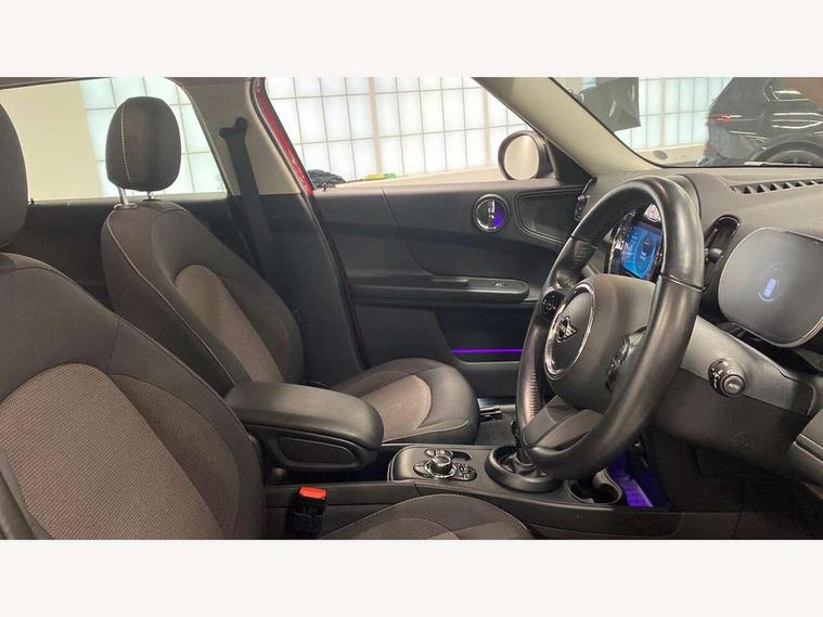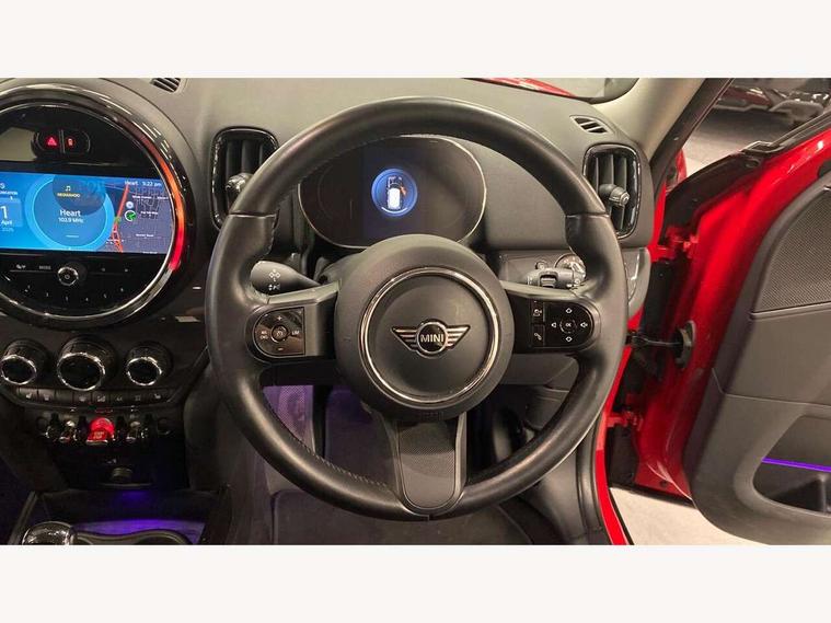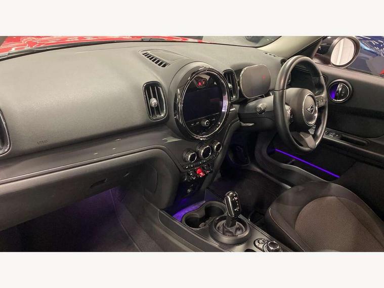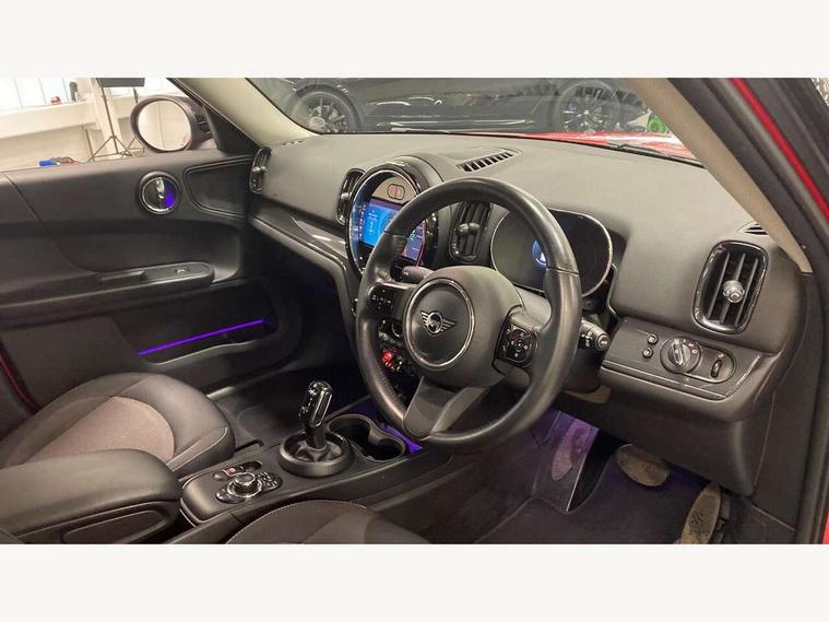 Active Guard incl speed limiting and lane departure functions with auto steering, and front collision warning with brake intervention, Automatic start/stop function with brake energy recuperation, Compatible mobile phone bluetooth with audio streaming, Cruise control with brake assist, Electro-mechanical speed dependant steering assistance, Instrument cluster, On board computer, Rear parking distance control, 51 Litre fuel tank, Double Vanos system, Fully variable valve control, High precision injection, Performance Control, Steptronic transmission with double clutch, FM tuner and DAB digital radio, Body colour fuel filler cap, Day time driving lights, Door sill strips, Dynamic brake lights, Electric windows, Heated rear window, Heated windscreen washer jets, LED fog lights, LED Headlights, Left exhaust tailpipe with chrome finisher, Model logo, Model logo on Tailgate, Radiator grille, Rain sensor with auto headlights, Rear fog lights, Rear window wiper, Side scuttle panel with integrated indicator, Split rear doors, Sun/heat protection glass, White indicator lenses, 12V socket in centre console, 3 spoke sport leather steering wheel + limiter function and audio controls, 360L luggage compartment capacity, 4 lashing eyes in luggage compartment, 40:20:40 split folding rear seats, Chrome interior highlights, Colour line - Carbon black, Cupholders, English handbook, Floor mats, Front headrests, Glove compartment, Headliner with grab handles and clothes hooks, Height and length steering column adjustment, Interior lighting with 12 basic colours selectable via toggle switch in roof, Isofix rear child seat preparation, Leather gearshift lever and handbrake gaiters, LED reading lights, vanity mirror lights, front foot well light and spotlight on front seats, Manual air conditioning, Mechanical seat adjustment, driver seat height adjust, forward/back and front seats backrest, Multifunction steering wheel, Passenger seat height adjuster, Rear headrests, Storage compartments in doors, Sunvisors with vanity mirrors, Tool kit, Excitement pack - Countryman, Navigation pack - Countryman, 2 tone horn, 3 point seatbelts on all seats, 6 Airbags - front, side, head and seat belt tensioners, Anti-lock braking system (ABS), DSC - Dynamic Stability Control, Electronic handbrake, Front and rear disc brakes, Hill start assist, Tyre pressure monitoring system, Alarm system with tilt sensor, monitoring doors, bonnet interior and tailgate, Auto drive away locking, Deadlocking function, Electronic vehicle immobiliser, Locking wheel bolts, Start/stop toggle with keyless go,