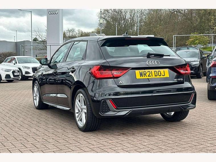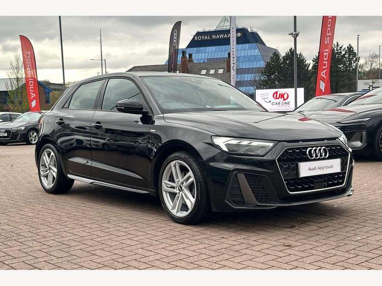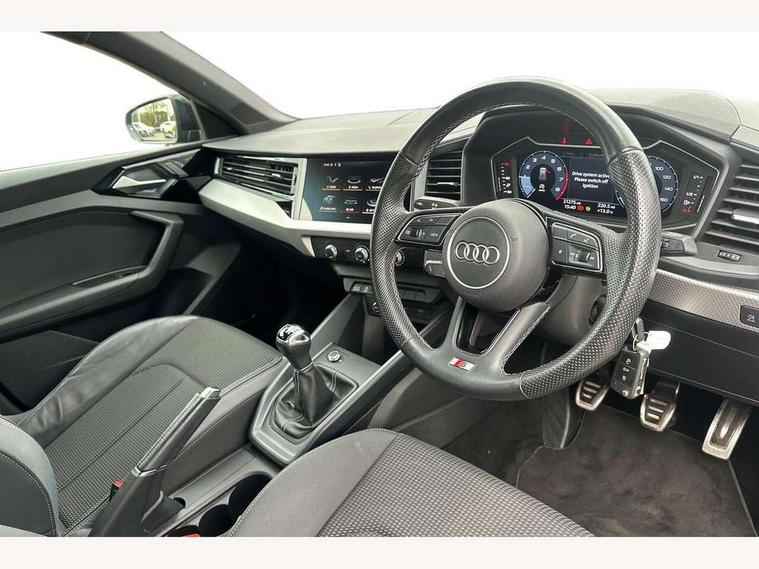 10.25" Digital instrument cluster display classis style instrument dials + speed, odometer, time, outside temperature, telephone menu + fuel level warning, Audi connect safety emergency and service including E-call, Audi drive select - power steering assistance + engine, Audi smartphone interface with connect compatible smartphone via USB directly MMI display + Nav, music, third party apps controlled via MMI controller, Automatic start/stop system, Bluetooth interface, Cruise control, Driver's information system, Electromechanical power steering, Lane departure warning system, Service interval indicator, Speed limiter, Voice control system, Washer fluid level indicator, Sports suspension, 1 x SDXC card reader, 2 x USB type C connection points, DAB Digital radio, MMI radio plus with 8.8" colour MMI display screen and MMI touch, Auto dimming rear view mirror, Body coloured door mirrors, Door sills with aluminium inlays and S Line logo, Electric front and rear windows, Electrically adjustable, heated, folding door mirrors with integrated LED side indicator, Front side air inlets in grained matt black and C frame in titanium black, Heat insulating glass windscreen and side windows, Heated rear windscreen, LED headlights with LED rear lights + dynamic rear indicators + headlight adjustment and high beam, turning light + LED daytime running lights, Radiator grille and rear diffuser in matt titanium black, Radiator protective grille frame in matt aluminium silver, Rain and light sensors, Rear fog lights, Rear wiper, S line badges on front wings, Side front spoiler lips in grained matt black, 12V socket in centre console with two cup holders, 3 rear seats with headrests, 40:60 Split folding rear seat or folded fully, Black cloth headlining, Driver and passenger seat with manual height adjust with forward and backwards adjustment, Front and rear black floor mats with contrast stitching in fine silver, Front head restraints, Height and reach adjustable steering wheel, ISOFIX child seat mounting for front passenger and outer rear seats including top tether attachment point of outer rear seats, Leather gear knob with aluminium trim, Luggage compartment light with front and rear reading lights, Manually adjustable lumbar support in front seats, Stainless steel pedals, LED interior lighting pack - A1, Luggage compartment pack - A1, S line exterior styling pack - A1 Sportback, 3x3 point rear seatbelts, Audi pre-sense front with pedestrain and cyclist recognition, Brake assist function, Driver and front passenger airbag with front side and head airbags, Electronic Stability Control including ABS, EBD, ASR and EDL, Front and rear seatbelt reminder, Front passenger airbag deactivation switch, Hill hold assist, Seatbelt height adjustment for front seats, Seatbelt monitoring, Tyre pressure warning light, Warning triangle and first aid kit, Anti theft alarm, Anti theft wheel bolts and loose wheel warning, Immobiliser, Remote central locking with 2 foldaway keys, Aluminium trim for control switches, air vents and digital instrument cluster, Silver grey inlays polygon structure in diamond paint finish, Structured grey accent areas including air vents, door handle recesses and centre console in quartz paint finish,