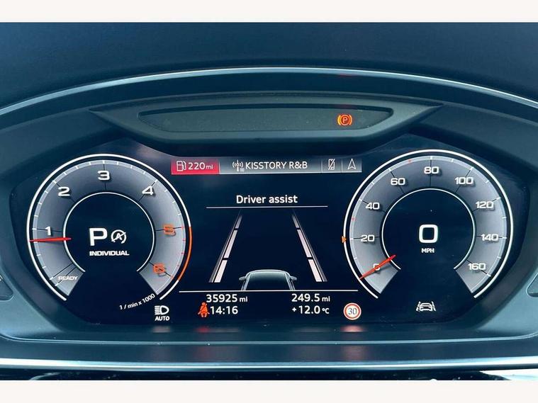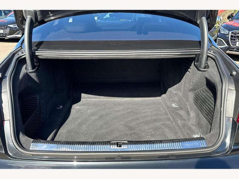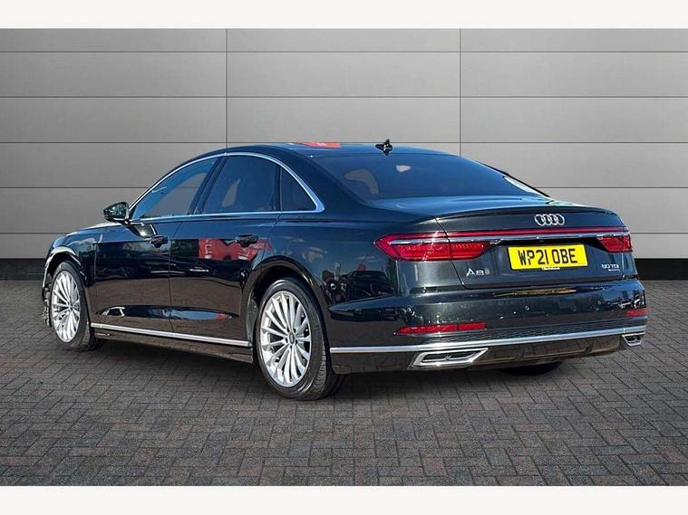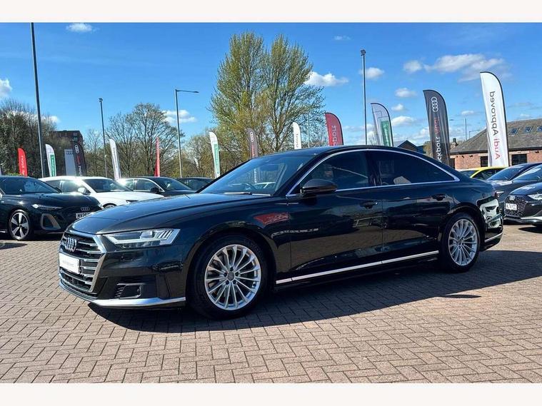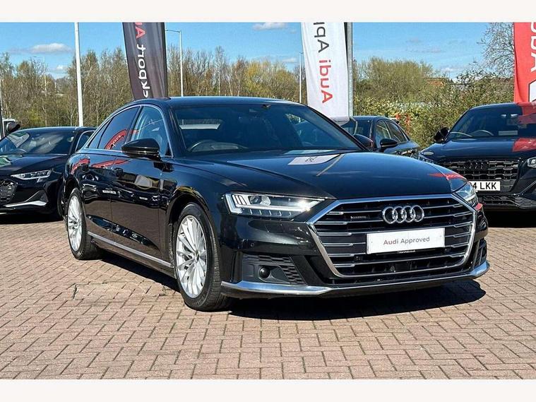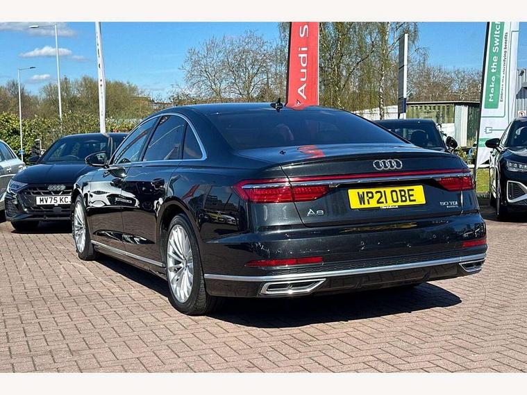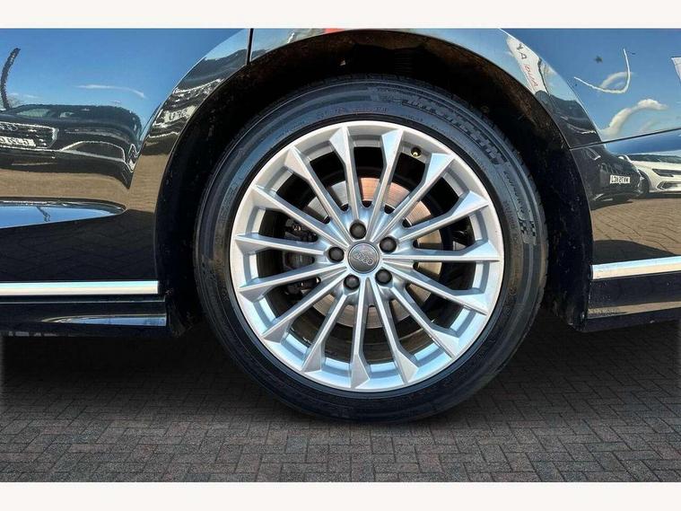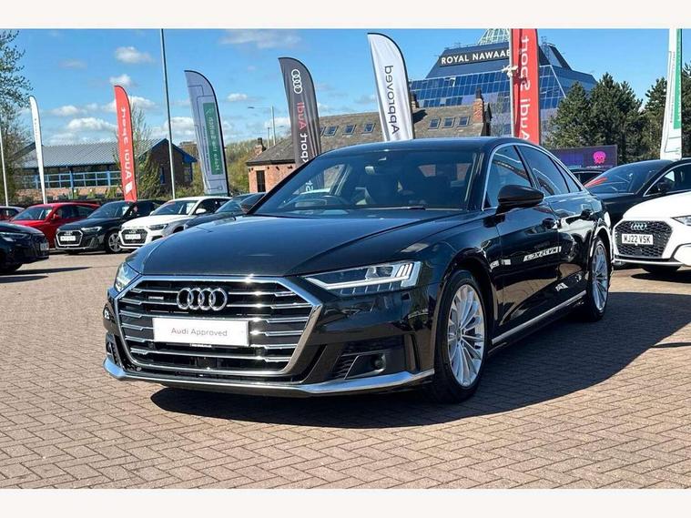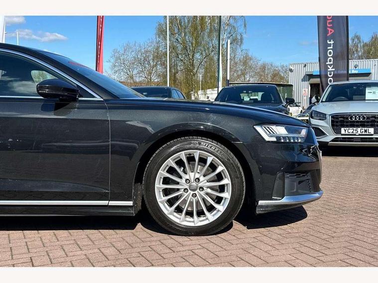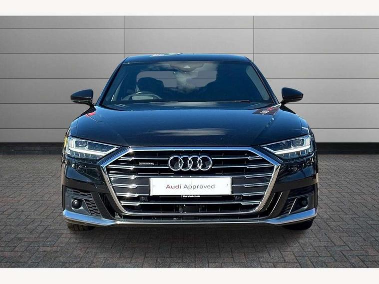 'Lights On' Reminder warning buzzer, Adaptive cruise control with speed limiter, Audi connect safety and service (e-call), Audi drive select, Audi parking system plus with front and rear sensors, Audi phone box with wireless charging, Audi virtual cockpit, Audi wireless smartphone interface, Camera based traffic sign recognition, Colour driver's information system display, Electro - mechanical power assisted steering, Head up Display, Lane departure warning including emergency assist, MMI navigation plus with MMI touch + Twin touch screens with haptic feedback, Operating buttons in black, glass look with haptic feedback including extended aluminium look, Power door closure, Power operated tailgate, Rear view camera, Remote fuel filler release, Service interval indicator, 24 litre AdBlue tank, 48V Mild hybrid technology, 8 speed transmission with hill hold assist, Adaptive air suspension, Diesel particulate filter, Quattro all wheel drive with self locking centre differential, Audi music interface, Audi sound system, DAB digital radio module, DVD System, Premium MMI radio plus, USB connection, Acoustic double glazing, Audi space frame, Auto dimming rear view mirror, Automatic headlight control system, Body colour bumpers, Body colour door handles, Body colour exterior mirror housings, Body colour side protection with aluminium trim strips, Electric front windows, Electric rear windows with isolation switch, Electrically adjustable heated folding + automatically dimming exterior mirrors with memory function and integrated LED indicators, HD matrix healights with LED rear lights + dynamic rear indicators, Heat insulating glass in side and rear windows, Heated rear window, Heated windscreen washer jets, High beam assist, LED brake lights, LED daytime running lights, Privacy glass, Reverse activated kerb-view adjustment on passenger's door mirror, Side skirts, Sport exterior styling, Sports bumpers, 2 zone automatic air conditioning, 3 seat rear bench with centre armrest in 2nd row, 4 way electric lumbar support for driver and front passenger, Centre console with cupholders, Climate controlled seats, Comfort centre armrest, Door armrest with storage, Door pockets with bottle holder, Driver and front passenger side sunvisors with illuminated vanity mirrors, Dust/pollen filters, Electric adj front seatbelt height + memory, Electric auxiliary air heater, Electric front seats with memory function, Front/rear floor mats, Glove compartment cooling, Heated front seats, Height/reach electric steering column with easy exit function, Isofix child seat mounting points on outer rear seats, Leather gearknob, Passenger footwell storage net, Reading lights, Rear headrests, Roof mounted sunglasses holder, Valcona leather upholstery with front sports seats in diamond quilted with S embossed logo, Connect package plus - A8, High gloss styling pack - A8, LED ambient interior lighting pack - A8, 3 point seatbelts on all rear seats, ABS/EBD, Active front headrest system, ASR traction control, Audi pre sense basic, Audi pre sense front, Driver/Front Passenger airbags, EDL traction control, Electromechanical parking brake, ESP, Extended pedestrian protection measures, Front and rear side airbags with head airbag system, Front brake discs, callipers painted black, Front passenger airbag deactivation, Rear brake discs, callipers painted black, Rear child proof door locks, Seatbelt reminder + electric contact in buckle + advanced safety equipment, Tyre pressure warning light, Warning triangle and first aid kit, Advanced key, Anti theft alarm tow away protection, Anti-theft wheel bolts and wheel loosening detection, Locking wheel bolts, Remote central locking, Dark matt brushed aluminium lower inlays,