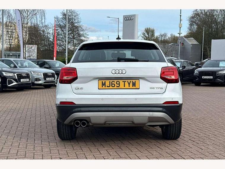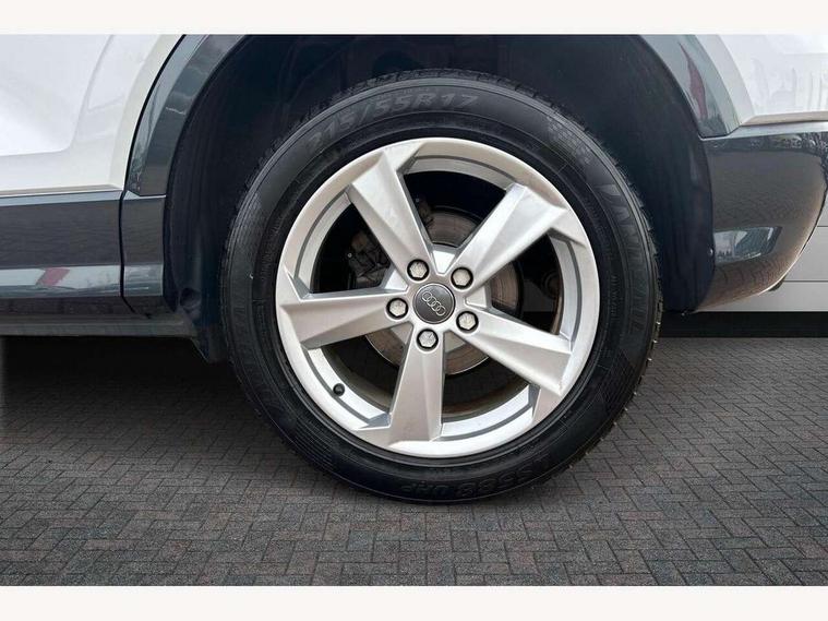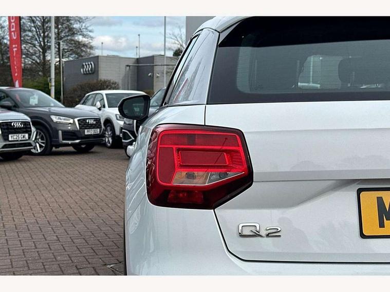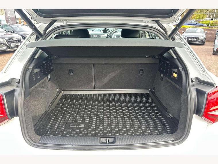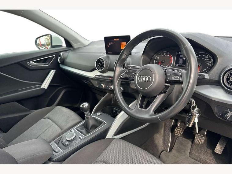Audi drive select, Audi smartphone interface, Automatic start/stop system with recuperation, Bluetooth interface includes bluetooth audio streaming, Cruise control, MMI - Multi Media Interface control system, MMI SD card integrated nav with 3D map display, dynamic route guidance with TMC, MMI search, natural voice recognition and myAudi special destinations, Power operated tailgate, Progressive steering, Service interval indicator, Dynamic suspension, 2 x SDXC card reader, Audi music interface - apple iPod, apple iPhone, USB storage media, compatible MP3 players, 2 x USB charging points and 1 x Aux-in, CD Drive, DAB digital radio and AM/FM radio, MMI radio plus with 7" colour MMI screen and MMI controller, Air inlet in manhattan grey metallic, Black window trims, Body colour door mirrors, Chrome exhaust tailpipe, Electrically adjustable and heated door mirrors with integrated LED side indicators, Front and rear electric windows, Front underbody guard and rear diffuser trim in selenite silver, Front windscreen with grey tinted sunband, Halogen headlights including headlight range adjustment, High gloss black radiator grille, Interior mirror, LED indicator lights, Manual folding door mirrors, Rain and light sensors, Rear wiper, Side skirts in manhattan grey, Wheel arch trims in manhattan grey, 60/40 split folding rear seat bench, Door sill trims with aluminium inlay, Electronically operated child locks, Front centre armrest, Front headrests, Front sports seats, Front/rear floor mats, Height/reach adjust steering wheel, ISOFIX child seat mounting for front passenger with airbag deactivation and outer rear seat including top tether attachment point for outer rear seats, Manual seat adjustment including seat height adjustment for front seats, Storage compartments - Glovebox, cupholder compartment in centre console, storage compartment in rear centre console, front and rear door pockets, Three rear headrests, Titanium grey cloth headlining, Non smoking pack - Q2, 3x3 point rear seatbelts, 6 airbags - Front, curtain and front side airbags, Electromechanical parking brake, Electronic stabilisation control including ABS, ASR and EDL, Extended and proactive pedestrian protection, Hill hold assist, Multi collision brake assist, Pre-sense front with pedestrian recognition, Seatbelt monitoring, Tyre pressure warning light, Warning triangle and first aid kit, Anti theft alarm, Anti theft wheel bolts, Central locking system with remote control key, Aluminium interior element,