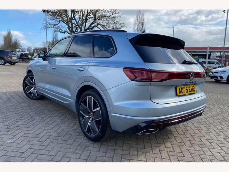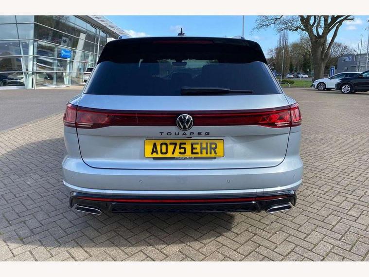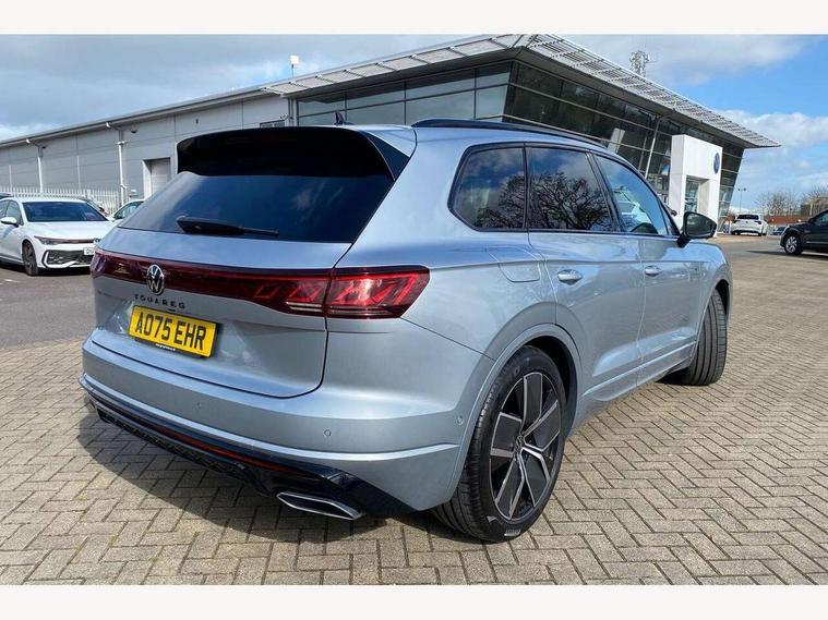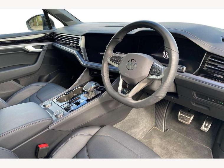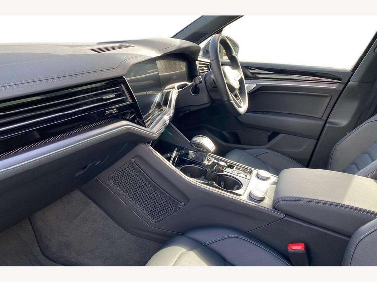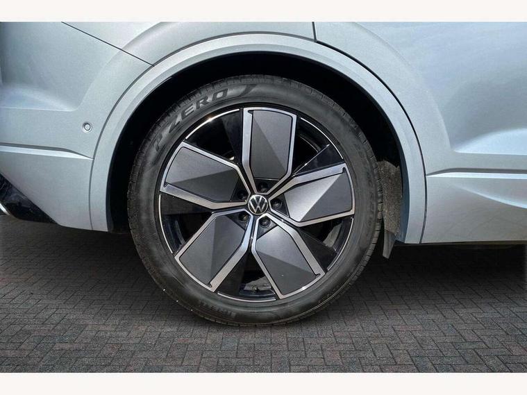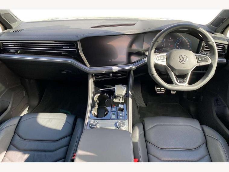 15" Screen Top infotainment system Premium (MIB3), Adaptive cruise control, Advanced driver attention and drowsiness monitor, Driver profile selection, Dynamic road sign display, E-Sim card for online connectivity, eCall emergency system, Innovision cockpit, Intelligent park assist, Mobile phone interface with inductive charging, Multi-colour Active Info display, Park Assist - Sensor controlled steering aid to assist parallel or bay parking, PAS, Warning signal and warning light for front and rear seatbelts not fastened, Wireless app connect, Adaptive chassis control, DAB Digital radio, Diversity antenna for AM/ FM reception, We Connect and We Connect Plus functionality, Automatic coming/leaving home lighting function, Automatic headlights, Black door mirrors, Black style comfort bumpers, Dynamic headlight range control with dynamic cornering light, Electric front tilt/slide panoramic sunroof and fixed rear sunroof, Electrically power adjustable, heated, folding, auto dimming, front passenger exterior door mirror lowering function, External USB type C socket and charging sockets, Gloss black roof rails, HD LED Matrix beam plus digital headlight projection with variable light distribution, Headlight washers, Highway light, LED 3rd brake light, LED daytime running lights, LED rear combination lamp with variable lighting functions and special styling, Poor weather light, Rain sensor, Rear exhaust tailpipe, Rear fog light with back up light on both sides, Rear light bar and illuminated logo, Rear side wing doors, Rear wiper, Stainless steel door sill protection, 12V socket in centre console, 3 rear headrests, 3 seat bench in 2nd row, 4 zone climate control, Airbag label on sun visor and B-pillar, Brushed stainless steel pedals, Double sun visors with illuminated vanity mirrors, Front + rear carpet mats, Front centre armrest, Leather wrapped multifunction sports steering wheel, heated, with touch control and shift paddles, Mechanical rear seat release, Power adjustable lumbar support in front, Power seats in front, right side with memory features and seat cushion depth adjustment, Rear seat backrest and split folding with center armrest, Single front passenger seat, Memory pack plus - Touareg, 3 point seatbelts, outer rear with ECE lable, ABS, Child locks on rear doors, Curtain airbags, Driver and front passenger safety-optimised head restraints, Driver/Front Passenger airbags, Extended pedestrian protection measures, Front assist, Front seat side impact airbags, Generative braking with start and stop system, Height adjustable 3 point front seatbelts with pre tensioners, Passenger airbag deactivate switch, Three 3 point rear seatbelts, Two tone horn, Warning triangle and first aid kit, Alarm system with interior protection, Easy open and close sensor controlled luggage compartment opening and closing with remote unlocking, Keyless Access Keyless locking and starting system with SAFELOCK, Aluminium decorative inserts, Black decorative trims, Gloss black decorative inserts in centre console, Tool kit,