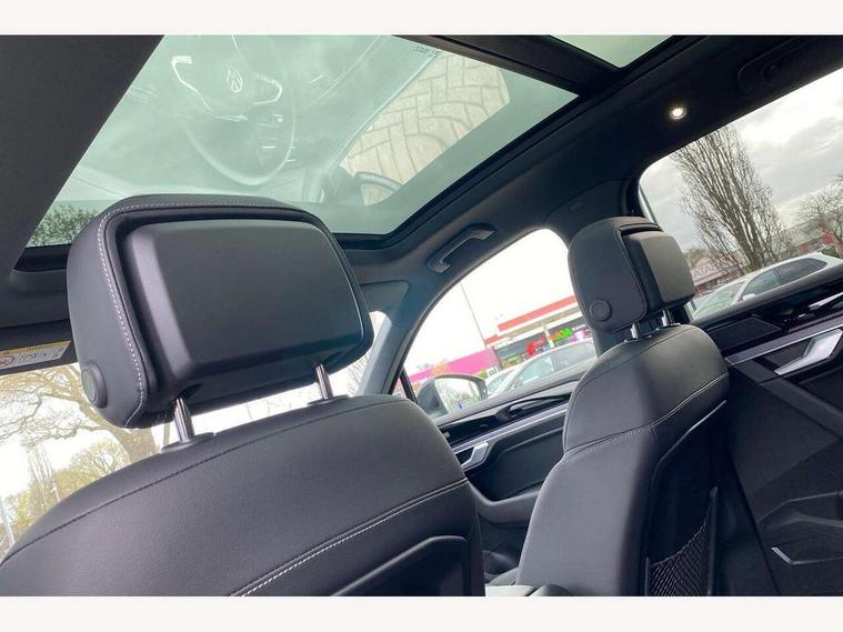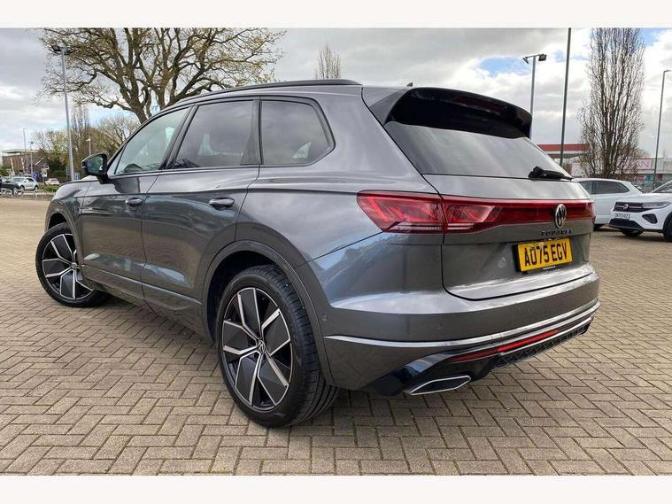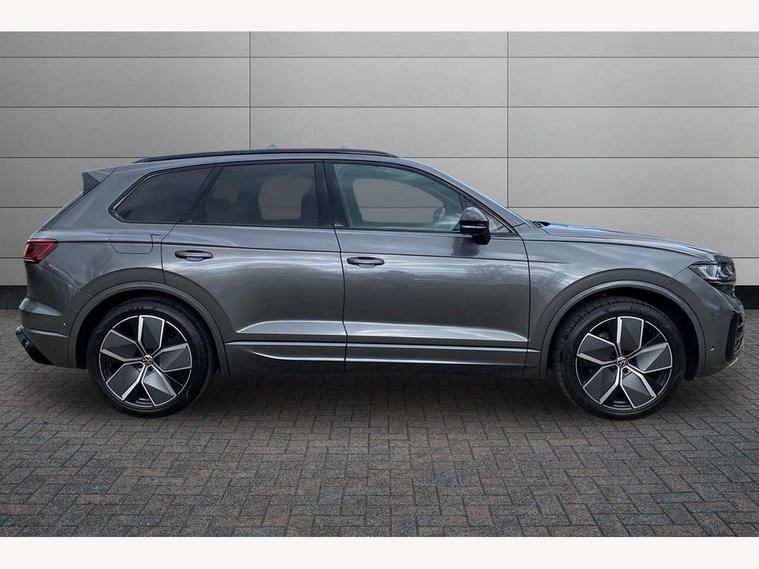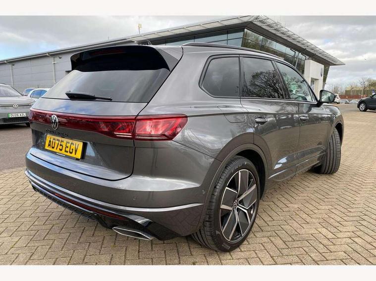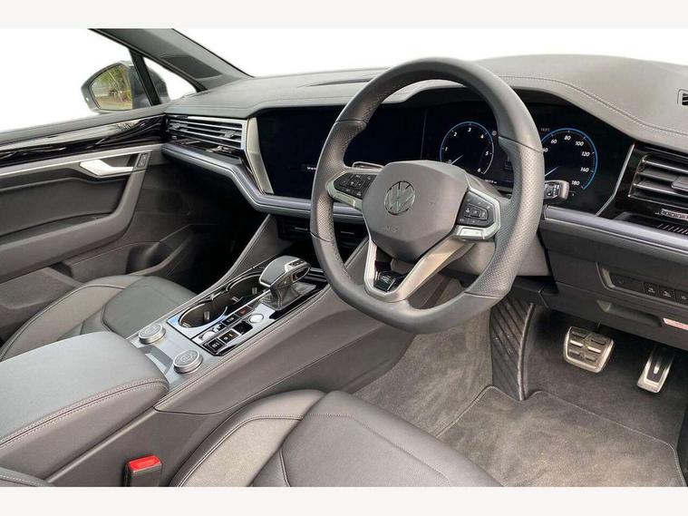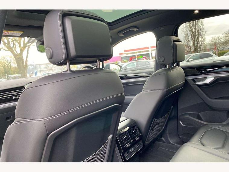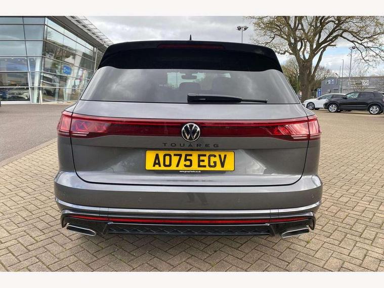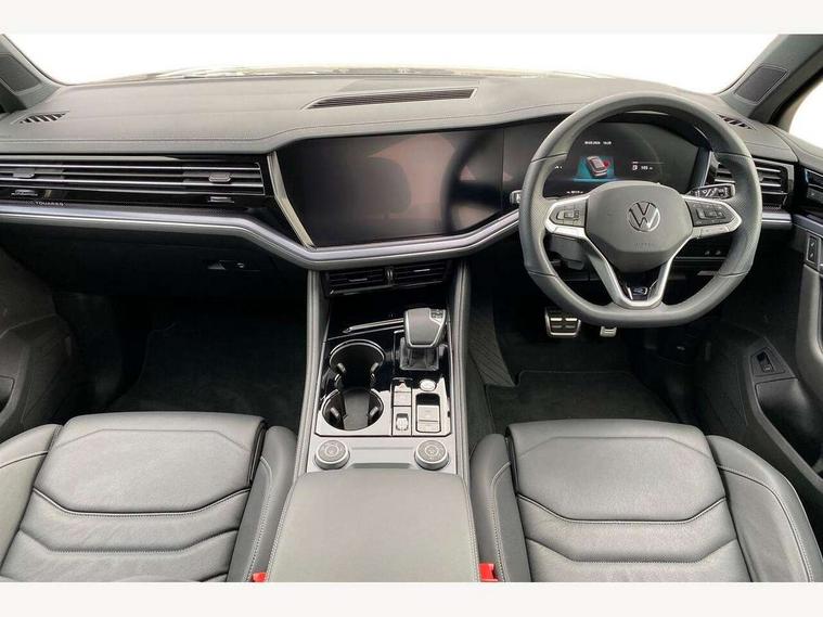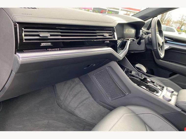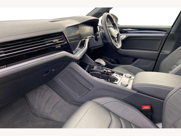 15" Screen Top infotainment system Premium (MIB3), Adaptive cruise control, Advanced driver attention and drowsiness monitor, Driver profile selection, Dynamic road sign display, E-Sim card for online connectivity, eCall emergency system, Innovision cockpit, Intelligent park assist, Mobile phone interface with inductive charging, Multi-colour Active Info display, Park Assist - Sensor controlled steering aid to assist parallel or bay parking, PAS, Warning signal and warning light for front and rear seatbelts not fastened, Wireless app connect, Adaptive chassis control, DAB Digital radio, Diversity antenna for AM/ FM reception, We Connect and We Connect Plus functionality, Automatic coming/leaving home lighting function, Automatic headlights, Black door mirrors, Black style comfort bumpers, Dynamic headlight range control with dynamic cornering light, Electric front tilt/slide panoramic sunroof and fixed rear sunroof, Electrically power adjustable, heated, folding, auto dimming, front passenger exterior door mirror lowering function, External USB type C socket and charging sockets, Gloss black roof rails, HD LED Matrix beam plus digital headlight projection with variable light distribution, Headlight washers, Heat insulating darkened glass in side and rear windows, Highway light, LED 3rd brake light, LED daytime running lights, LED rear combination lamp with variable lighting functions and special styling, Poor weather light, Privacy glass for rear side windows and rear window, tinted glass from B pillar backwards - 80%, Rain sensor, Rear exhaust tailpipe, Rear fog light with back up light on both sides, Rear light bar and illuminated logo, Rear side wing doors, Rear wiper, Stainless steel door sill protection, 12V socket in centre console, 3 rear headrests, 3 seat bench in 2nd row, 4 zone climate control, Airbag label on sun visor and B-pillar, Brushed stainless steel pedals, Double sun visors with illuminated vanity mirrors, Front + rear carpet mats, Front centre armrest, Leather wrapped multifunction sports steering wheel, heated, with touch control and shift paddles, Mechanical rear seat release, Power adjustable lumbar support in front, Power seats in front, right side with memory features and seat cushion depth adjustment, Rear seat backrest and split folding with center armrest, Single front passenger seat, Extra acoustics pack - Touareg, Memory pack plus - Touareg, 3 point seatbelts, outer rear with ECE lable, ABS, Child locks on rear doors, Curtain airbags, Driver and front passenger safety-optimised head restraints, Driver/Front Passenger airbags, Extended pedestrian protection measures, Front assist, Front seat side impact airbags, Generative braking with start and stop system, Height adjustable 3 point front seatbelts with pre tensioners, Passenger airbag deactivate switch, Three 3 point rear seatbelts, Two tone horn, Warning triangle and first aid kit, Alarm system with interior protection, Easy open and close sensor controlled luggage compartment opening and closing with remote unlocking, Keyless Access Keyless locking and starting system with SAFELOCK, Aluminium decorative inserts, Black decorative trims, Gloss black decorative inserts in centre console, Tool kit,