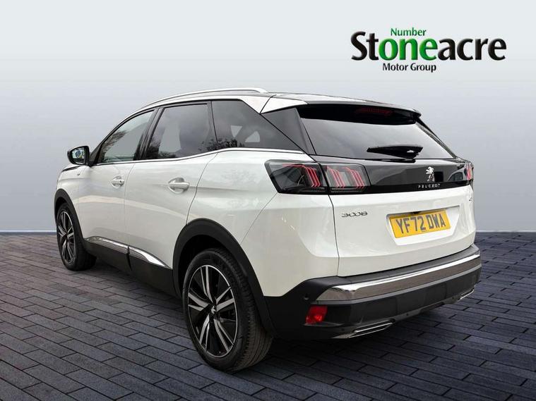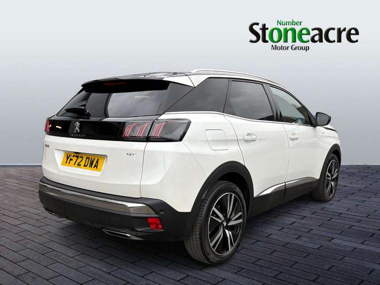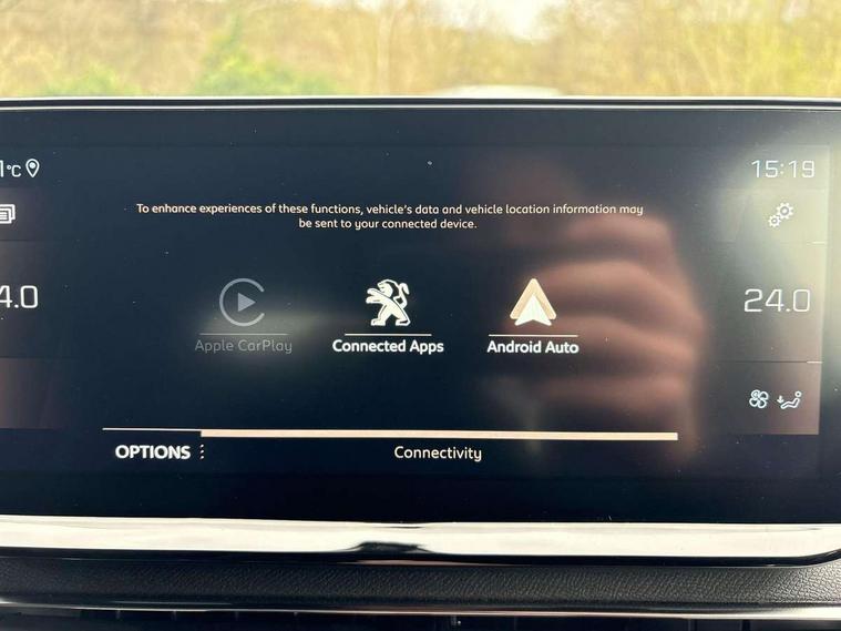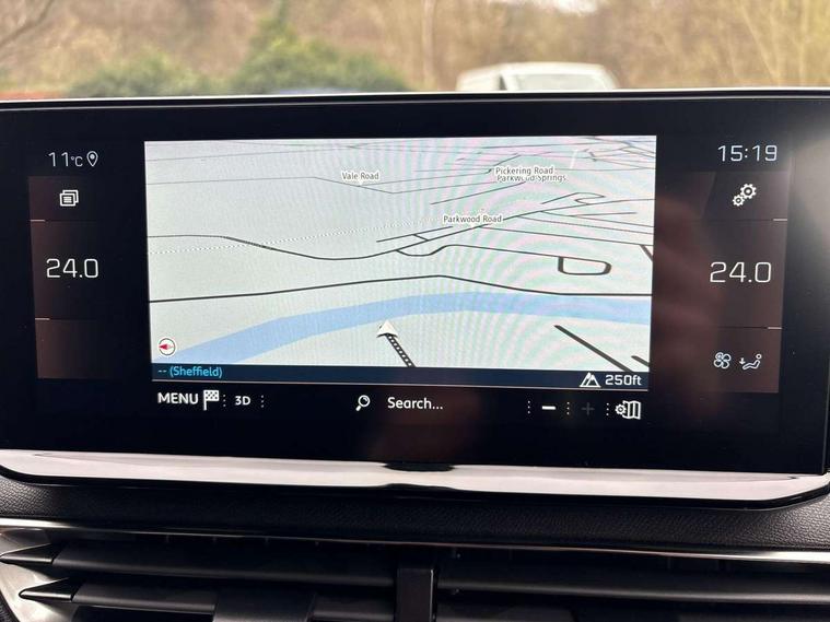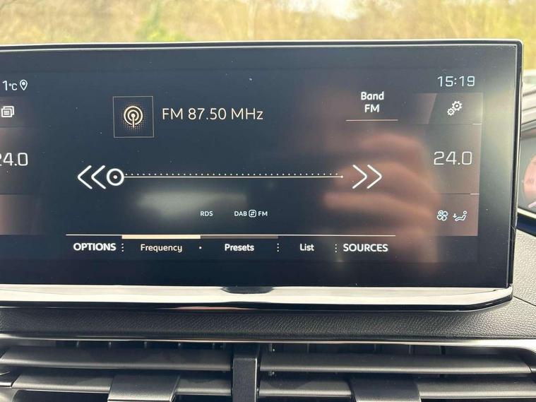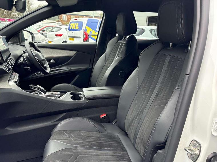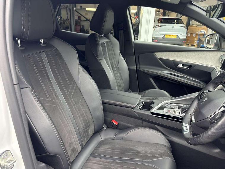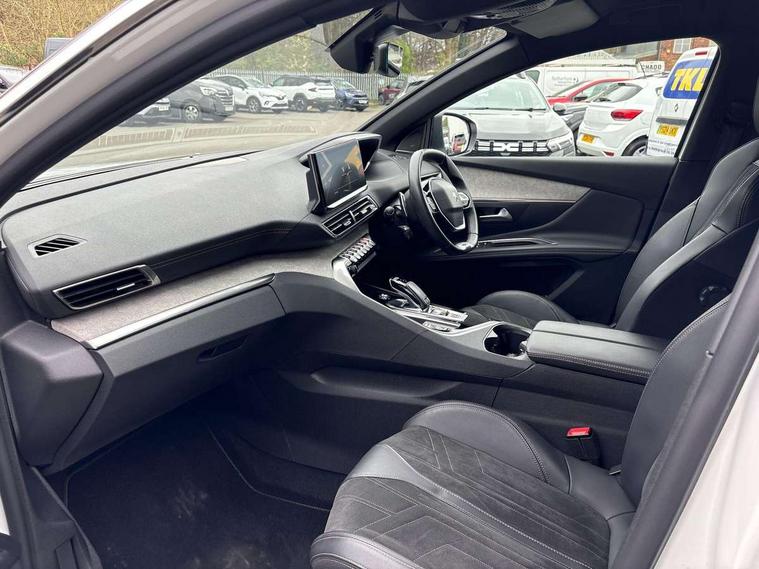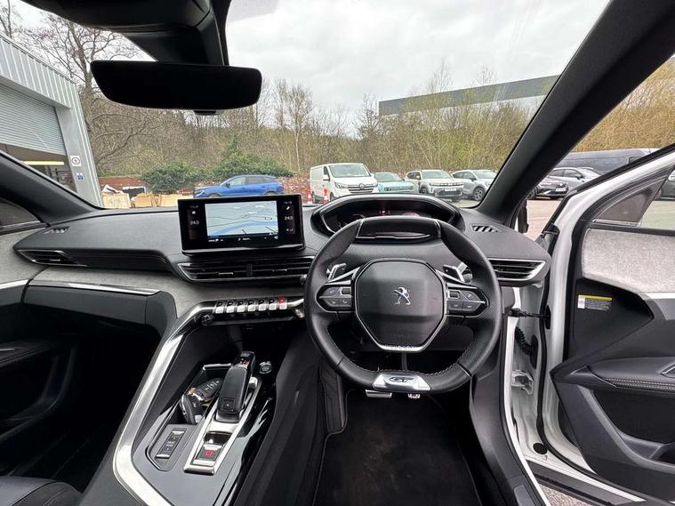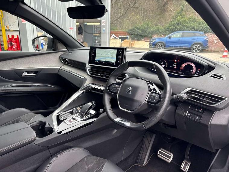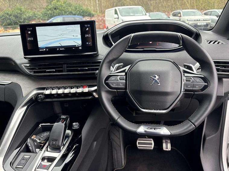 3D connected navigation with 10" HD touchscreen, Bluetooth telephone facility, Drive modes select (Eco, normal and sport), Driving Time Warning (DAA1), Emergency services call system, Extended traffic sign recognition, Exterior temperature indicator with ice warning, Front and rear parking sensors, Mirror screen with mirror link, apple carplay and android auto, Multi function trip computer, Passive blind spot monitoring without Steering correction, PEUGEOT i-Cockpit with 10" high definition capacitive touchscreen, Peugeot i-cockpit with compact multi-function sports steering wheel, PEUGEOT i-Cockpit with configurable 12.3" Head-up digital instrument panel, PEUGEOT SOS and assistance, Rear passenger USB charging sockets (x2) (type A), Speed limit recognition and recommendation, Visio park assist 360 with colour camera system + automatic parking assist, Voice recognition, Dynamic stability control and electronic anti-skid system, Stop/start function, DAB Digital radio, Focal premium HiFi sound system, USB socket, Auto self levelling headlights, Automatic hazard light activation upon heavy brake application, Automatic triggered rear windscreen wiper in reverse gear, Black with chrome detailed front wing trim, Body colour door handles, Body colour rear roof spoiler with stainless steel edging trim, Body protectors (bottom of front and rear bumpers + wheel arches + protection at bottom of doors) in black, Dark tinted rear side windows + tailgate window, Diamond Black door mirror shells, Door mirror mounted LED courtesy floor lighting, Electric folding door mirrors with exterior courtesy LED lighting, Electric operated/heated door mirrors, Fog Mode, Front windscreen wiper with magic wash cleaning system, Full LED headlights with LED fog lights with static cornering function, Gloss black B and C pillar and aerodynamic deflector trim, Gloss black front bumper air scoops, Gloss black rear cluster connecting strip, Gloss black windscreen trim, GT emblem in satin copper (front wings and tailgate), Headlights left on audible warning, Heated rear windscreen with integrated antenna, LED daytime running lights, LED front indicator, LED rear number plate lighting, LED side indicator lights integrated into door mirrors, LED third brake light, One touch electric front/rear windows with pinch protection, Rear LED Peugeot signature 'Claw Effect' lights, Rear side wing doors, Stainless steel roof arches, Twin exhaust tailpipe, 1/3 to 2/3 split folding rear seats, 12V Sockets in dashboard, rear cabin and load area, 2 cupholders in front centre console, 2 cupholders in rear armrest, 2 x Rear reading spotlights, 2x Rear coat hooks, 3x Isofix child seat fittings in the front passenger and outer rear seats, 4 Grab handles retractable and damped, Aikinite stitching in armrest, gear lever and dashboard facia, Aluminium pedals, Blue ambient lighting for connecting zone, Blue ambient lighting to front door panels, central storage and cupholders, Blue ambient lighting to headup instrument panel, Centre front armrest with butterfly wing opening and illuminated storage compartment, Dual zone automatic climate control, Electric power steering with reach and rake adjustable steering column, Flocked front door pocket interior with blue ambient lighting, Flocked glovebox interior, Focal tweeter speaker grilles in Belem bronze metal effect finish, Foldable front passenger seat with picnic table, Footwell illumination, Front interior light with 2 reading spotlights and rear interior light with timer, Front passenger seat manual adjustment (longitudinal and back rest angle), Front seat back map pockets, Gear shift indicator, Illuminated glovebox, Individual left and right controls in boot for seat folding, LED interior lighting in storage spaces and load area, LED roof interior lighting, Mistral floor mats with Aikinite contrast stitching, Mistral full grain perforated leather steering wheel with aikinite stitch detail and satin chrome 'GT' emblem, Rear bench seat with central armrest and ski hatch, Rear centre console ventilation system, Roof lining - Mistral black, Satin chrome dashboard trim, Satin chrome digital instrument panel and touchscreen trim, Satin chrome front door panel recess trim, Satin chrome interior door handles, Satin chrome scorpion's tail and toggle switch trim, Seatbelt not fastened audible and visual alert for front seats, Seatbelt unfastened on the move audible and visual alert for front and rear seats, Sunvisors with illuminated vanity mirrors, Two position boot floor, Drive assist plus pack - 3008, Driver sport pack - 3008 Auto, Safety plus pack with high beam assist - 3008, Visibility pack - 3008, 3x Rear three-point retractable seatbelts with force limiters in the outer rear seats, ABS (Anti-lock Braking System) with EBD (Electronic Brakeforce Distribution) and EBA (Emergency Braking Assistance), Adaptive driver and front passenger airbags with passenger airbag deactivation function, Driver and front passenger side airbags, Electric child locking functionality on rear windows and doors, Electric parking brake, Front and rear curtain airbags, Front optimised safety headrests and 3 x rear retractable headrests with height adjustable, Front three point retractable seatbelts with pre tensioners and force limiters, Front ventilated disc brakes and rear disc brakes, Hill start assist, Two tone horn, Automatic door locking when moving off, Electronic immobiliser, key operated exterior door lock from the left hand door, Perimetric and volumetric alarm with lift and tilt sensor, Peugeot Open and Go System, Remote control central locking with two plip keys, Puncture repair kit including compressor, sealant cartridge and towing eye,