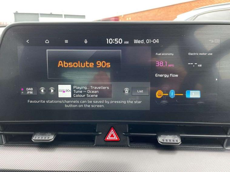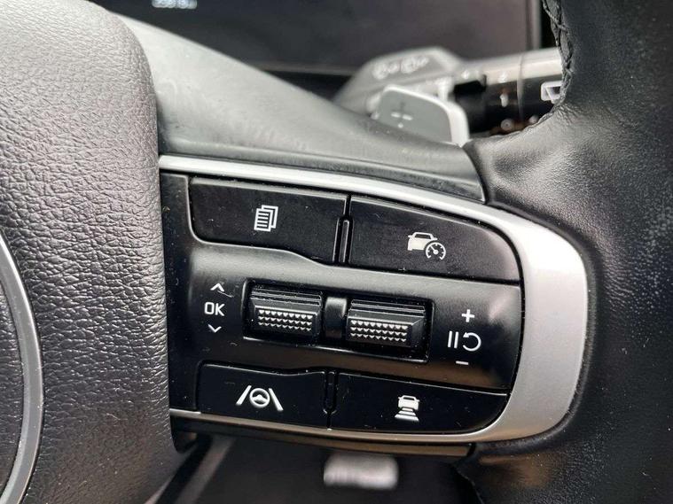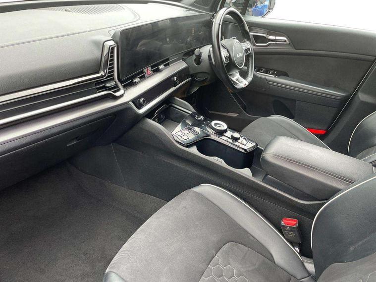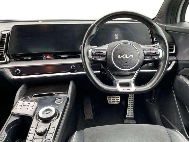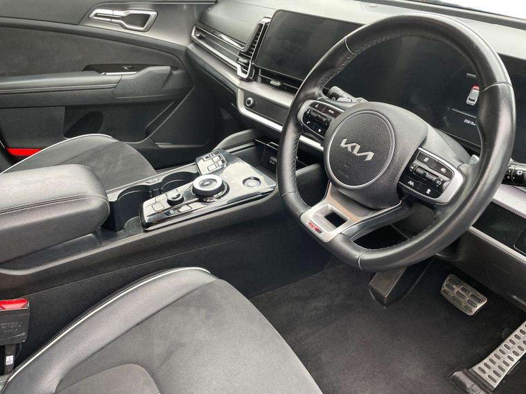12.3" Display with navigation, 4.2" supervision colour cluster display, Apple car play/Android Auto with voice control, Drive mode selector, E-call, Forward collision avoidance assist (FCA) - city/pedestrian/cyclist/junction covering, Front and rear parking sensors, Highway Driving Assist (HDA), Intelligent speed limit assist, Kia Connect (UVO), Lane Following Assist (LFA), Lane keep assist, Low washer fluid warning, Rear view monitor, Reversing camera system integrated into centre fascia screen, Smart cruise control with stop and go functionality, Speed sensitive power steering, Trip computer, Windscreen washer level indicator, Intelligent Stop and Go, 6 speaker audio system, Bluetooth audio streaming, DAB Radio with MP3, Rear USB port, Steering wheel mounted audio controls, USB C type charging ports on centre console, USB C type charging ports on side of front seats, USB port for connection of a media device, All round electric windows with drivers and front passenger auto up/down function, Automatic headlight control system, Automatic window defogger, Backlite glass heated with timer, Body colour and black bumper with silver accents, Body colour exterior door handles, Body colour radiator upper garnish and door garnish, Electrically adjustable/heated/folding door mirrors with LED indicators, Front and rear chrome skid plates, Gloss black door mirrors, Gloss black radiator grille, Gloss black side sill and wheel arch body mouldings, Glossy black roof rack, High beam assist, Interior electrochromic mirror, LED daytime running lights, LED front fog lamps, LED headlamps (low and high beam - MFR type), LED High mounted stop light, LED rear combination lamp, Rain sensing wipers with aero blades, Rear fog lamp, Rear privacy glass, Rear side wing doors, Rear spoiler, Rear wiper, Satin finished beltline, Silver coloured inserts to bumpers, Tinted rear glass, Trailer stability assist, 12V power socket in front centre fascia and luggage compartment, 2nd row personal lamps, 3 seat bench in 2nd row, 3 x passenger assist grips, 40/20/40 split folding rear seat, All-round height adjustable headrests, Black headlining, Centre console storage box, Cupholders in rear armrest, D-Shaped sports leather steering wheel and perforated inserts with GT-Line logo, Door courtesy lamps, Drink holder at centre armrest, Driver and front passenger side sunvisors with illuminated vanity mirrors, Driver's seat manual height adjust, Drivers seat power lumbar support, Front and rear door storage, Front seat and rear pockets, Front/rear centre armrests, Gear shift indicator, Glovebox illumination, Heated front seats, Heated steering wheel, Interior door lock/unlock function, ISOFIX Child seat top tethers and anchor fixings outer rear seats, Luggage area light, Luggage area load cover, Luggage net with hooks, Metal paint interior door handles, Overhead console lamp, Paddle shift controls, Rear cabin light, Rear coat hooks, Single front passenger seat, Sports pedals, Suede leather upholstery, Three zone climate control, Tilt/telescopic adjustable steering wheel, Ventilation ducts to rear compartment, Active front headrests, All round 3-point seatbelts, Anti-lock braking system (ABS), Dual front side airbags, Dual horn, Electronic parking brake, Electronic stability control with downhill brake control, Front passenger airbag cut-off switch, Front seatbelt pretensioners + load limiters, Height adjustable front seatbelts, Hill start assist control (HAC), Impact sensing auto door unlocking, Multi collision brake assist, Rear door child safety locks, Rear seat alert system, Traction control, Twin curtain airbags, Twin front airbags, Tyre pressure monitoring system, Advanced anti-theft system including immobiliser and alarm, Door deadlocks, Engine Start/Stop Button with Smart Entry System, Locking wheel nuts, Speed sensitive auto door locking, Visible vehicle identification number, Aluminium pattern finish centre fascia and door garnish, 18" GT-Line alloy wheels, Tyre mobility kit,