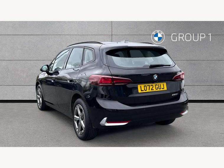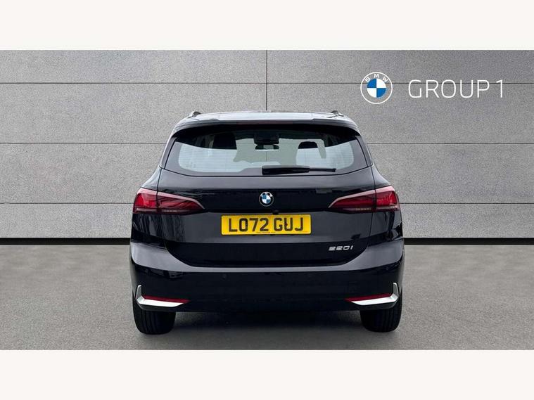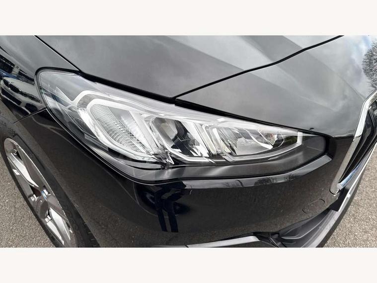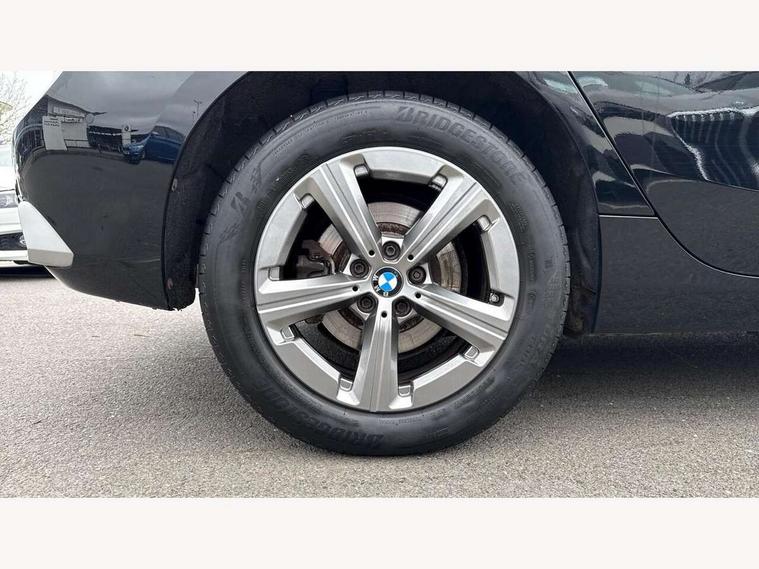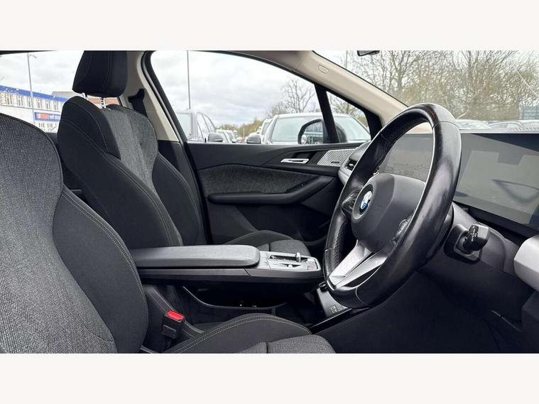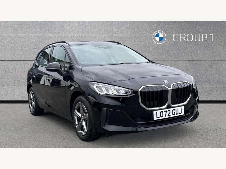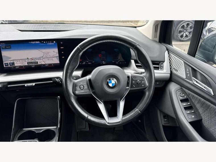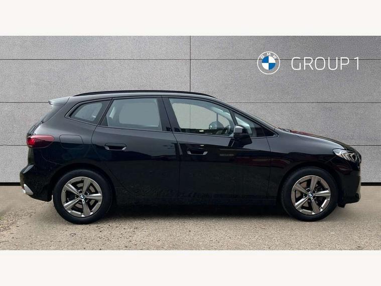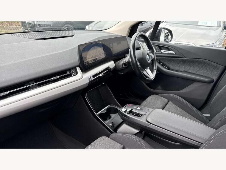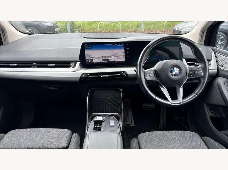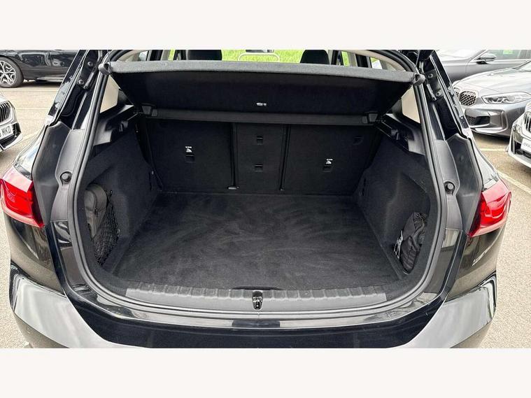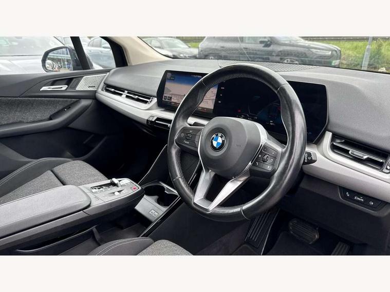 Active Guard incl speed limiting and lane departure functions with auto steering, and front collision warning with brake intervention, Automatic powered tailgate, Automatic start/stop function, BMW Online services, BMW Teleservices, Brake pad wear indicator in front and rear, Condition based service, Drive off assistant, Flat air vents on instrument panel in high gloss black, adjustable slats with elements in pearl chrome, iDrive controller, Language version English, On board computer - average speed+fuel consumption, service interval, clock/date, odometer/trip meter, outside temperature display and ice warning, Parking assistant with active park distance control, reversing assistant, lateral parking aid and rear view camera, Servotronic variable electric power steering (EPS), Smartphone integration, Widescreen display, Drive performance control with ECO PRO comfort + sport mode, Gear selector switch with toggle operation, Petrol Particulate Filter, Standard suspension, Steptronic transmission with double clutch, 2x USB Type C ports in front centre console for charging and data transfer, 2x USB Type C ports in rear centre console for charging, DAB Digital radio, Welcome sound upon opening of the front driver or passenger door, Automatic headlights, BMW emblem, engine compartment lid and tailgate, BMW radiator grille with grille struts, end face black high-gloss, radiator grille frame chrome high-gloss, Body colour sill covers, Body coloured door mirror caps, Contoured rear roof spoiler in vehicle colour with side aeroblades in black high-gloss, Driver side exterior mirror lighting with BMW logo projection, Dynamic brake lights, Electric adjustable heated door mirrors, Electric windows - front and rear, with open/close fingertip control, anti-trap facility and comfort closing, Folding door handles integrated flush with surface, Front and rear windscreen wipers with heated front washer nozzles, Front bumper cover with air inlet trims for air curtains in matt black, Front door exit lights, Heated rear window, Hidden exhaust pipe, High gloss shadow line, High gloss shadowline roof rails, LED Daytime running lights and parking lights with turn indicators, LED number plate light, LED third brake light in rear spoiler, Manual headlight range control, Matt black roof strips, Model inscription on right tailgate, Rain sensor, Rear bumper cover with two L-shaped trims in Pearl chrome, Rear side wing doors, Shark fin antenna, Trailer stabilisation logic, Visible VIN plate, Welcome lighting, Window washer nozzle for rear view camera, 12V socket in right side trim panel, 2 bag hooks in luggage compartment, 2 front reading lights, 2 open cup holders in front centre console, 2x 12V power socket in luggage compartment and front centre console, 3 seat bench in 2nd row, 40:20:40 split folding rear seat backrests, Ambient lighting front and rear, Automatic two zone climate control air conditioning, Bottle trays in all doors, Child seat ISOFIX attachment for two outer rear seats and front passenger seat with anchorage points, Driver and front passenger sports seats, Footrest and pedals in black plastic, Four grab handles integrated in roof lining, Front and rear door pockets, Front and rear footwell lighting, Front and rear side armrest integrated into door trim, Front and rear velour floor mats in anthracite, Front centre console storage compartment, Front head restraints, Glovebox with light, Height adjustable 3 rear head restraints, Interior door handle recess light on all doors, Luggage compartment lighting, Map pockets, Mechanical rear seats with fore/aft adjustment, Multi-function controls for steering wheel, One piece parcel shelf opens together with tailgate and removable, Rear cloth hooks, Single front passenger seat, Sliding rear seat bench, Steering wheel column manual adjustment, Storage compartment lighting in centre console and storage tray in centre stack, Storage compartment net in left side trim panel, Storage compartment with folding cover under centre console armrest cushion, Storage tray in right side trim panel, Sunvisors with illuminated vanity mirrors, Three spoke sport leather steering wheel, Connected pack professional - 2 Series Active Tourer, 3 point seatbelts on all seats, front pyrotechnic belt tensioners, stopper and belt force limiters, rear coded belt buckles, Airbag - Front driver and passenger, front and rear head, front side, curtain head protection, manual deactivation of front passenger airbag possible, Anti lock braking system (ABS) with brake assist, Automatic hold function, BMW emergency call, Brake drying, Braking readiness, Child proof locking system in rear door, Cornering brake control, Crash Sensor - activates hazard/interior lighting + unlocks doors, DSC - Dynamic Stability Control, Dynamic brake control, Dynamic Traction Control - DTC, Electromechanical parking brake, Energy recovery system, Front disc brakes, Integrated braking system, PC iBrake PostCrash approach control warning with light braking function, Rear disc brakes, Tyre pressure monitoring system, Warning triangle and first aid kit, Anti theft alarm system, Closing system with central locking, Engine immobiliser, Locking wheel bolts, Front centre console trim in high gloss black with my mode expressive, BMW mobility tyre sealing system, Reduced rolling resistance tyres,