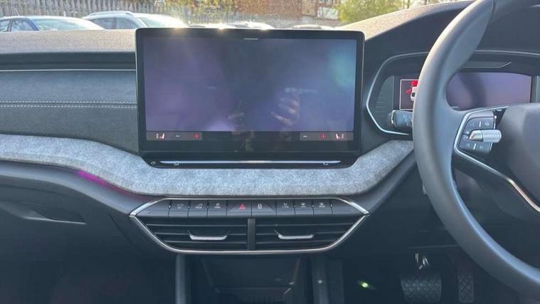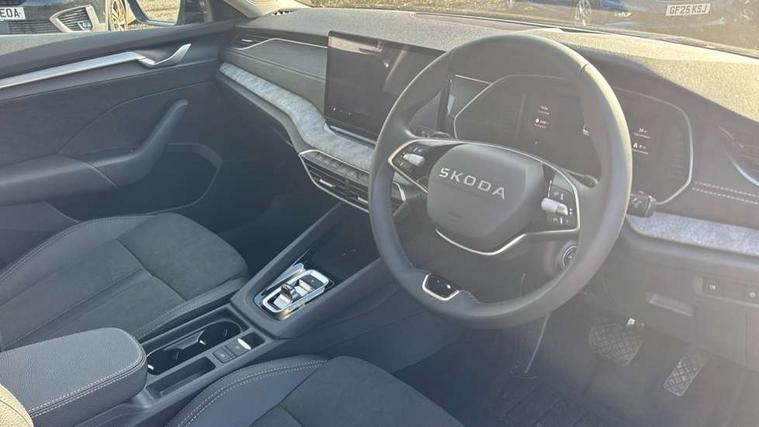 1x USB Typc C port in rear view mirror, 4x USB Type C ports - 2x in front centre console and 2x in rear (45W), Drive mode selection, Driver fatigue sensor, eCall emergency system, Electro-mechanical power steering, Front assist system, Traffic sign recognition, Turn Assist, Virtual Cockpit - 10.25" digital display, Voice control system, Wireless charging (15W) with cooling function, Wireless SmartLink for Apple CarPlay and Android Auto, 13" touchscreen display with navigation, DAB Digital radio, Aero front windscreen wipers with intermittent function, Auto dimming rear view mirror, Body colour bumpers, Body colour door mirrors and handles, Chrome grille surround, Chrome strip in lower front bumper, Chrome window surrounds, Electric front and rear windows, Electrically adjustable, heated, folding and driver side auto-dimming door mirrors, Heated rear windscreen, High level third brake light, Ice scraper in fuel cap, LED daytime running lights, LED Headlights, Logo projection in front doors, Rain and light sensors, Rear fog light on one side and reversing lights on both sides, Rear privacy glass, Rear side wing doors, 12 volt socket in boot, 3 rear headrests, 3 seat bench in 2nd row, 4 foldable roof handles, Boot net programme, Electric auxiliary air heater, Front head restraints, Heated front seats, Illuminated glovebox, Interior door handles in dark chrome, Jumbo Box storage, Luggage compartment lighting x2 lights, Mechanical rear seat release from boot, Parcel shelf - folding, Single front passenger seat, Steering wheel in black leather with black stitching, Storage compartment under passenger seat, Storage compartments in left and right of boot, Sun visors with mirrors, Sunglasses storage, Ticket holder, Two-spoke leather multi function steering wheel with paddles, Umbrella in door panel, Unsplit rear bench seat, split folding backrest with centre armrest with cupholder, Comfort package - Octavia, 3x3 point rear seat belts, Alarm with interior monitoring, tilt sensor and back up horn, Curtain airbags and front side airbags, Driver and front passenger airbags, Drivers knee airbag, Electronic parking brake, ESC including ABS, EBV, MSR, ASR, EDS, HBA, DSR, Front central airbag, Hill hold assist, ISOFIX on front passenger seat and outer rear seats, Passenger airbag deactivate switch, Three point seat belts in front and rear, Two tone horn, Tyre pressure monitor, Visual and acoustic seat belt reminder, Warning reflectors in front door, Anti-theft wheel bolts, Keyless entry and start/stop, Remote central locking, Chrome air vent surrounds,