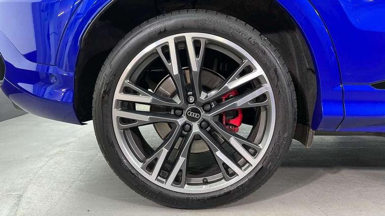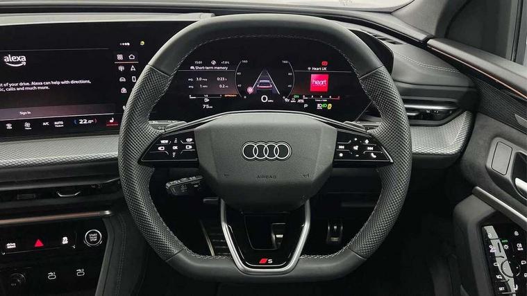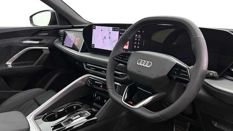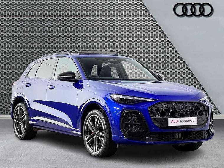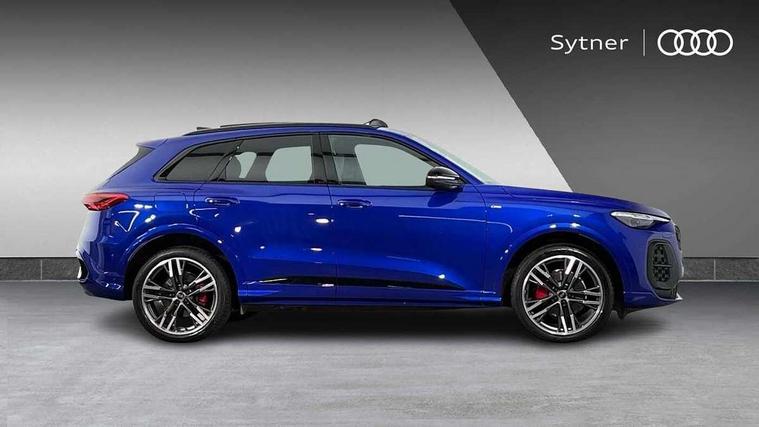 Adaptive cruise control, Advanced driver attention alert, Audi application store, Audi connect emergency call and service, Audi drive select, Audi smartphone interface, Audi virtual cockpit plus with 11.9" OLED colour display, Camera based traffic sign recognition, Fatigue monitor, Front cross traffic intersection assist, Lane change assistant with exit warning system, rear cross traffic alert and rear turn assist, Lane departure warning with emergency assist, MMI 10.9" front passenger touch display, MMI navigation plus with high resolution 14.5" OLED touchscreen colour display, Park assist plus, Parking system plus with 360 display, PAS, Reversing camera, Swerve assist and turn assist, Top view camera, Traffic sign based speed limiter, 2 USB-C ports in both the front and rear, Audi sound system impressive sound with 8 loudspeakers including centre speaker and subwoofer, 6-channel amplifier with a total output of 180 watts, DAB Digital radio, Smartphone compartment with wireless charging, Active digital light signatures - Six additional combinations of active daytime running light signature, Auto dimming rear view mirror, Black roof rails, Coming/leaving home lighting function, Electrically adjustable heated and folding + automatically dimming exterior mirrors, Exhaust tailpipes in dark chrome, Front and rear electric windows, Front door sill trims with aluminium inlays, illuminated with 'S' logo, Full body paint finish, Grill frame, inlay and front air inlets in matt anthracite chrome, Headlight cleaning system, Heated rear window, High beam assist, High gloss window surrounds, LED rear lights pro incl. dynamic rear indicators and illuminated light strip with animated coming and leaving home function, Logo projection light in exterior mirrors, Matrix LED headlights, Memory function for door mirrors, Privacy glass, Projection third brake light for rear window in LED, Radiator grille in phantom black, Rear and side windows with heat insulating glass, Rear honeycombe grille in matt black with inlay in matt anthracite chrome, Rear side wing doors, Rear wash/wipe, S Line badge on the front wings, Towbar preparation, Windscreen with acoustic glazing, 3 rear head restraints, 3 seat bench in 2nd row, 3 spoke leather steering wheel with multi-function buttons with touch control, flattened on top and bottom, with S badging and contrast stitching, 4 way electric lumbar support for driver and front passenger, 40:20:40 split folding rear seat bench with centre armrest and cup holders, Comfort centre armrest front, Deluxe 3 zone electronic climate control, Dinamica microfiber/leather upholstery with diamond stitching, Electrically adjustable front seats with memory function for driver's side, Front and rear floor mats, Front sport seats with integrated head restraints, Headlining in black cloth, Heated front seats, i-Size child seat mounting on the front passenger side and outer rear seats, i-Size and top tether on the outer rear seats, Interior trim in aluminium look, Luggage compartment lid, electrically opening and closing, Manual steering column adjustment, S embossed logo on front sport seats, Single front passenger seat, Softwrap in Dinamica, Stainless steel pedals and footrest, Steering wheel grips in perforated leather and shift paddles, Ambient lighting package plus - Q5, Black styling package plus - Q5, Storage and luggage compartment pack - Q5, 3x3 point rear seatbelts, ABS, Acoustic vehicle alerting system, Convenience key with safelock, Driver and front passenger airbag with passenger airbag deactivation, Electric child safety locks, First aid kit with warning triangle and high visibility vests, Front emergency brake assist, Front side airbags with head airbag system and front interaction airbag, Hill hold assist, Occupant detection in rear seat area, Proactive passenger protection system for front, sides and rear, Red brake calipers, Side airbags in front and rear with head airbag system and front interaction airbag, Tyre pressure loss indicator, Anti theft alarm, Anti-theft wheel bolts, Remote control key with SAFELOCK and keyless go, Accent surfaces and control buttons in gloss black, Black dashboard with contrast stitching, Steel grey seat stitching, Upper and lower interior elements in dinamica microfiber, Tyre repair kit,