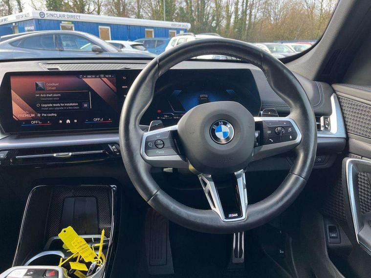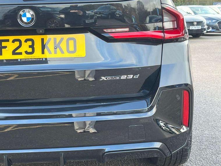 Active Guard + lane departure warning, speed limiting, front collision warning, Left turn warning with brake function and evasion assist, Attentiveness assist, Automatic start/stop function, BMW Live Cockpit Plus with 10.25" instrument cluster and 10.7" display, BMW Operating system 9 with BMW Maps, real-time traffic information, in-car experiences, remote services and smartphone integration, BMW Teleservices, Brake pad wear indicator, Condition based service, Connected eDrive Services, Drive off assistant, Electrically opening/closing tailgate with opening/closing with remote control and contactless opening and closing, iDrive controller, Language version English, My Modes, Parking Assistant with Reversing Assistant, active PDC, Lateral Parking Aid, Rear View Camera and Park Distance Control, Personal Profile - automatic lock when driving away selectable, Servotronic PAS, Tyre puncture warning system, Widescreen display, Diesel particulate filter, Diesel with SCR emission control system, M Adaptive suspension, Performance Control, Steptronic transmission with double clutch and gear shift paddles, xDrive intelligent four wheel drive system, DAB Digital radio, Badge on engine compartment lid and tailgate, Contoured rear roof spoiler in vehicle colour with side aeroblades in black high-gloss, Dynamic brake lights, Electric adjustable heated door mirrors, Electric windows - front and rear, with open/close fingertip control, anti-trap facility and comfort closing, Folding door handles integrated flush with surface, Follow me home headlights, Front and rear bumper panel with M specific design, in body colour with inserts in black high gloss, Front door exit lights, Front entry sills aluminium inserts with M inscription, Heated rear window, High gloss shadow line includes B-pillar trim panel/window cavity cover/window frame/window guide rail front doors/door mirrors in high gloss black, Invisible exhaust tailpipe, Key with M identification, LED 3rd brake light integrated in rear roof spoiler, LED daytime running lights, LED number plate light, M identification on the sides, M roof rails high gloss shadow line, M specific radiator grille in satinated aluminium, Matt black roof strips, Model inscription on right tailgate, Rain sensor including auto headlights activation, Rear side wing doors, Rear wiper, Side sill covers with M specific design in body colour, Trailer stabilisation logic, Welcome lighting, Window washer nozzle for rear view camera, Windscreen wipers with front and rear heated washer nozzles, 12V - Power sockets with front centre console and luggage compartment, 2 cup holders in front, 2 x USB Type C ports for charging and data transmission (front centre console) and 2 x USB Type C ports for charging (rear centre console), 3 rear headrests, 3 seat bench in 2nd row, 3 upper retaining strap clips integrated into rear panels of seat backrests, 40:20:40 split folding rear seats, Ambient interior lighting, Anthracite headlining, Anthracite Velour front and rear floormats, Bottle trays in all doors, Child seat ISOFIX attachment for two outer rear seats and front passenger seat with anchorage points, Clothes hook rear, Driver and front passenger heated seats, Dual zone automatic air conditioning, Front and rear door pockets, Front centre console storage compartment, Front sports seats, Front/rear adjustable head restraints, Glove compartment, Light on right in luggage compartment, M sport leather steering wheel, Manual steering column height and depth adjustment, Map pockets, Middle centre console storage compartment, Rear armrest in door trim panel, Single front passenger seat, Sport leather multifunction steering wheel with thumbrests and operation of instrument display, audio, telephone and driver assistance, Storage compartment with folding cover under centre console armrest cushion, Technology pack - X1, ABS/EBD, Automatic hold function, Automatic Stability Control (ASC), BMW emergency call, Braking readiness, Cornering brake control (CBC), Crash Sensor - activates hazard/interior lighting + unlocks doors, Driver/Front Passenger airbags, Driver/front passenger side airbags, Dry braking, Dynamic stability control + (DSC+), Electromechanical parking brake, Energy recovery system, Front and rear brake discs, Front and rear head airbags, Front passenger airbag deactivation, Integrated brake system, PC iBrake PostCrash approach control warning with light braking function, Rear door child safety locks, Three point seat belts in all seats, Tyre pressure monitor, Warning triangle, Alarm system with tilt sensor, monitoring doors, bonnet interior and tailgate, Closing system with central locking, Locking wheel bolts, Luxury instrument panel, Tyre repair kit (including Tyre sealant and 12V Compressor),