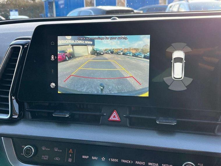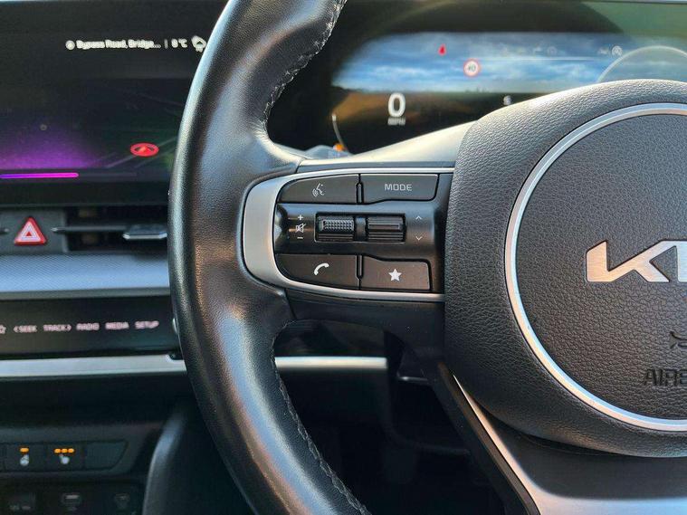 12.3" Display with navigation, 12.3" supervision colour cluster display, Apple car play/Android Auto with voice control, Cruise control + speed limiter, Drive mode selector, E-call, Forward collision avoidance assist (FCA) - city/pedestrian/cyclist/junction covering, Front and rear parking sensors, Intelligent speed limit assist, Kia Connect (UVO), Lane Following Assist (LFA), Lane keep assist, Low washer fluid warning, Rear view monitor, Reversing camera system integrated into centre fascia screen, Speed sensitive power steering, Trip computer, Windscreen washer level indicator, Intelligent Stop and Go, 6 speaker audio system, Bluetooth audio streaming, DAB Radio with MP3, Rear USB port, Steering wheel mounted audio controls, USB port for connection of a media device, All round electric windows with drivers and front passenger auto up/down function, Automatic headlight control system, Automatic window defogger, Backlite glass heated with timer, Black side sill and wheel arch body mouldings, Body colour and black bumper with silver accents, Body colour door mirrors, Body colour exterior door handles, Electrically adjustable/heated/folding door mirrors with LED indicators, High beam assist, Interior electrochromic mirror, LED daytime running lights, LED front fog lamps, LED headlamps (low and high beam - MFR type), LED High mounted stop light, Rain sensing wipers with aero blades, Rear fog lamp, Rear privacy glass, Rear side wing doors, Rear skid plate - silver, Rear spoiler, Rear wiper, Satin finished beltline, Silver radiator upper garnish and door garnish, Silver roof rack, Trailer stability assist, 12V power socket in front centre fascia and luggage compartment, 2nd row personal lamps, 3 seat bench in 2nd row, 3 x passenger assist grips, 40/20/40 split folding rear seat, All-round height adjustable headrests, Centre console storage box, Cloth/faux leather upholstery, Cupholders in rear armrest, Door courtesy lamps, Drink holder at centre armrest, Driver and front passenger side sunvisors with illuminated vanity mirrors, Drivers seat power lumbar support, Electric height adjustable front seats, Front and rear door storage, Front seat and rear pockets, Front/rear centre armrests, Gear shift indicator, Glovebox illumination, Heated front and outer rear seats, Heated steering wheel, Interior door lock/unlock function, ISOFIX Child seat top tethers and anchor fixings outer rear seats, Leather steering wheel, Luggage area light, Luggage area load cover, Luggage net hooks, Metal paint interior door handles, Overhead console lamp, Rear coat hooks, Single front passenger seat, Three zone climate control, Tilt/telescopic adjustable steering wheel, Ventilation ducts to rear compartment, Active front headrests, All round 3-point seatbelts, Anti-lock braking system (ABS), Dual front side airbags, Dual horn, Electronic parking brake, Electronic stability control with downhill brake control, Front passenger airbag cut-off switch, Front seatbelt pretensioners + load limiters, Height adjustable front seatbelts, Hill start assist control (HAC), Impact sensing auto door unlocking, Multi collision brake assist, Rear door child safety locks, Rear seat alert system, Traction control, Twin curtain airbags, Twin front airbags, Tyre pressure monitoring system, Advanced anti-theft system including immobiliser and alarm, Door deadlocks, Engine Start/Stop Button with Smart Entry System, Locking wheel nuts, Speed sensitive auto door locking, Visible vehicle identification number, Aluminium pattern finish centre fascia and door garnish, 18" alloy wheels, Tyre mobility kit,