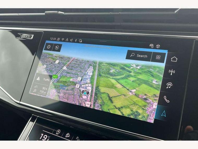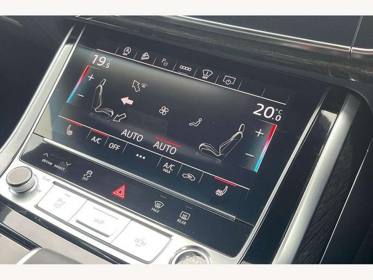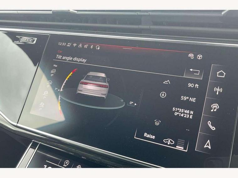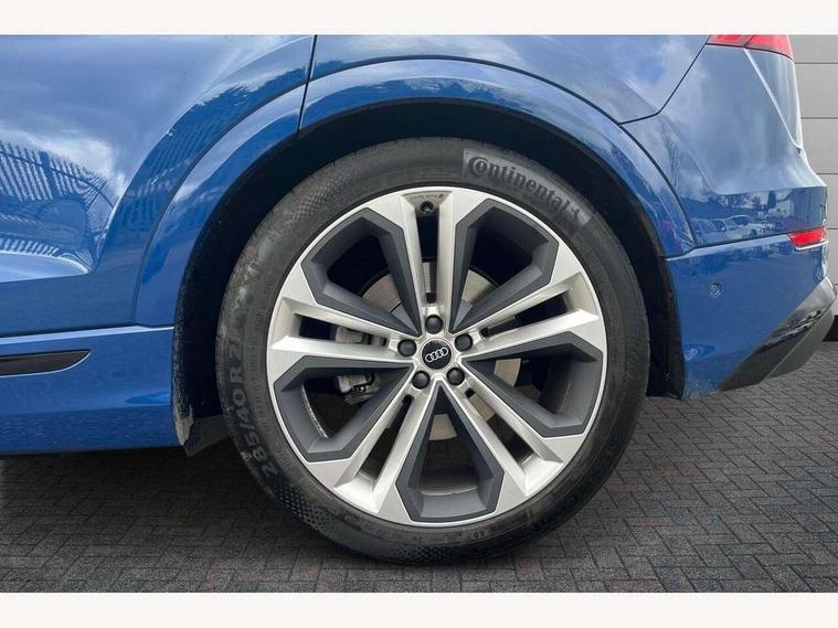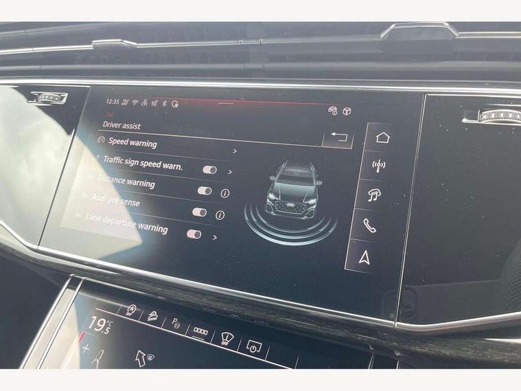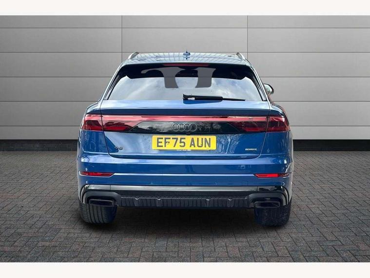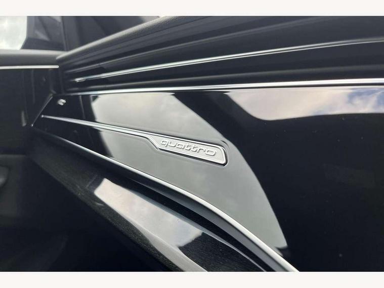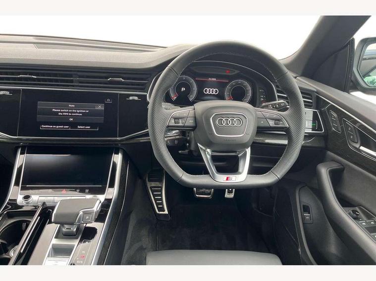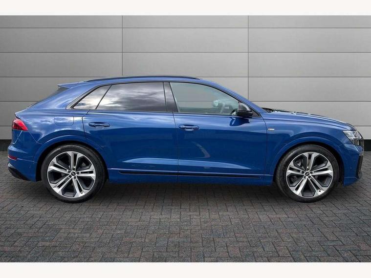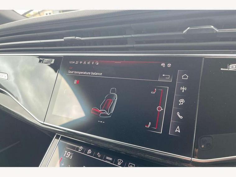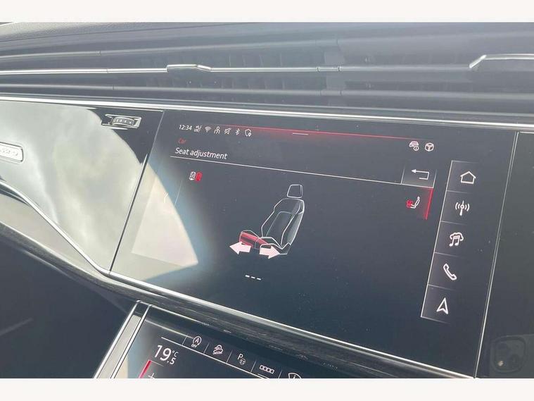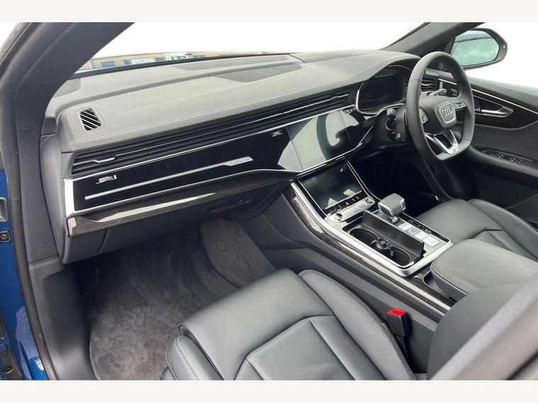10.1" and 8.6" Dual colour touchscreens, Audi application store, Audi connect safety and service (e-call), Audi connect with Amazon Alexa Integration, Audi drive select, Audi parking system plus includes 360 degree display with front and rear sensors, Audi phone box light with wireless charging, Audi virtual cockpit - 12.3" high resolution LCD display with fully customisable instrument cluster, Automatic start/stop system, Bluetooth, Electro-mechanical PAS, Low washer fluid indicator, MMI navigation plus with MMI touch, Natural voice recognition, On board computer, Operating buttons in black, glass look with haptic feedback, Power operated tailgate, Rear view camera, Service interval indicator, Smartphone interface includes wireless Apple carplay/Android Auto, 48V Mild hybrid technology, Adaptive sport air suspension, Diesel particulate filter, Quattro all wheel drive with self locking centre differential, Audi music interface with 2 USB ports with charge and data functions, Audi sound system with 6 channel amplifier, 180 watt amplifying capacity and 10 loudspeakers including subwoofer, Aux-in socket, DAB Digital radio, 3rd brake light, Audi beam, Auto dimming frameless rear view mirror, Black exhaust tailpipes, Black single frame mask, Coming/leaving home lighting function, Electric front+rear windows, Electrically folding auto dimming/adjustable/heated door mirrors with memory function, LED side indicators and kerb view function for passenger side, Headlight washers, Heat insulating glass in windshield, LED rear light plus, LED signature daytime running lights, Loading edge protection in stainless steel, Matrix LED headlights with dynamic front and rear indicators, Platinum grey front spoiler lip and diffuser insert with honeycomb grille in black, Privacy glass - dark tinted rear and rear side windows from B-pillar backwards, Rain and light sensors, Rear side wing doors, Rear wiper, Singleframe grille surround in matte platinum grey, 2 zone automatic climate control, 3 bench rear seats in 2nd row, 4-way lumbar support for front seats, 40:20:40 split folding rear bench seat, Black cloth headlining, Comfort front centre armrest, Driver seat memory function, Electrically adjustable front seats, Front head restraints, Front/rear floor mats, Heated front seats, ISOFIX child seat mounting for front passenger seat and 2 outer rear seats with top tether child seat mounting for all 3 rear seats, LED interior ambient lighting, Luggage compartment sill protection in stainless steel, Rear centre armrest with 2 cupholders, Rear headrests, Seat cushion displaceable by 100mm in the ratio 60:40, Single front passenger seat, Stainless steel pedals, Sunvisors with illuminated vanity mirrors, Black styling pack plus - Q8, 3 point seatbelts on all seats, Audi pre sense front, Convenience key with safelock, Driver and front passenger, front side and curtain airbags, Electromechanical parking brake, Electronic Stability Control (ESC) including ABS, ASR and EDL, Front passenger airbag deactivation, Hill descent control, Hill hold assist, Predictive pedestrian protection, Seatbelt monitoring, Traction control, Tyre pressure loss indicator, Warning triangle and first aid kit, Anti theft alarm with tow away protection, Anti-theft wheel bolts and wheel loosening detection, Electronically operated child lock, Immobiliser, Keyless go with remote central locking, Polished oak trim with grey finish inlay, Tool kit, Tyre repair kit,