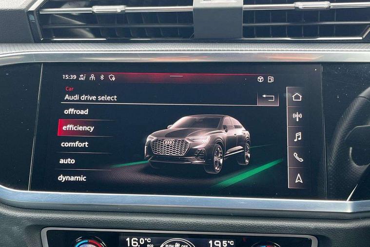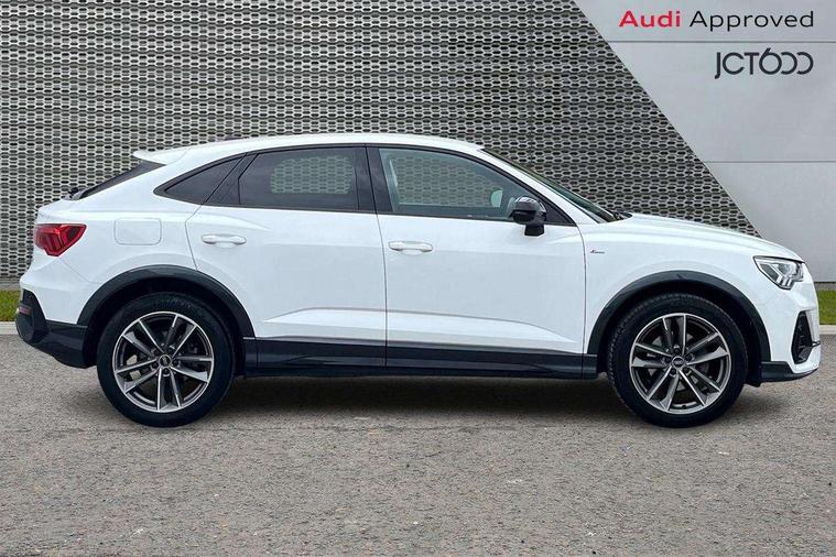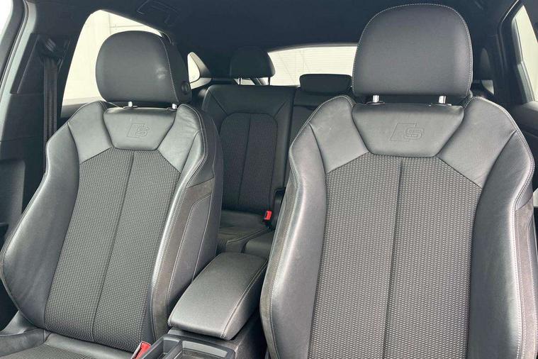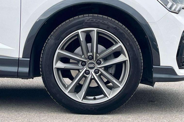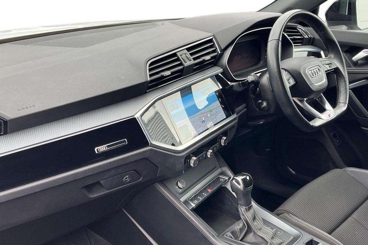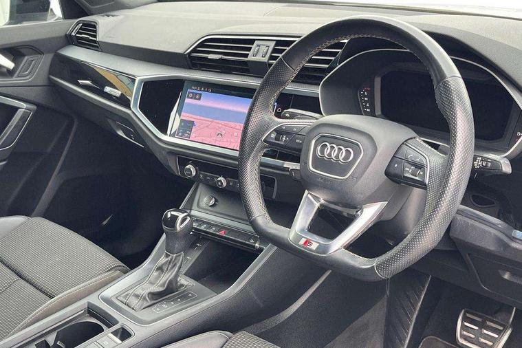 Audi connect safety and service (e-call), Audi drive select, Audi lane departure warning, Audi Virtual Cockpit - 10.25" display, Bluetooth interface, Camera based traffic sign recognition, MMI Navigation Plus with high resolution 10.1 inch touchscreen colour display, Power operated tailgate, Progressive steering, Service interval indicator, Smartphone interface includes wireless Apple carplay/Android Auto, Start stop system with recuperation, Voice control system with natural language interaction, 48V Mild hybrid technology, Sports suspension, 2 USB-C ports with charge and data functions, 6 passive loudspeakers, DAB digital radio module, Acoustic windscreen, Auto dimming frameless rear view mirror, Bumpers and underbody protection in contrasting manhattan grey paint finish, Diffuser grille in grained matt black, Diffuser trim in selenite silver, Electrically folding, adjustable and heated door mirrors with integrated LED side indicators and kerb view function for passenger side, Front and rear electric windows, Front fog lights, Front side air inlets in selenite silver, High gloss black finish B and C pillars, LED headlights with LED daytime running lights and dynamic rear indicator, LED rear lights, Privacy glass dark tinted rear and rear-side windows (from B-pillar backwards), Rain and light sensors, Rear underbody protection in matt black, 12V socket in rear centre console, 40:20:40 folding with manual adjustment for 60:40 forwards/backwards position and backrest angle, Adjustable rear seat bench/backrest with centre armrest and cupholder, Black cloth headlining, Dual zone electronic climate control, Front and rear black floor mats with contrast stitching, Front and rear headrests, Front and rear roof module including reading lights, Front centre armrest, Glove compartment lighting, Height and reach adjustable steering wheel, Illuminated door sill trims with S logo, ISOFIX child seat mounting for front passenger with airbag deactivation and outer rear seat including top tether attachment point for outer rear seats, Luggage compartment light, Manual front seats with height adjustment, Perforated leather gearknob, Stainless steel luggage compartment sill finisher, Stainless steel pedals, Black styling pack - Q3, Non smoking pack - Q3, 3x3 point rear seatbelts, 6 airbags - Driver, front passenger, curtain and side windows, Audi pre-sense front with pedestrain and cyclist recognition, Electrically operated child locks on rear doors, Electromechanical parking brake, Electronic stabilisation control including ABS, ASR and EDL, Hill descent control, Hill hold assist, Pre sense basic, Seatbelt monitoring, Tyre pressure warning, Warning triangle and first aid kit, Anti theft alarm, Anti theft wheel bolts, Remote central locking, Black dashboard, Detail dashboard around MMI touch colour display in glass look, black with surround in aluminium look, Leatherette door armrest, Piano black inlay, Tool kit, Tyre repair kit,