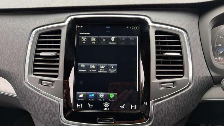 12.3" Active TFT crystal driver's instrument display, 9" centre console portrait touch screen, Adjustable steering wheel force, Bluetooth hands free telephone connection, Drive mode settings, Driver alert control with lane keeping aid, Handsfree power tailgate opening and closing, Intellisafe assist - Adaptive cruise control with pilot assist, Oncoming Lane Mitigation, Remote engine start, Sensus navigation with European mapping and traffic information, Service interval indicator, Speed limiter, Speed sensitive steering, Trip computer, Voice activated control for key functions, Volvo on call, 8 speed automatic transmission with start/stop + manual change functions, All wheel drive system, DAB Radio (Digital Audio Broadcasting), Steering wheel audio controls, Steering wheel remote infotainment controls, Adaptive brake lights with high level LED brake lights, Auto dimming interior + exterior mirrors, Automatic headlight levelling system, Automatic LED Headlights + Active high beam incorporating daytime running lights, Body colour bumpers, Chrome door handles deco strip and window surround, Colour coordinated auto folding and heated power door mirrors, Dual integrated exhaust pipes, Front and rear power windows, Home safe and approach lighting, Integrated roof rails in silver, LED front fog lights, Piano black waterfall front grille, Puddle lights, Rain sensor with automatic windscreen wiper activation, Rear wash/wipe with intermittent wipe setting, Roof antenna, Roof spoiler, Visible VIN plate, 12V socket front tunnel console, rear passenger compartment and cargo area, 2nd Row centre armrest with storage and cupholders, 3 spoke leather steering wheel and illuminated gear knob with chrome trim, B Pillar ventilation, Bright metal luggage threshold, Cargo divider with grocery bag holder, Centre console cupholders and storage, Driver's side lower dashboard storage compartment, Floor mats, Front and rear aluminium tread plates, Front and rear reading lights, Theatre lighting and centre armrest storage illumination, Front footwell and side step illumination, Front headrests, Heated front seats, Height/reach adjustable steering column, Illuminated luggage compartment, Illuminated vanity mirrors + ticket holder, Illumination lockable glovebox compartment, Leather faced upholstery, Load protection net, Outboard armrest with cupholder and storage for third row passengers, Power driver seat with lumbar support and memory for seat and exterior door mirrors, Power folding 2nd row headrests, Power passenger seat with lumbar support, Rear headrests, Semi automatic load cover, Single front passenger seat, Three 2nd row individual folding passenger seats with fore/aft adjustment, Two 3rd row individual folding passenger seats, Underfloor cargo storage, 7 three point seatbelts, City safety includes pedestrian, cyclist and large animal detection and front collision warning with full auto brake, Drivers knee airbag, Dual stage driver/passenger airbags, First aid kit, Front seats SIPS airbags, Hill descent control, Hill start assist, IC (Inflatable Curtains) - Full Length, Passenger airbag cut-off switch, Power parking brake with auto hold function, Run off Road Mitigation, Run off Road Protection, Seatbelt reminder and pretensioners for all seats, SIPS (Side Impact Protection System), Slippery road and hazard light alert, Stability and Traction Control with Spin control, Engine Drag Control and Corner Traction Control, Tyre pressure monitoring system, Vehicle deceleration control with Anti-lock Brake System, Electronic Brake Distribution and Emergency Brake Assist, Warning triangle, WHIPS whiplash protection system - front, Anti-theft alarm including immobiliser/volume sensor + level sensor, Care key with user defined top speed, Key integrated remote control central locking + fuel flap with deadlocking system and auto open/close power windows, Keyless drive (includes keyless entry and keyless start) with remote tag, Locking wheel nuts, Private locking for glovebox and tailgate, Iron ore inlays, Tempa spare wheel and jack,