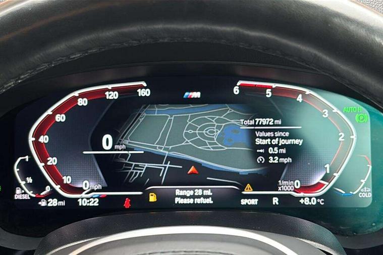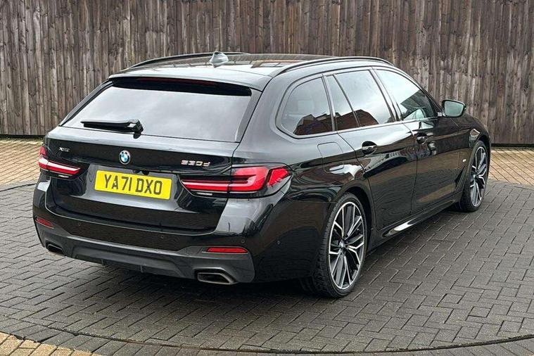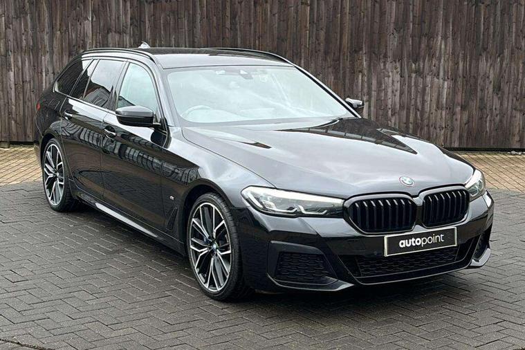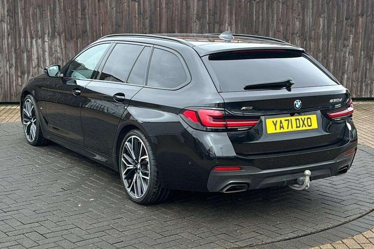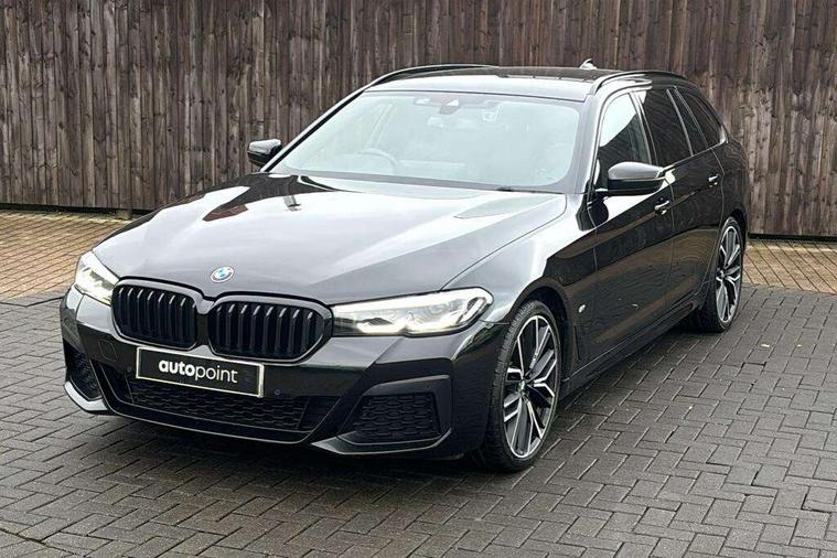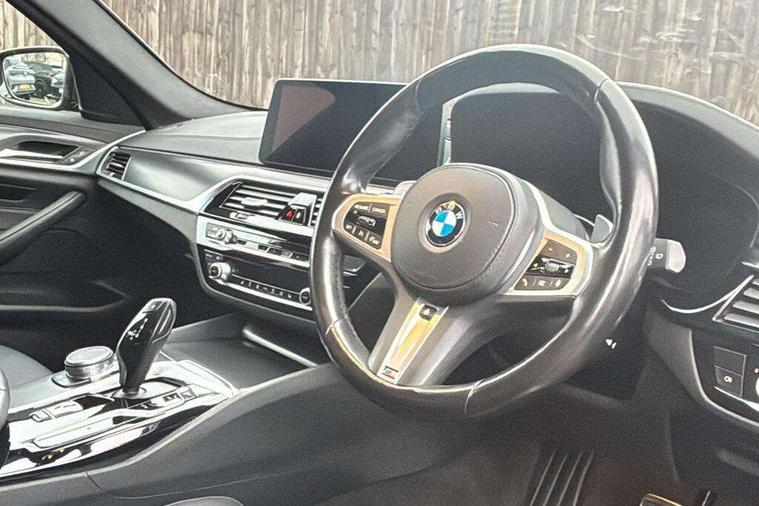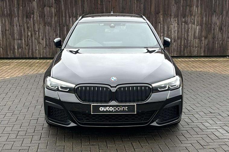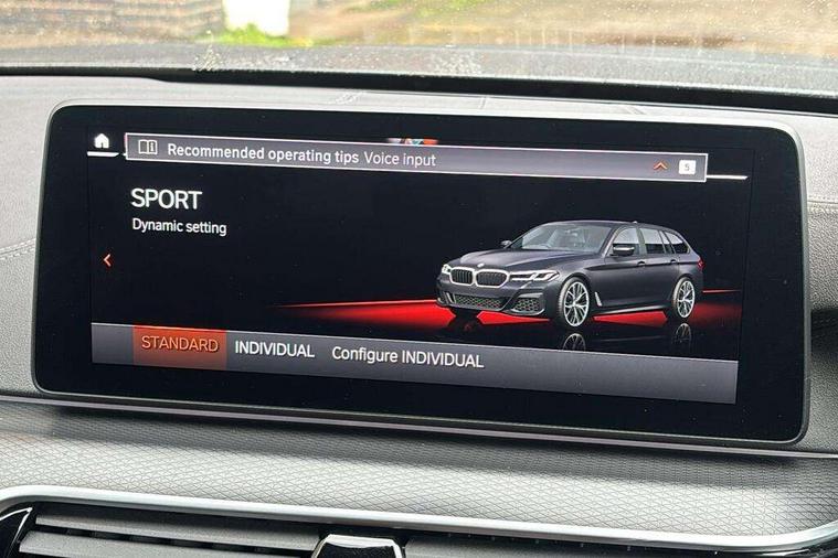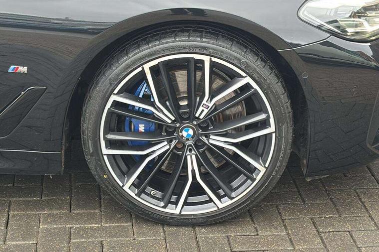 32GB hard disc drive (HDD) memory, Active Guard, BMW Live Cockpit Professional sat nav system with 12.3" instrument display and high resolution control display, BMW Teleservices, Brake pad wear indicator, Cruise control with brake assist, Driving experience switch, eCall emergency call system, Electric boot lid - electrically opening/closing rear tailgate, Electric Power Steering (EPS) with Servotronic, iDrive controller with shortcut buttons, Intelligent emergency call, Multifunctional instrument panel, Oil sensor for level and grade, On board computer inc. average speed, fuel consumption, liquid crystal Info display, journey computer, outside temperature display, personal profile, On-board diagnosis - OBD, Powered by Operating System 7.0, Service interval indicator, Speed limiting function, Stop/start button, 48V Mild hybrid technology, Diesel particulate filter, Drive performance control with ECO PRO comfort + sport mode, Engine cover with twin turbo designation, M sport suspension, Steptronic transmission with gearshift paddles on steering wheel, DAB Digital radio, Favourite buttons, Acoustic glazing, All round anti-corrosion system, Automatic windscreen wipers and automatic headlight, Automatically dimming rear view mirror, BMW Individual high gloss shadow line includes exterior mirror frame, window frame surround, B pillar finish, air breather in high gloss black, Body colour door handles, Body coloured bumpers, Door handle illumination, Dynamic brake lights with LED technology, Electric front and rear windows with fingertip open/close + anti-trap facility and comfort closing function, Electrically adjustable and heated exterior mirrors includes integrated direction indicators and automatic parking function, Folding exterior side mirror with auto- dimming, Follow me home headlight function, Heated windscreen washer jets, High gloss black active air stream kidney grille, High gloss shadow line roof rails, Independent opening for tailgate window, LED daytime running lights, LED third brake light, M designation on front side panels, left and right in chrome, Rear side wing doors, Rear wiper, Trapezoidal visible exhaust tailpipes, xDrive designation on tailgate, 12V power socket in front and rear, 3 seat bench in 2nd row, 40/20/40 split folding rear seats with additional mechanism in luggage compartment, Anthracite headlining, Armrest - front and rear integrated door trim, centre console includes storage compartment, rear centre includes 2 cupholders, Child seat ISOFIX attachment with rear outer seats includes top tether, Cup holders (2 front and 2 rear), Front and rear footwell lights, Front reading lights, Height and length adjustable steering column and activation via lateral lever on the steering column, Lockable glove compartment with light, M door sill finishers, M specific pedals, M specific velour floor mats, Multifunction controls for leather steering wheel, Rear headrests, Retractable luggage compartment dividing net, Single front passenger seat, Three spoke sport M leather steering wheel, Ambient lighting pack - 5 Series, Connected package professional - 5 Series, M Aerodynamic pack - 5 Series, Parking assistant pack - 5 Series, Airbags - driver/front passenger, rear and side, first and second row seats head airbags, front passenger seat airbag deactivation, Anti-lock braking system (ABS), Automatic Stability Control (ASC), Brake assist function, Brake energy regeneration, Cornering brake control (CBC), Crash sensor activating central locking release, hazard warning lights, fuel cut off and interior lighting, Deformation zones - front and rear with door reinforcements and bumpers up to 2.5 mph, DSC - Dynamic Stability Control, Dynamic brake control, Dynamic Traction Control - DTC, Electromechanical parking brake with automatic drive away release and auto hold function, Electronic brake force distribution, Engine drag torque control, Front and rear brake discs with interior ventilation, Front head restraints with anti-whiplash, Hill start assist, M Sport brakes in high gloss blue painted brake callipers with M designation, Mechanical child proof lock on rear doors, Passive protection for pedestrians, Rear door child safety locks, Side impact protection, Three point seat belts for all four seats, Two tone horn, Tyre pressure indicator, Warning triangle and first aid kit, Alarm system (Thatcham 1) with remote control and electronic engine immobiliser, Locking wheel bolts,