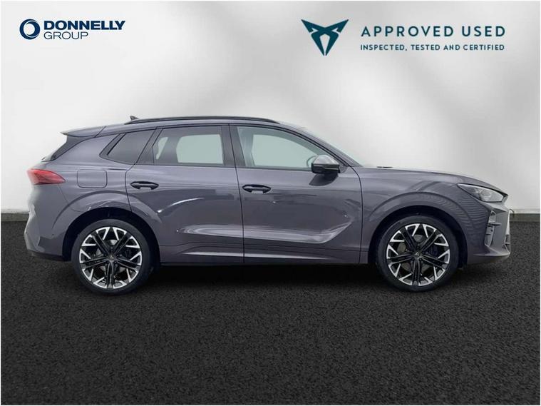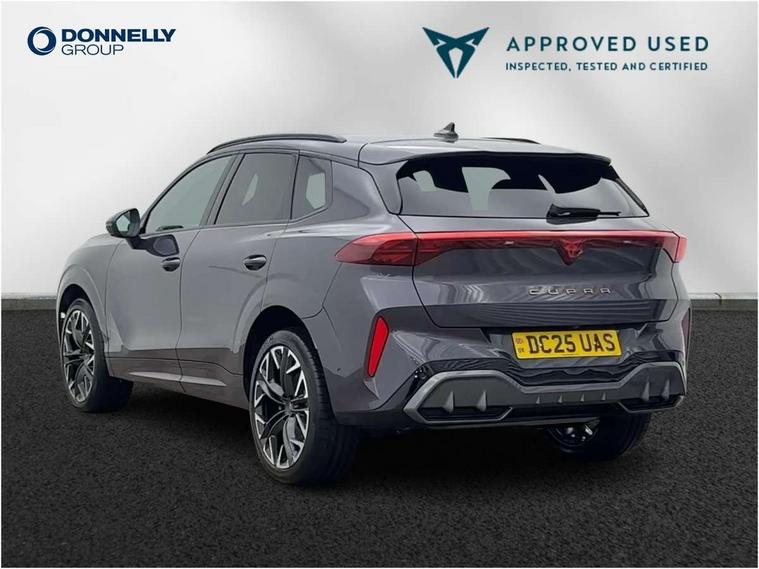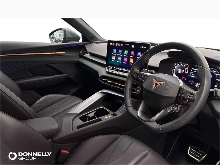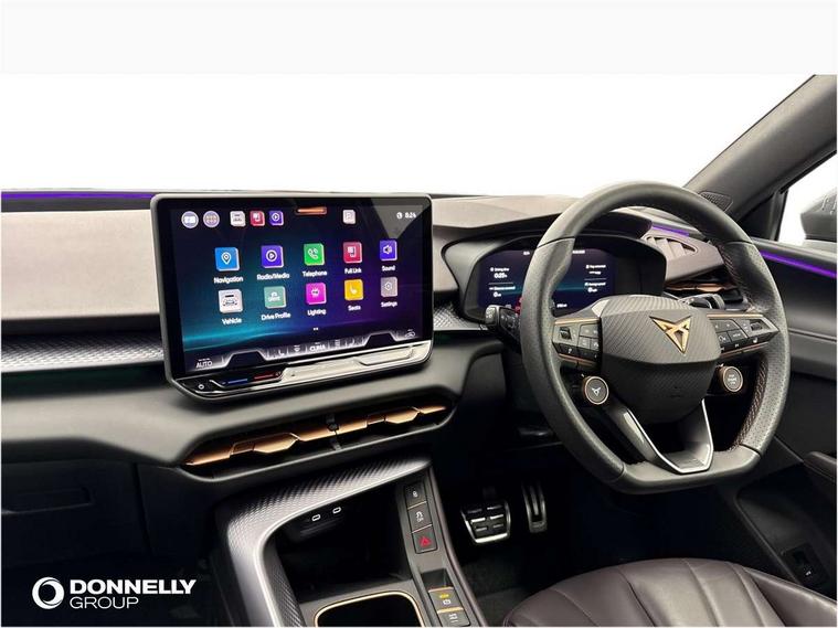 10.25" digital cockpit and configurable dashboard, Adaptive cruise control with follow-to-stop and speed limiter, Advanced driver alert system, Advanced lane assist with semi-automatic vehicle control in a medical emergency and traffic jam assist, Driving profile selection (DCC- Comfort, performance, CUPRA, Individual, Dynamic road sign display, E-call, Electric tailgate with virtual pedal, Emergency steering support with turn assist, Front and rear parking sensors, Front assist (Forward collision warning with automatic braking) with multifunction camera and front cross traffic assist, Head up Display, Intelligent park assist, Media system with Nav - 12.9" touch display, voice control, full link phone (wired/wireless), DAB and Steering wheel mounted controls, Rear traffic assist, Side and exit assist, Speed sensitive power steering, Start/stop system with regenerative braking, Top view camera (front camera, rear camera, 2 side cameras), Wireless phone charger, Adaptive chassis control with a 2-valve shock absorber, Auto dimming rear view mirror, Black roof rails, CUPRA 3D rear lights with ceremony & swiping indicator and illuminated logo, Dark tinted rear windows, Daytime running lights with automatic headlight control and Coming and Leaving home function, Door mirrors with memory function and lowing function on passenger mirror, Electric front/rear windows, Electrically adjustable, heated and folding door mirrors, Front fog lamps with cornering function, Heat reflecting windscreen, High beam assist, Rain sensing wipers, Rear fog light on one side, back up light on both sides, Rear side wing doors, Rear wash/wipe, Third brake light, Welcome lights (within exterior mirror housing), 3 seat bench in 2nd row, Black roof lining, Cupra sports pedals, Driver seat memory function, Electrically adjustable front seats including lumbar support, Four x USB Type C ports (2 in front and 2 in rear), Front and rear head restraints, Front and rear reading lights X 4, Front centre armrest, Heated front seats, Heated leather wrapped multi function sports steering wheel with tiptronic, Illuminated interior front door sills, Isofix, Leather upholstery, Operating voltage 12V, Single front passenger seat, Smart wraparound interior lighting, Sunvisors with illuminated mirror, Three zone climate control with control panel in rear, Unsplit rear seat bench, split folding backrest, with centre armrest, Variable luggage/load compartment floor, Pure performance pack - Terramar, 3 point seatbelts in front with pretensioner and electric height adjustment, 3 point seatbelts on all rear seats, Brake control system - ESC and brake booster, Child proof door locks, Driver and front passenger airbags, Electronic parking brake, Front and rear disc brakes, Front interaction airbag, Front passenger airbag deactivation switch, Front side airbags with curtain airbags, Pre-crash front and rear seat belt tensioner, window closure and hazard lights, Tyre pressure monitoring system, Visual and acoustic seat belt reminder, electric contact in front and rear, Anti theft alarm, Keyless locking and starting system with keyless access, Locking wheel bolts, Black decorative trims, Chrome interior detailing, Performance tyres in polmer coating, Tool kit,