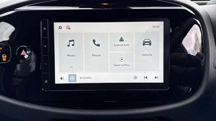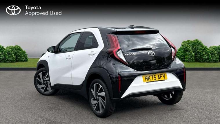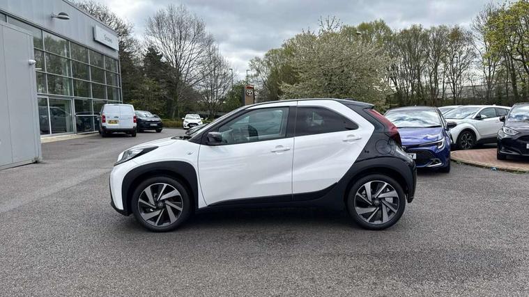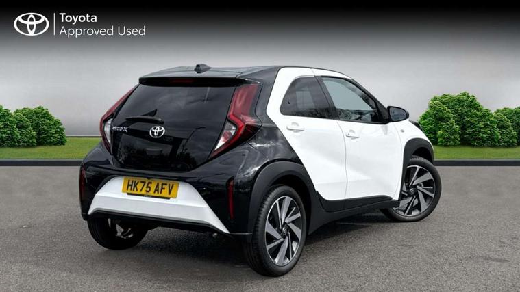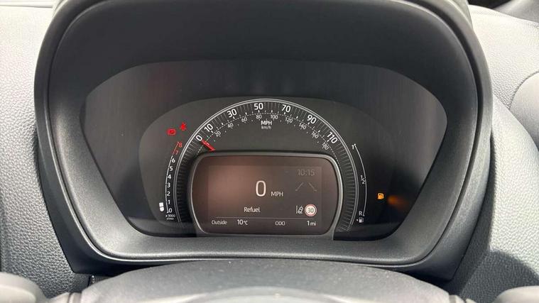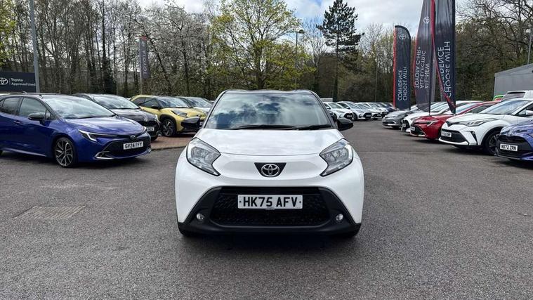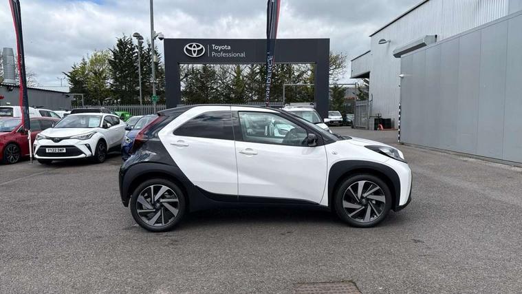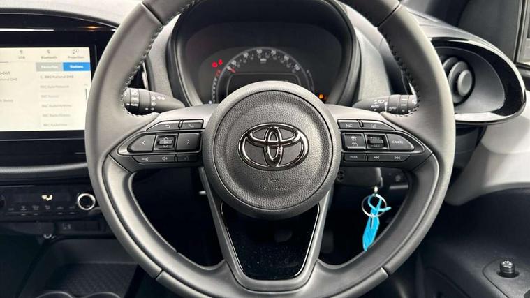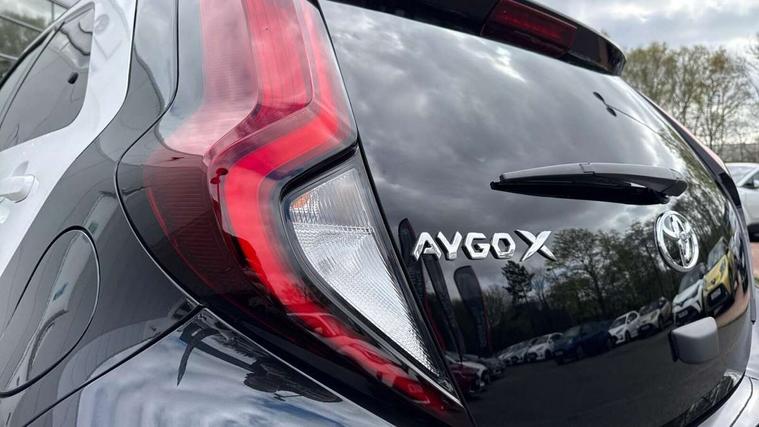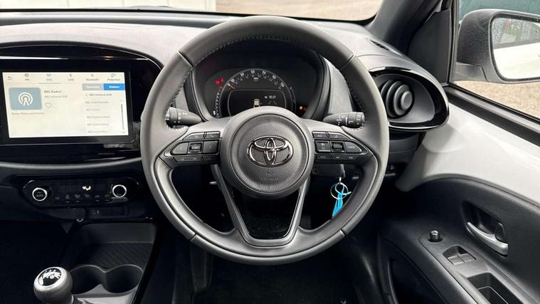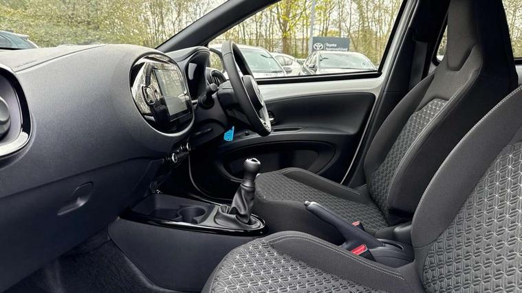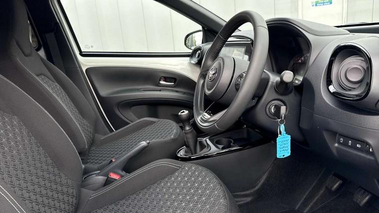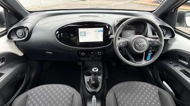 4.2" TFT colour screen, Adjustable speed limiter, Analogue speedometer, Bluetooth connectivity, Digital tachograph, Driver attention alert system, eCall emergency call system, Electric power steering, Intersection turn assist, Key reminder warning, Noise reduction kit, Pre collision system with emergency steering assist, Reversing camera with static guide lines, Smart phone integration with Apple car play/Android Auto, Speed limit display, Start and stop, Vehicle Stability Control (VSC), 4 speakers, 9" HD multimedia display touch screen with Toyota smart connect, DAB digital audio broadcast, USB connector, Auto headlights, Auto wipers, Automatic headlights cut-off, Bicycle towing hook, Black contrast roof, Black side protection mouldings, Black wheel arch mouldings, Body colour door handles, Body coloured front bumper, Boot door scuff plate, Eclipse black rear bumper, Electric heated door mirrors, Follow me home headlights, Front fog lights, Front power windows, Gloss black door mirrors, Gloss black upper front grille, Headlight cut-off reminder, LED daytime running lights, LED front light guide, LED High mounted stop lamp, Manual day/night rear view mirror, Manual headlight levelling, Pagoda roof, Power adjustable door mirrors, Power back door, Privacy glass, Projector halogen headlights, Rain sensor, Rear combination lights LED bulb type, Rear side wing doors, Rear windscreen defogger, Rear windscreen wiper, Short antenna, Variable intermittent windscreen wipers, 12v power outlet - front, 2 seat bench in 2nd row, 3 spoke leather steering wheel, 50/50 split folding rear seat, Adhesive roof headlining, Adjustable speed limiter switch on steering wheel, Audio and telephone switches on steering wheel, Auto air conditioning, Black insert on steering wheel, Black roof lining, Boot light, Centre room light, Chrome interior door handles, Chrome surround on air conditioning buttons, Clean air filter, Console box storage in body color, Fabric upholstery, Floor mats, Front and rear cup holders, Front head rest deco art, Front head restraints, Height adjustable driver seat, Intelligent adaptive cruise control switch on steering wheel, ISOFIX child restraint system on rear seats, Lane departure alert switch on steering wheel, Leather gearshift knob, Manual tilt steering wheel, Manually reclining and sliding driver seat, Manually reclining and sliding front passenger seat, Multimedia switches on steering wheel, Pollen filter, Rear door pockets, Rear head restraints, Satin silver insert on gear shift knob, Single compartment glovebox with lights, Single front passenger seat, Soft tonneau cover, Sun visors with mirror on driver and passenger side, Voice recognition switch on steering wheel, Toyota safety sense pack - Aygo X, Anti lock braking system + Electronic brake force distribution, Child safety door lock, Emergency brake light signal (EBS), Hill start assist control (HAC), Passenger airbag on/off switch, Seat belt reminder for front and rear seats, Supplement restraints system (SRS) - 6 airbags, Traction control, Tyre pressure warning system, Immobiliser, Remote power door locks, Black wheel centre caps, Tyre repair kit,