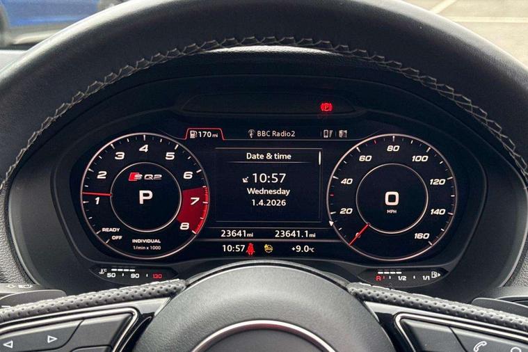 Audi connect navigation and infotainment includes innovative services, Audi connect remote and control connects your vehicle to your smartphone, Audi drive select - Power steering assistance + engine + gearshift, Audi drive select with efficiency, Audi smartphone interface, Audi virtual cockpit, Automatic start/stop system with recuperation, Bluetooth interface includes bluetooth audio streaming, Cruise control, E-call, Front and rear parking sensors, Instrument dials with S logo, MMI navigation plus with MMI touch, Power operated tailgate, Progressive steering, Rear view camera, Quattro all wheel drive, S sport suspension lowered by 20mm, 2 x SDXC card reader, 6 passive loudspeakers, DAB Digital radio, DVD Drive, Auto dimming rear view mirror, Black Audi rings and black badging, Black exhaust tailpipes, Black window trims, Contrast bumper in grey, Electrically adjustable, folding, auto dimming and heated door mirrors with integrated LED side indicators, Enhanced rear spoiler, Front windscreen with grey tinted sunband, LED daytime running lights, LED headlights with LED rear lights, LED third brake light, Privacy glass - dark tinted rear and rear side windows from B-pillar backwards, Quattro decals on rear side flank, Rear side wing doors, Rear wiper, S design radiator grille with horizontal struts and SQ2 logo, Variable front intermittent wipers, Wheel arch trims in manhattan grey, 12V socket in front, 3 seat bench in 2nd row, 3 spoke flat bottom multi-fun leather sport steering with gear shift paddle and S badge grip in perforated leather with contrast stitch in rock grey, 4-way electric lumbar support for front seats including seat height adjustment for both front seat, 60/40 split folding rear seat bench, Black cloth headlining, Dual zone electronic climate control, Front and rear head restraints, Front centre armrest, Front/rear floor mats, Height/reach adjust steering wheel, Illuminated door sill trims with S logo, ISOFIX child seat mounting in front passenger and rear outer seats, Single front passenger seat, Stainless steel pedals, Black styling pack - SQ2, Extended interior upholstery pack - SQ2, 3x3 point rear seatbelts, 6 airbags - Front, curtain and front side airbags, Brake calipers painted black with S logo at the front, Electromechanical parking brake, Electronic stabilisation control including ABS, ASR and EDL, Front passenger airbag deactivation, Hill hold assist, Pre-sense front with pedestrian recognition, S model enhanced braking system, Seatbelt monitoring, Tyre pressure warning light, Warning triangle and first aid kit, Anti theft alarm, Anti theft wheel bolts, Electronically operated child locks, Remote central door locking, Aluminium interior element, Matt brushed aluminium trim inlays, Tool kit,