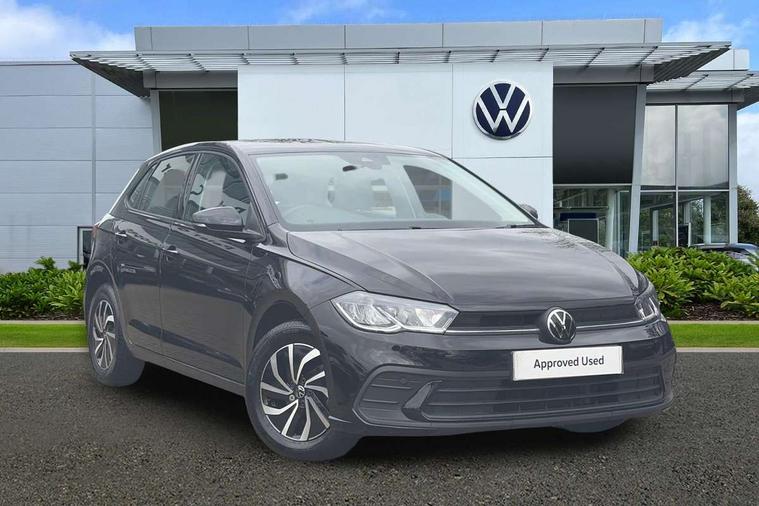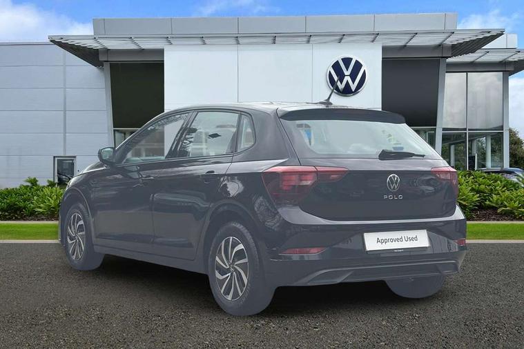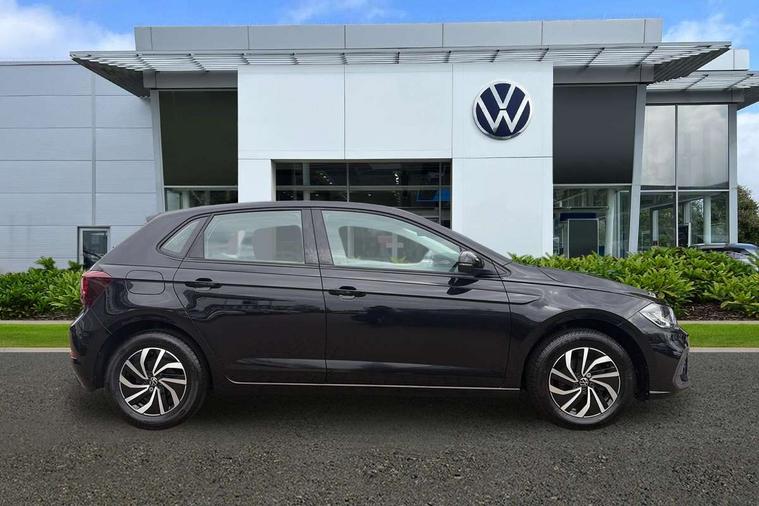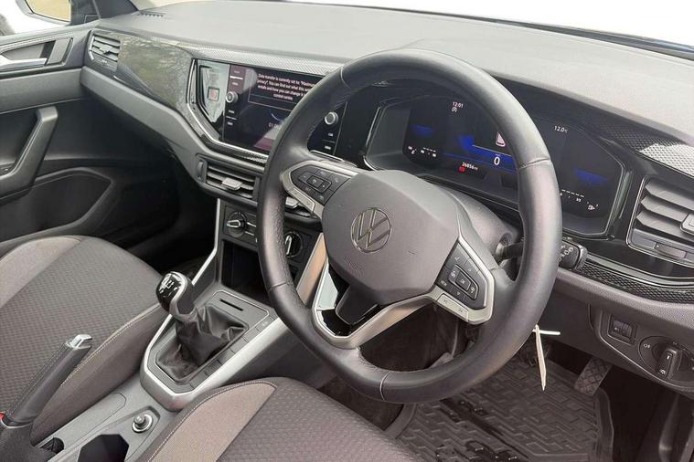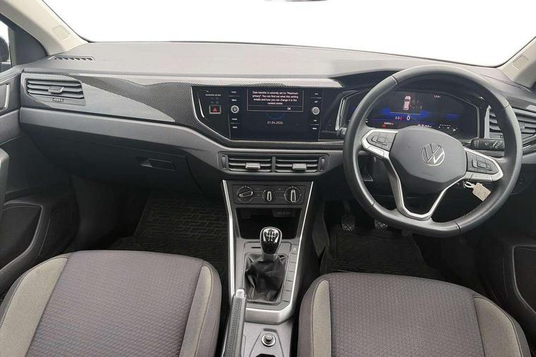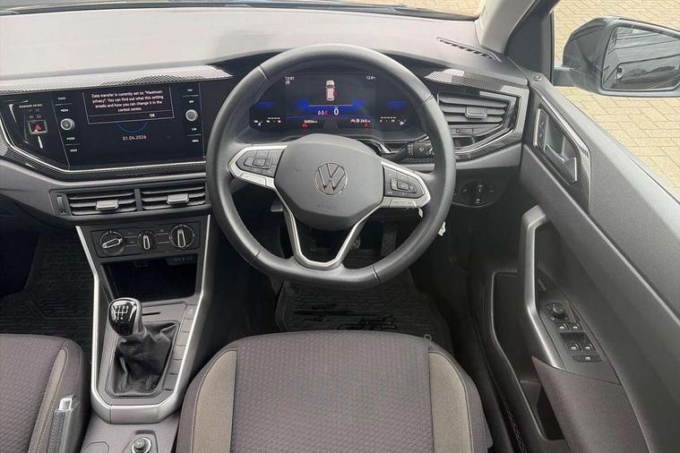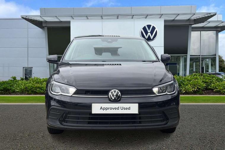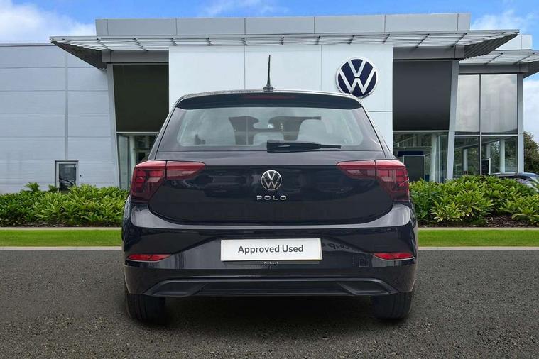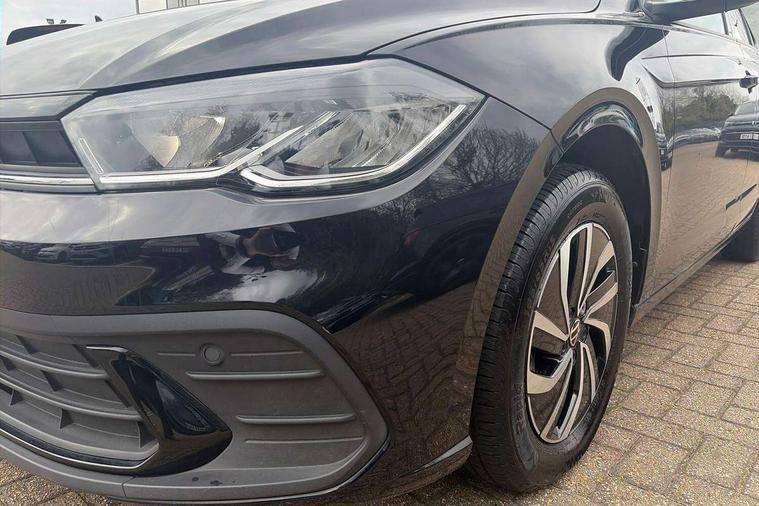 Adaptive cruise control without follow-to-stop and speed limiter, Advanced driver attention and drowsiness monitor, Bluetooth mobile phone interface, Dynamic road sign display, Emergency call service, Power assisted speed sensitive steering, Preparation for navigation system with media and internet package, Preparation for We connect and We connect plus, Speedo and rev counter, electronic odometer, trip, service interval display and exterior temperature gauge, Standard rear axle, Travel Assist - Lane keeping system and traffic jam assist, Travel assist including emergency assist, Trip computer, Warning signal and warning light for front and rear seatbelts not fastened, Washer fluid level indicator, Wireless app connect, Front wheel drive, Rear shock absorpion, Start-stop system with battery regeneration (recuperation - energy recovery during braking), DAB Digital radio, Diversity antenna for FM reception, Front and rear 6 speakers, Automatic dimming interior rear view mirror, Automatic headlight control with LED separate daytime running lights with coming/leaving home function, Body colour bumpers with chrome inserts, Body colour door handles, Body colour door mirrors, Electric front windows, Engine badge deletion, Headlight range adjustment, Heat insulating and laminated safety glass windshield, Heat insulating darkened glass in side and rear windows, Heat insulating glass windscreen, LED Headlights, LED rear combination lamps, Power folding adjustable/heated exterior mirrors and front passenger exterior mirror lowering function, Rain sensor, Rear electric windows, Rear fog light, Rear side wing doors, Rear windscreen washer and wiper with interval delay, Third brake light, 12V power socket in centre console, 2 front and 2 rear reading lights with switch off delay and dimmer, 2 USB-C ports in the front, 2 USB-C charging sockets on the center console in the rear, 3 rear head restraints, 60/40 split folding rear seat and rear seat bench not split, Ceramique roof lining, Chrome plated radiator grille inserts, air vent surrounds and light switch surrounds, Door and side trim panel, Driver and front passenger seat height adjustment, Driver/passenger sunvisors with illuminated vanity mirrors, Front centre armrest, Front seat backrest storage pockets, Front standard seats, Handbrake lever handle in leather, Hartley/Thomas cloth upholstery, Headliner in recycled material, Isofix child seat preparation easy-fit (for two outer rear seats, and front passenger seat) compatible with I-size, Leather trimmed gear knob, Luggage compartment cover, Luggage compartment lighting, Removable luggage compartment floor, Single front passenger seat, Standard climatic zones, Standard pedal cluster, Three spoke leather wrapped multifunction steering wheel, Light and vision pack - Polo, 3 point height adj front seatbelts + pretensioners, 3x3 point rear seatbelts, ABS, Driver and front passenger airbag with front passenger airbag deactivation, Drivers and front passengers safety optimised head restraints, ESC (Electronic stability control) + EDL (Electronic Differntial lock) and ASR (Traction control), Extended and predictive pedestrian/ cyclist protection, Front assist with autonomous emergency braking (for Adaptive Cruise Control ACC up to 130 mph), Front curtain and side airbags with center airbag, Front disc brakes, Hill hold control, Manual child lock in rear doors, Rear drum brakes, Single tone horn, Tyre pressure loss indicator, Alarm with interior protection, Anti-theft alarm system with interior monitoring, backup horn, and towing protection, Anti-theft wheel bolts, Electronic engine immobiliser, Lava stone black gloss/matt decorative inserts in dash and front door panels, Low rolling resistance tyres,