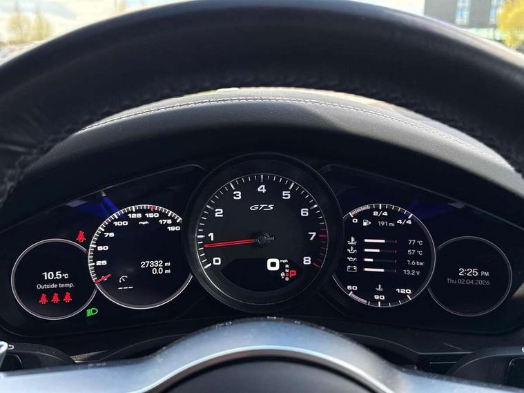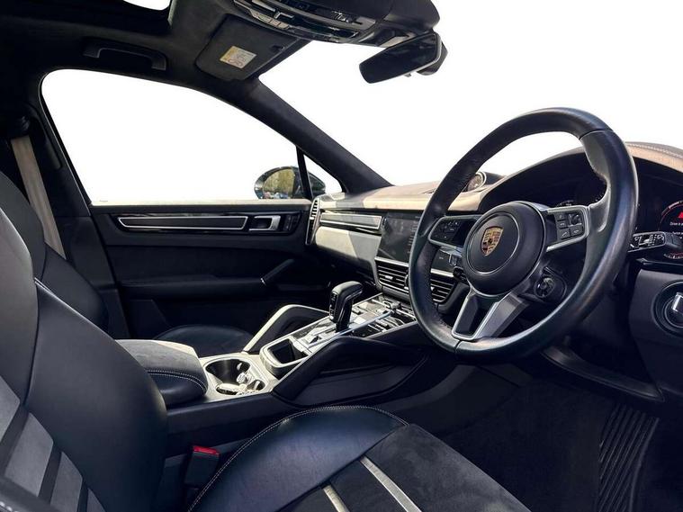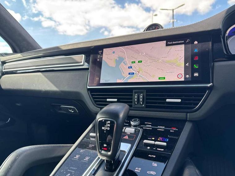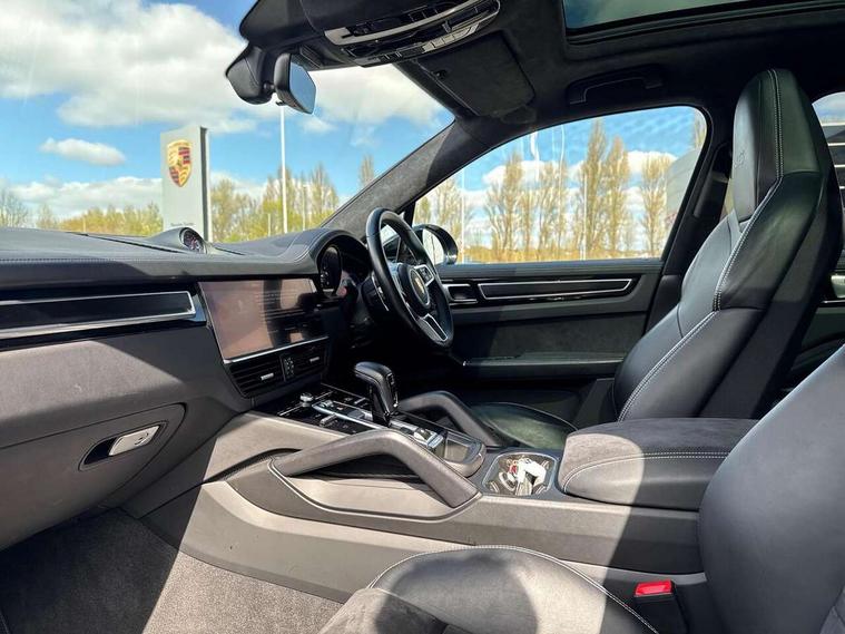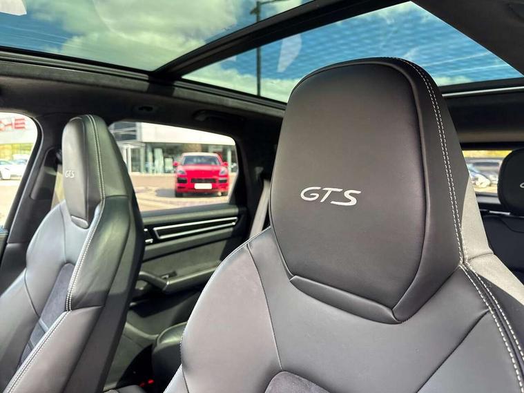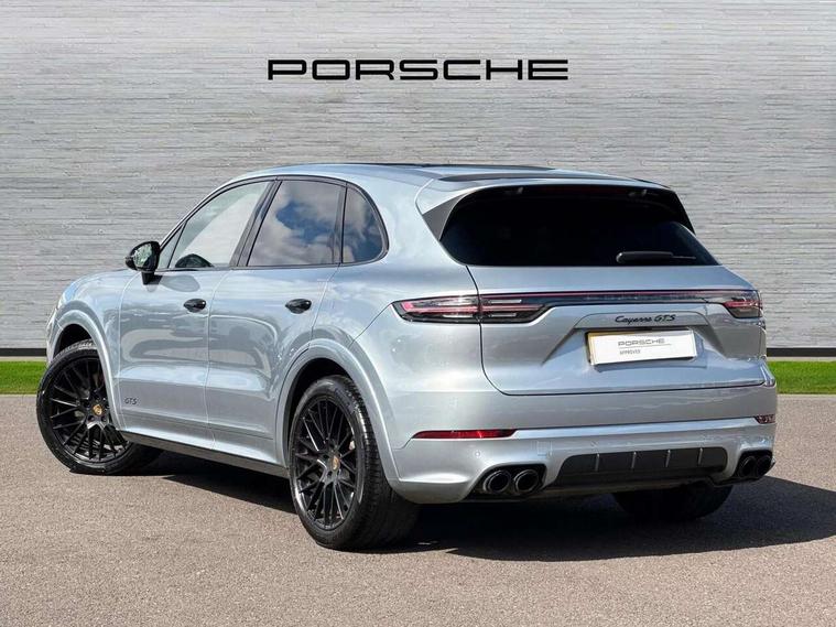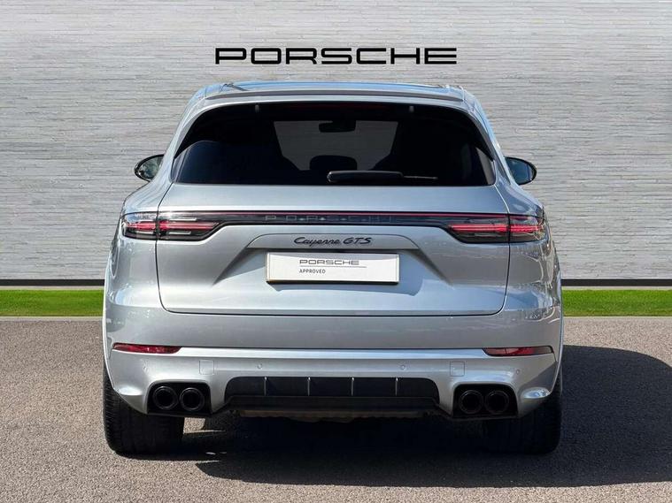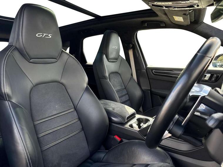 Android Auto, Apple car play, Brake pad wear indicator, Central analogue rev counter with black dial face and GTS logo, Driver personalisation for climate, audio and communication, assistance systems and other customisable car systems, Emergency call service, High resolution 12.3-inch touchscreen display in full HD resolution, Individual mode for individual selection of vehicle drive settings, Instrument cluster with two high-resolution displays, Mobile phone preparation with Bluetooth interface for telephone and music, Porsche Communication Management (PCM) including online navigation module, mobile phone preparation, audio interfaces and voice control system, Power tailgate, Vehicle electrical system recuperation, Warn and brake assist including pedestrian protection, 8 Speed Tiptronic S transmission with auto Start-Stop and coasting function, 90 litre fuel tank, Adaptive cylinder control, Aluminium cylinder heads and engine block, Direct fuel injection (DFI) with central injector position, Front and rear aluminium multi link axles, Gasoline particulate filter, Porsche Torque Vectoring Plus (PTV Plus), Sport mode, Twin turbo charged with twin scroll turbochargers, VarioCam, Water cooled with thermal management, AM radio, Digital radio, Two USB charge ports in rear compartment, Two USB charging and connectivity ports in the front centre console storage compartment, Active air intake flaps, Automatic headlight activation including welcome home functionality, Bumper system with high strength cross members and two deformation elements + Two receptacles with screw threads towing lug + onboard tool kit, Door lower cladding trim in exterior colour, Electric windows + anti trap protection + one touch open/close drivers side, Electrically adjustable, folding and heated exterior mirrors, aspherical on drivers side including courtesy lights, Exclusive tinted LED tail lights with three dimensional lighting graphic including light strip and integrated four point brake lights, Extensive aerodynamic underbody protection, Four point signature LED daytime running lights, Front end with integrated air intakes and airblades for the side air intakes, Front light modules including position lights and direction indicators in LED light guide technology, Front windscreen wipers with two speeds, intermittent wipe and rain sensor, Fully galvanised steel / aluminium hybrid lightweight bodyshell and Aluminium bonnet, tailgate, doors, side panels, roof and front wings, Gloss black side window trims, Heated rear window with automatic switch off, LED High level third brake light integrated into roof spoiler, Porsche logo and cayenne GTS model designation on tailgate in matt black, PORSCHE' lettering integrated in tailgate strip, Rear apron lower cladding painted in exterior colour, Rear side wing doors, Rear window wiper with intermittent function and washer jet, Sports exhaust system including sports tailpipes in black, Tailgate with integrated roof spoiler in exterior colour, Two twin exhaust tailpipes, left and right and brushed stainless steel finish, 3 seat bench in 2nd row, Alcantara roof lining, B-pillar clothes hooks on driver and passenger's side, Charge air cooling, Double sun visors for driver and front passenger, Driver/passenger sunvisors and vanity mirrors, Elevated centre console with handles, Five seats rear seat system with two comfort outer seats and a central seat, Front and rear bottle holders in door panels, Front centre armrest, GTS logo on door sills front, left and right in black, Integrated front headrests/2-way headrests rear, Isofix fastening system for child seats on outer rear seats, LED interior light with switchoff delay function, footwell + glove compartment light, ashtray + ignition lock illumination, front + rear reading light, Manual height adjust for driver and front passenger seat belt, Particle/pollen filter with active carbon filter, Rear seat split folding design 40:20:40, Fold out centre armrest with integrated cup holder, manual fore/after adjust and backrest angle adjust, Retractable roller luggage compartment cover in detachable cassette, Sideskirts in black plastic, Single front passenger seat, Stainless steel pedals, Storage compartments - Cooled glove compartment, front centre console, door and map pockets on front seat backrests + side luggage compartment, Three 12V power sockets - front below the glove compartment, centre console and at side of luggage compartment, Two integrated cup holders in front and rear with variable diameter, Sport design package - Cayenne, 3-point automatic seatbelts with front and outer rear seats pretensioners and front force limiter with 3-point automatic seatbelt for rear centre seat, 4 piston aluminium monobloc fixed caliper brakes at rear and internally vented brake discs, 6-piston aluminium monobloc fixed caliper brakes at front, internally vented brake discs, Active bonnet, Auto hold function, Brake discs with diameter 390mm at front 358mm at rear, Curtain airbags along roof frame and side glazing from the A-pillar to the C-pillar, Distance warning, Electronic parking brake, Front passenger airbag deactivation function for front seat mounting of child seat, Front side airbags integrated into seat, Full size driver and front passenger airbags, Knee driver and passenger airbags, Mounting points on passenger seat for ISOFIX child seat mounting system, Multi-Collision braking, Porsche hill control (PHC), PTM Porsche Traction Management active all-wheel drive with an electronically variable, map-controlled multi-plate clutch, ABD and anti-slip regulation, Rear door child safety locks, Rollover detection for activation of curtain airbags and seat belt pretensioners, Seat belt warning system for driver and front passenger and rear seat system, Side impact protection in doors, Tyre pressure monitoring system, Vehicle stability system, Porsche stability management (PSM) including ABS, ASR, ABD, MSR and trailer stability management, Alarm system