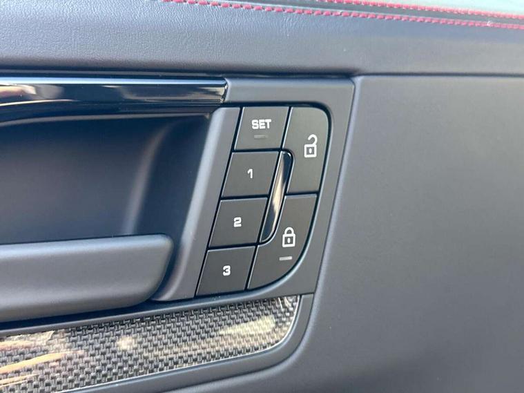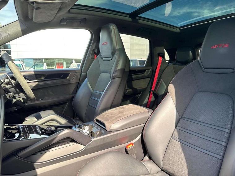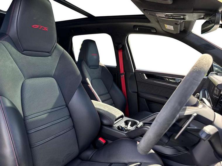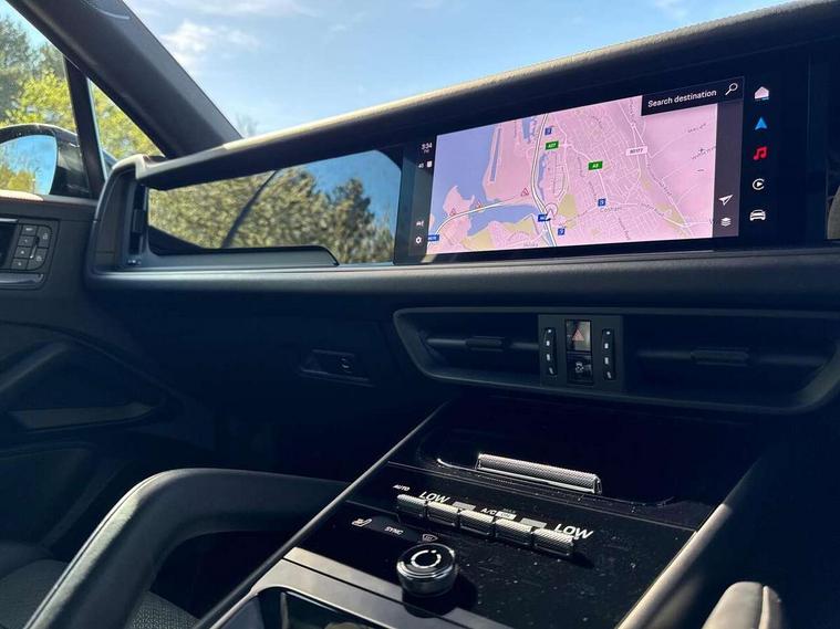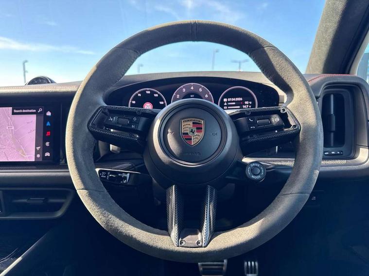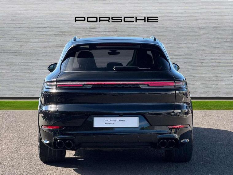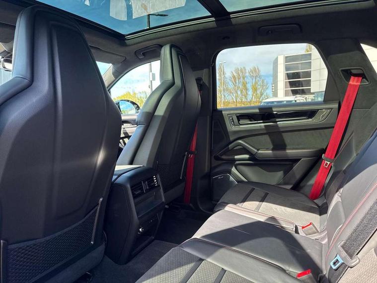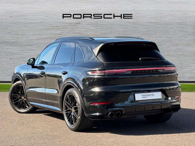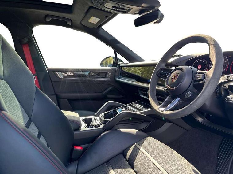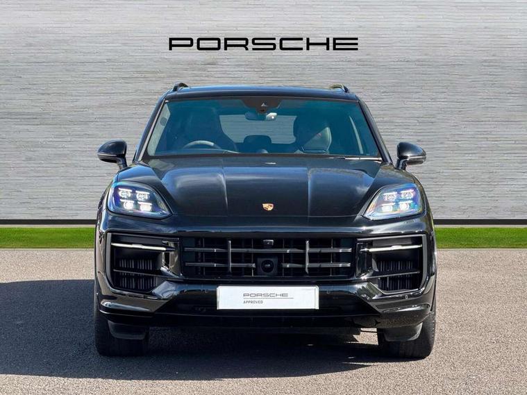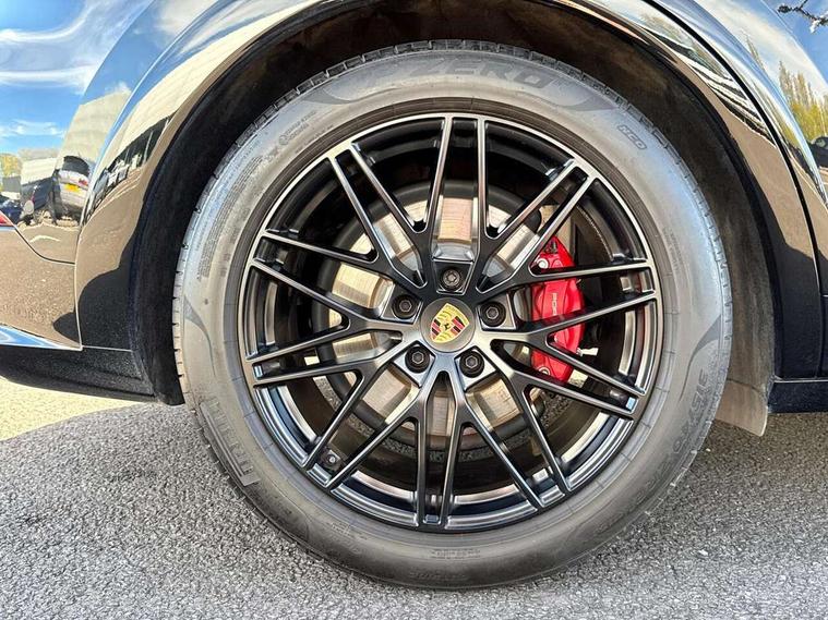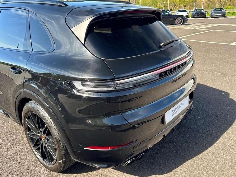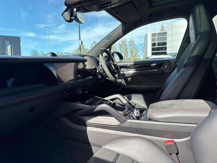 Active parking assist and 360 camera, Active speed limit assist, Android Auto, Apple car play, Brake pad wear indicator, Driver personalisation for climate, audio and communication, assistance systems and other customisable car systems, Emergency call service, High resolution 12.3-inch touchscreen display in full HD resolution, Individual mode for individual selection of vehicle drive settings, Instrument cluster with 12.6" curved display, Instrument cluster with two high-resolution displays, Mobile phone preparation with Bluetooth interface for telephone and music, Mode switch, Porsche Communication Management (PCM) including online navigation module, mobile phone preparation, audio interfaces and voice control system, Power steering plus, Power tailgate with gesture control, Reversible occupant protection measures, Smartphone integration, Speed limit indicator, Vehicle electrical system recuperation, Warn and brake assist including pedestrian protection, 8 speed automatic gearbox, 90 litre fuel tank, Adaptive air suspension with levelling system and height adjustment with Porsche Active Suspension Management (PASM) and lowering of 10 mm, Aluminium cylinder heads and engine block, Direct fuel injection (DFI) with central injector position, Gasoline particulate filter, Porsche Torque Vectoring Plus (PTV Plus), Twin turbocharger, VarioCam Plus, Water cooled with thermal management, AM radio, Digital radio, Fast charging two USB-C PD connectivity and charging port in front storage compartment, Smartphone compartment with wireless charging, Two USB-C PD charging ports in the rear, Active air intake flaps, Air intake slats with inlays in graphite grey metallic, Aluminium roof, Auto dimming interior + exterior mirrors, Automatic headlight activation including welcome home functionality, Black wheel arch extensions, Bumper system with high strength cross members and two deformation elements + Two receptacles with screw threads towing lug + onboard tool kit, Deletion of carbon items in the exterior and finish in black high gloss, Door handles painted in exterior colour, Electric windows + anti trap protection + one touch open/close drivers side, Electrically adjustable, folding and heated exterior mirrors, aspherical on drivers side including courtesy lights, Extensive aerodynamic underbody protection, Exterior mirror lower trim and base painted in gloss black, Four point signature LED daytime running lights, Front end with integrated air intakes and airblades for the side air intakes, Front light modules including position lights and direction indicators in LED light guide technology, Front windscreen wipers with two speeds, intermittent wipe and rain sensor, Fully galvanised steel / aluminium hybrid lightweight bodyshell and Aluminium bonnet, tailgate, doors, side panels, roof and front wings, Heated rear window with automatic switch off, LED High level third brake light integrated into roof spoiler, Lower valance, PORSCHE' lettering integrated in tailgate strip, Rear side wing doors, Rear window wiper with intermittent function and washer jet, Right fuel filler cover, Sports exhaust system including dark sports tailpipes, Tailgate with integrated roof spoiler in exterior colour, Tinted HD matrix LED headlights, Tinted LED tail lights including light strip, 3 rear headrests, 3 seat bench in 2nd row, Ambient lighting, B-pillar clothes hooks on driver and passenger's side, Charge air cooling, Door interior with decorative surfaces and accent trims, Double sun visors for driver and front passenger, Elevated centre console with handles, Five seats rear seat system with two comfort outer seats and a central seat, Front and rear bottle holders in door panels, Front centre armrest, Heated front seats, Illuminated make-up mirror in sun visors, Isofix fastening system for child seats on outer rear seats, Leather door panel and central armrests, Leather gear selector, LED interior light with switchoff delay function, footwell + glove compartment light, ashtray + ignition lock illumination, front + rear reading light, Manual steering column with angle and reach adjustment, Particle/pollen filter with active carbon filter, PM 2.5 fine dust filtering, Rear seat split folding design 40:20:40, Fold out centre armrest with integrated cup holder, manual fore/after adjust and backrest angle adjust, Retractable roller luggage compartment cover in detachable cassette, Single front passenger seat, Soft close doors, SPORT button, Stainless steel pedals, Storage compartments - Cooled glove compartment, front centre console, door and map pockets on front seat backrests + side luggage compartment, Three 12V power sockets - front below the glove compartment, centre console and at side of luggage compartment, Two integrated cup holders in front and rear with variable diameter, Driver memory pack - Cayenne, High gloss black exterior package - Cayenne, Sport design package - Cayenne, 3-point automatic seatbelts with front and outer rear seats pretensioners and front force limiter with 3-point automatic seatbelt for rear centre seat, 4 piston aluminium monobloc fixed brake calipers at rear, 6 piston aluminium monobloc fixed caliper brakes at front, Active bonnet, Auto hold function, Curtain airbags along roof frame and side glazing from the A-pillar to the C-pillar, Distance warning, Electronic parking brake, Front passenger airbag deactivation function for front seat mounting of child seat, Front side airbags integrated into seat, Full size driver and front passenger airbags, Knee driver and passenger airbags, Mounting points on passenger seat for ISOFIX child seat mounting system, Porsche hill control (PHC), PTM Porsche Traction Management active all-wheel drive with an electronically variable, map-controlled multi-plate clutch, ABD and anti-slip regulation, Rear door child safety locks, Rear side airbags, Rollover detection for activation of curtain airbags and seat belt pretensioners, Seat belt warning system for driv