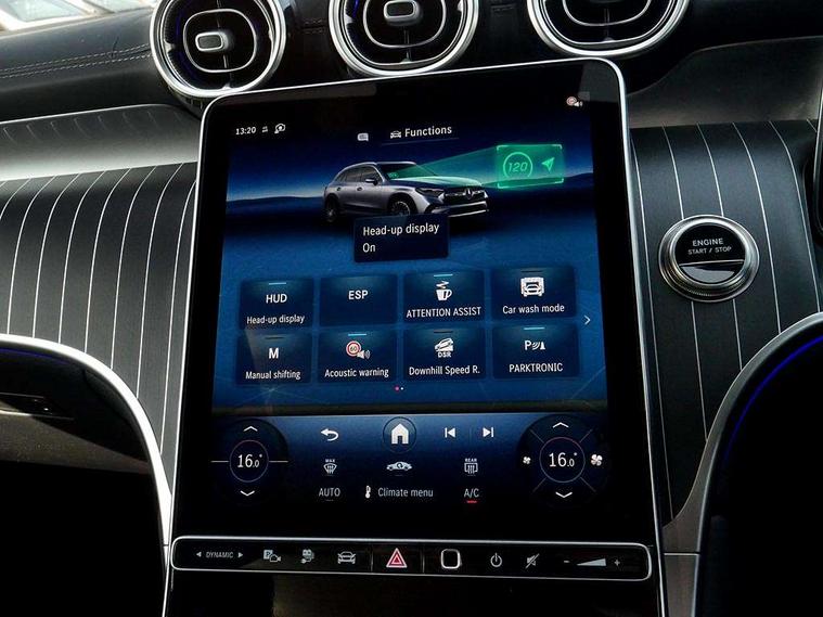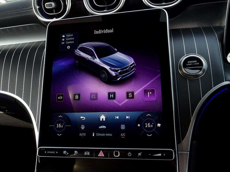 11.9" high resolution multimedia colour display, 12.3" Digital individually configurable instrument display, Acoustic presence indicator, Active lane keeping assist, Active park assist with PARKTRONIC/360 degree camera - Detects spaces/assists with steering, accelerating/braking when reversing into a parking space, Attention assist, Blind spot assist, Bluetooth interface for hands free telephone, Collision prevention assist plus, Direct steer speed sensitive steering, DYNAMIC SELECT with a choice of driving modes (ECO, Comfort, Sport and Individual, Offroad)), eCall emergency call system, Fingerprint scanner, Fluorescent jacket for driver, Hard disc navigation, Head up Display, Instrument display in miles with English lettering, MBUX augmented reality for navigation, MBUX navigation premium, MBUX voice control activated by keywords "Hey Mercedes", Mercedes me connect, Multi function trip computer, Outside temperature display, Remote and charging services plus, Remote boot release, Road sign recognition system, Service indicator (ASSYST), Smartphone integration with Apple CarPlay/Android Auto, Status display for rear seat belts in instrument cluster, Traffic sign assist, Wireless charging system for mobile devices in the front, 49 litre fuel tank, 4MATIC four wheel drive - variable all wheel drive system designed for all weather traction, 7.4 kW monophase on board charger, 9G TRONIC 9 speed automatic transmission with steering column gear selector and DIRECT SELECT steering wheel paddles, Alternating current charging system (AC charging), Charging cable for domestic socket (mode 2) - 5m, DC Charging system, Mode 3 charging cable for wallbox and public charging station with 5 m, straight, Petrol Particulate Filter (PPF), Residual engine heat utilisation, Burmester 3D surround sound system - 13 speakers and a 9 channel amplifier with total output of 590 watts, DAB digital radio tuner, MBUX extended functions, Pre installation for Mercedes Benz Link, Sound personalisation, Adaptive brake lights, Adaptive high beam assist plus, Aluminium look running boards with rubber studs, AMG bodystyling front apron, rear apron and side skirts, AMG Line exterior, Auto headlights, Black roof rails, Body colour bumpers, Body colour door mirrors, Digital light LED headlights, Electric panoramic glass sunroof, Electrically adjustable door mirrors, EQ Hybrid badging on front wings, Front and rear electric windows, Headlight washers, Heat and noise insulating acoustic glass, Heat insulating dark tinted glass, Heated rear window, High level LED brake light, Integrated LED daytime running lights, LED indicator lights, LED rear fog lights, LED tail lamp, MG diffuser look rear apron with insert in chrome, Motor way mode function and locator lighting, Radiator grille with Mercedes Benz pattern and integreated Mercedes star and louvre in dark grey matt with chrome inlay and black frame, Rain sensor windscreen wipers, Range adjustable headlights, Rear side wing doors, Rear wiper, Transparent Bonnet, Two chrome plated tailpipe trim elements, Variable front intermittent wipers, Welcome and follow-me home light functionality, Wheel arch liners in the vehicle colour, 3 seat bench in 2nd row, 40:20:40 split folding rear seats, Ambient lighting premium - Illuminated light lines on the centre console flanks, instrument panel, doors and in the air vents, additional dimming zone, AMG brushed stainless steel sports pedals with black rubber studs, AMG line interior, Artico man-made leather upholstery, Automatic child seat recognition sensor, Black fabric roof lining, Black floor mats with AMG lettering, Climatised front seats - Heated and cooled, Comfort seats, Double cup holder in centre console, Electrically height/reach adjustable steering column, Front centre armrest with stowage compartment, Front head restraints, Heated steering wheel, Illuminated and lockable glove compartment, Illuminated door sill panels with Mercedes Benz lettering, Instrument panel and beltlines in ARTICO manmade leather in nappa look, Interior ambient lighting - 64 colours, 10 colour themes with indirect illumination of the dashboard/door trims, 5 brightness levels/3 dimming zones, Multicontour front seat with massage function, Multifunctional sports steering wheel in nappa leather, galvanised gearshift paddles, audio and onboard setting controls, Partition net, Rear centre headrest, Rear head restraints, Rear top tether child seat ISOFIX attachment, Removable load compartment cover, Single front passenger seat, Sun visors, THERMATIC 2 zone automatic climate control, Boot comfort package - GLC, Easy tailgate pack - GLC, Exterior chrome package - GLC, Interior chrome package - GLC, Interior lighting pack - GLC, Keyless-Go comfort package - GLC, Memory pack - GLC, Mirror pack - GLC, Night package - GLC Urban Edition, Stowage space package - GLC, USB Plus Pack - GLC, 3 rear 3 point seatbelts, Active bonnet, Adaptive brake system with HOLD function and brake drying in the wet, Anti-lock braking system (ABS), ASR traction control, Automatic front passenger airbag deactivation, Black seat belts, Brake calipers with Mercedes-Benz lettering + perforated brake discs, Brake calipers with Mercedes-Benz lettering + perforated front brake discs, Child proof door locks, Dual-stage airbags - driver and front passenger, driver knee bag and window bags for driver, front passenger and rear passengers, Electronic parking brake, Electronic stability programme (ESP) with curve dynamic assist and cross wind assist, Front and rear seatbelt reminder, Front passenger seat occupancy sensor, Front seatbelt pretensioners, Hill start assist, Tyre pressure monitoring system, Warning triangle and first aid kit, Anti theft alarm system with immobiliser and interior protection, Automatic door locking, Guard 360 degree vehicle protection plus, Increased anti-theft protection, Interior protection/immobiliser, Remote central locking, Black open pore aluminium lines wood trim with centr