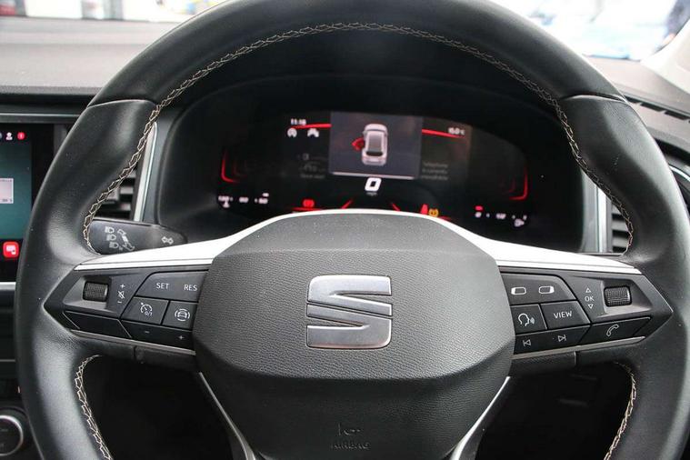 8" Digital cockpit, Colour multi-function on board computer display, Cruise control system with speed limiter, E-call, Outside temperature gauge, PAS, SEAT drive profile with driving experience button - Normal, Sport, Eco and Individual mode, steering and throttle response, Self parking functionality (includes front and rear parking sensors), Start/stop system, Tailgate, Trip computer, Wireless full link smartphone integration, Wireless phone charger, Steering wheel mounted audio/phone controls, Black wheel arch surrounds, Body colour bumpers, Chrome front grille frame, Chrome roof rails, Chrome side window trim, Daytime running lights, Door mirrors with welcome light silhouette, Dynamic headlight range control with self adjusting whilst driving, Electric adjustable/heated/folding door mirrors, Front and rear electric windows, Full LED headlamps with lens and LED front fog lamps with cornering function, LED rear tail lights with dynamic indicators, Rear fog lights, Rear side wing doors, Rear wash/wipe, Simulated exhaust pipes, Variable front intermittent wipers, 12V socket in front, 3 seat bench in 2nd row, 60/40 split folding rear seat, Cloth upholstery with front comfort seats, Drawer under right front seat, Dual zone climate control, Front and rear head restraints, Front centre armrest, Front seat back storage pockets, Height adjustable driver and passenger seat with lumbar adjustment, ISOFIX points in outer rear seats with top tether anchorage points, Leather steering wheel and gear knob, Rear armrest and easy back seat release mechanism from boot, Single front passenger seat, Interior lighting pack - Ateca, Navigation system pack with DAB - Ateca, 3x3 point rear seatbelts, ABS, Traction control system (TCS), Electronic stability control (ESC) and Electronic differential lock system (XDS), Airbags - Driver and front passenger airbag with deactivation, front side, two curtain and driver's knee airbags, Electric parking brake with auto hold function, Front and rear seatbelt reminder, Front assist with autonomous emergency braking, Hill hold control, Manual rear child locks, Single tone horn, Tiredness recognition system, Traction control, Tyre pressure monitoring system, Alarm, Keyless entry, Locking wheel bolts, Remote central locking, Chrome interior detailing, 18" Performance machined alloy wheels 36/2 in nuclear grey,