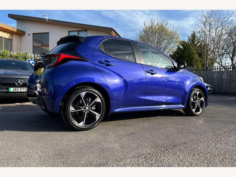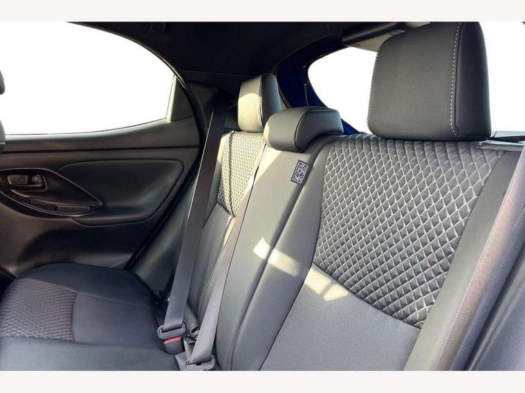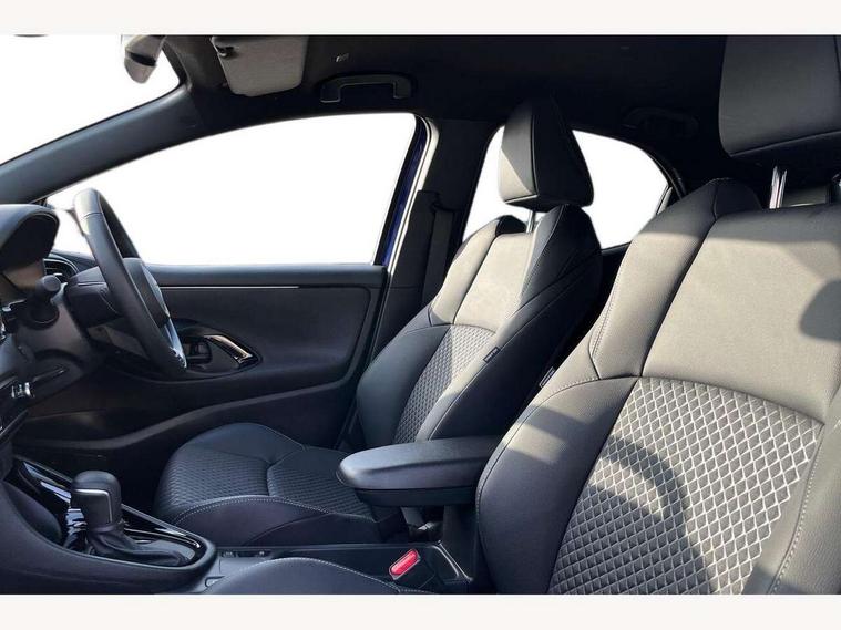 12.3" Digital Combimeter, Adaptive cruise control, Adjustable speed limit with speed warning, Bluetooth connectivity, Colour binocular inspired displays with digital speedometer, E-call, Electric power steering, Hybrid energy display, Lane trace assist, Multi information display switches on steering wheel, Pre-collision system (PCS), Reversing camera, Tailgate, Voice recognition, Wireless charger, Vehicle Stability Control (VSC), 10.5" Toyota smart connect multimedia with wireless smartphone integration incl apple car play and cloud Navigation, 6 speakers, Toyota Touch 3 system with DAB radio, USB connection, Acoustic windscreen glass, Auto high beam assist, Auto windscreen wipers, Automatic headlights, Body coloured door mirrors, Electric adjustable heated door mirrors, Follow me home headlights, Front auto power windows with anti jam protection, LED daytime running lights, LED front fog lights, LED front light guide, LED Headlights, LED High mounted stop lamp, LED Indicators, LED rear light guide, Manual headlight levelling, Painted chequered front grille, Rain sensor, Rear auto power windows with anti jam protection, Rear privacy glass, Rear roof spoiler, Rear side wing doors, Rear wiper, Satin lower front grille, Shark fin antenna, Turning signal integrated indicators in door mirrors, Variable front intermittent wipers, 3 adjustable rear headrests, 3 seat bench in 2nd row, 3 spoke leather steering wheel, 60/40 split folding rear seat, Active headrests, Adjustable boot height, Coat hooks in rear grab handles, Cup holders (2 front & door), Data Communication Module (DCM) connected services, Dual zone automatic air conditioning, Front armrest, Front sport seats, Glovebox, Grey roof lining, Height adjustable driver's seat, Height adjustable passenger seat, Isofix seat fixing, Leather gearshift, Map pockets on the backs of the front seats, Nanoe-X air purifier, Partial leather upholstery, Pollen filter, Shopping bag hooks, Single front passenger seat, Tilt/telescopic steering column, Safety pack - Yaris, 3 point seatbelts on all rear seats, ABS+EBD+Brake assist, Electronic parking brake, Emergency brake light system (EBS), Front passenger airbag on/off switch, Front seatbelt reminder, Hill start assist control (HAC), Rear child proof door locks, Rear seat belt reminder, Supplemental Restraint System (SRS) 8 airbags: Driver & passenger's airbags, dual side curtain airbags, side impact airbags, front centre airbag, Toyota Safety Sense 3 with over the air updates, Tyre pressure warning system, 2x Master key, Alarm/immobiliser, Keyless smart entry with push button start, Remote AC via MyT, Remote locking via MyT, Remote powered central double locking doors, Piano black interior trim, Satin chrome interior styling, Soft touch instrument panel, Space saver spare wheel,