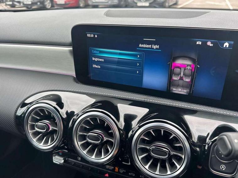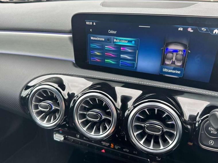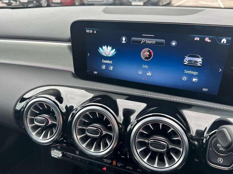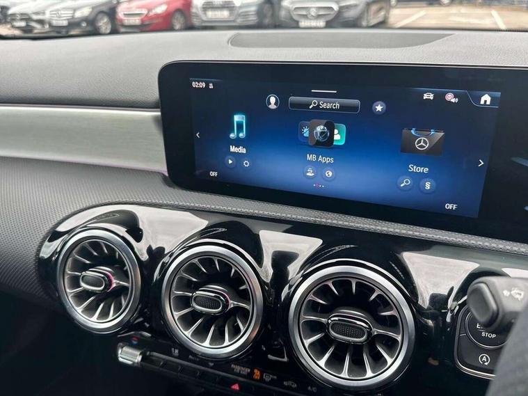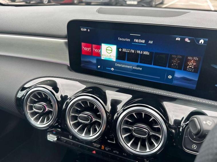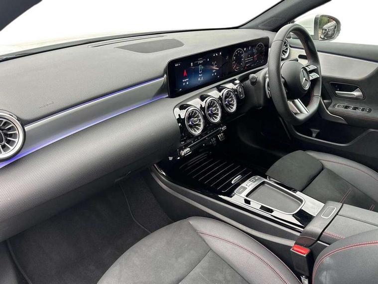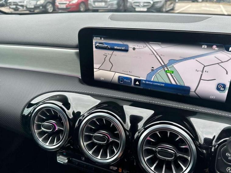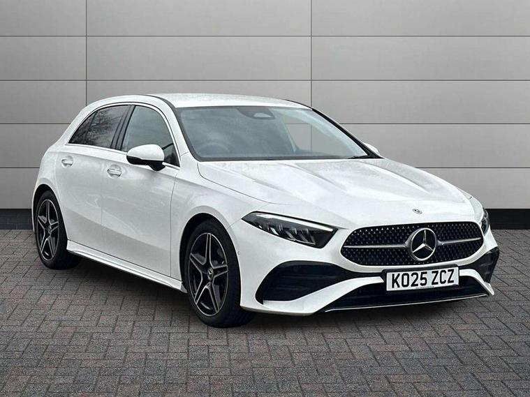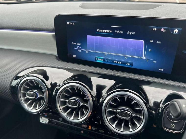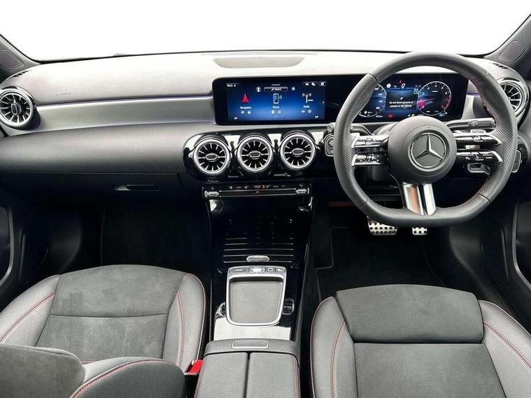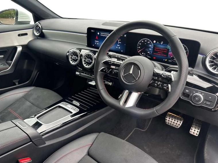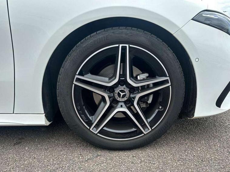 10.25 inch touchscreen central media display, 10.25" Digital instrument cluster display screen, Attention assist, Blind spot assist, Brake pad wear indicator warning light, Car wash mode, Cruise control + speed limiter, Direct steering, Direction indicators with lane change function, Dual bluetooth interfaces, DYNAMIC SELECT with a choice of driving modes (ECO, Comfort, Sport and Individual), ECO start/stop function, Engine start/stop button, Fluid level warning indicator for fuel, oil, coolant and washer fluid, Fluorescent jacket for driver, Hard-disk navigation, Hey Mercedes Voice activation, Lamp failure indicator, Lane keeping system, Mercedes me connect including emergency call system, accident recovery, breakdown and maintenance management, Mercedes me remote services, Outside temperature gauge, Owners manual in English, Pre-installation of private car share, Remote boot closing, Service indicator (ASSYST), Smartphone integration with Apple CarPlay and Android auto, Speed limit assist, Speed sensitive power steering, Tailgate, Trip computer in multifunction display with current consumption indicator, Wireless charging, Lowered comfort suspension, DAB Digital radio, MBUX multimedia system, Mercedes Benz sound system (100 W) with 6 speakers, 4 Electric Front and Rear windows, Adaptive brake lights, AMG body styling - AMG front apron with front splitter and AMG rear apron and visible exhaust tailpipe trim elements, Body colour bumpers, Body colour door handles with chrome inserts, Body colour side skirt, Chrome beltline strips, Diamond radiator grille with pins in fine star pattern, Electric adjustable and heated door mirrors with integrated LED side indicators, Exhaust system with 2 visible tailpipe trim elements and rear apron, Headlamp assist automatic headlamp activation, Heated glass rear windscreen + timer control, LED High level third brake light, LED High Performance headlamps including integral LED daytime running lamps and adaptive highbeam assist, LED tail lamp, Privacy glass, Radio aerial, Rain sensing windscreen wipers with two sensitivity settings, Rear fog lights, Rear side wing doors, Rear windscreen wiper, Window line trim strip in chrome, 3 seat bench in 2nd row, 3 Spoke flat bottom leather multi function steering wheel with perforated leather in grip area, 4 way lumbar support, 40:20:40 split folding rear seats, Air conditioning - One zone THERMATIC automatic climate control with automatically controlled air distribution, AMG floor mats, Artico man-made leather/Microcut microfibre upholstery, Automatic child seat recognition sensor, Black air vents with surround in silver chrome, Black roof lining, Brushed stainless steel sports pedals with rubber studs, Front centre armrest with stowage, Front door sills with Mercedes Benz lettering, Front seat backs luggage nets, Galvanished gear shift paddles on steering wheel, Heated front seats, Height/reach adjustable steering column, Interior lighting - 64 colour Ambient lighting, Interior mirror with reading lamps in black and frameless, Rear armrest with 2 cupholders, Rear head restraints, Seat occupancy sensor for front passenger seat, Single front passenger seat, Sports seats with integrated headrests, Stowage compartment in centre console with retractable cover, Sunvisors with illuminated vanity mirrors, Twin front cupholders, Light and sight package - A Class, Mirror package - A Class, Parking pack with 180 degree view - A Class, Seat comfort pack - A Class, USB pack plus - A Class, 3 rear 3 point seatbelts, ABS with Brake Assist, Active bonnet, Active brake assist includes forward collision warning system with autonomous braking, Adaptive brake assist with hold function and hill start assist, Bonnet with power domes, Childproof locks manually operated for rear doors and electrically operated for rear power windows, Crash responsive emergency lighting, Driver and passenger head and side airbags, Drivers knee airbag, Dual stage driver/passenger airbags, Electronic parking brake, ESP curve dynamic assist, ESP with ASR, Front and rear seatbelt reminder, ISOFIX and top tether child seat fixing points in two outer rear seats, Tyre pressure monitoring system, Warning triangle and first aid kit, Window airbags, Alarm system/interior protection/immobiliser, Guard 360 degree vehicle protection, Keyless entry lock/unlock, Keyless Go, Remote central locking and crash sensor with emergency opening function, Black seatbelts, Light longitudinal grain aluminium trim, 18" AMG 5 twin spoke light alloy wheels, aerodynamically optimised, painted in black with high sheen finish, Summer tyres, Tirefit sealant kit,