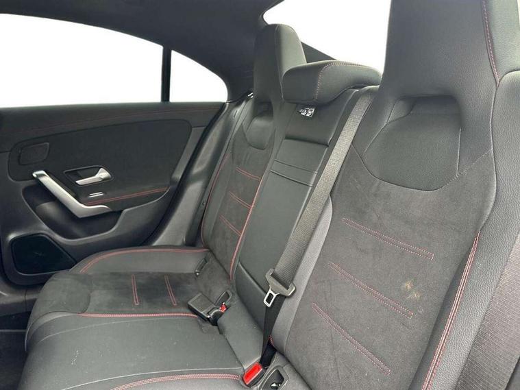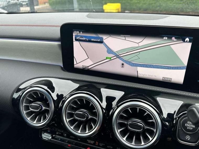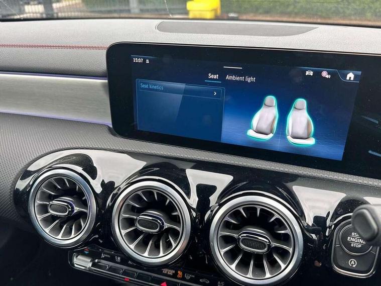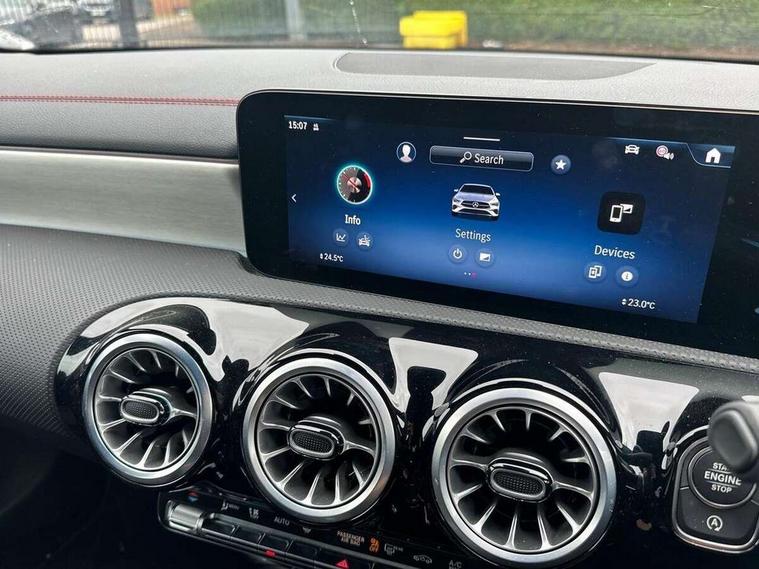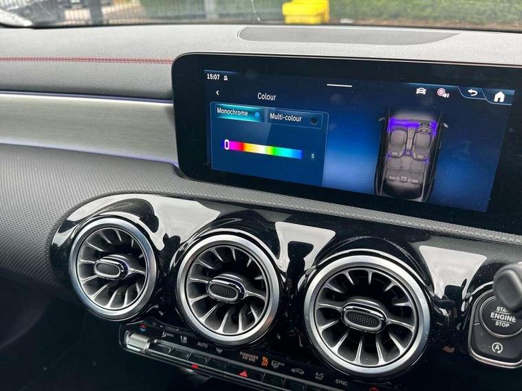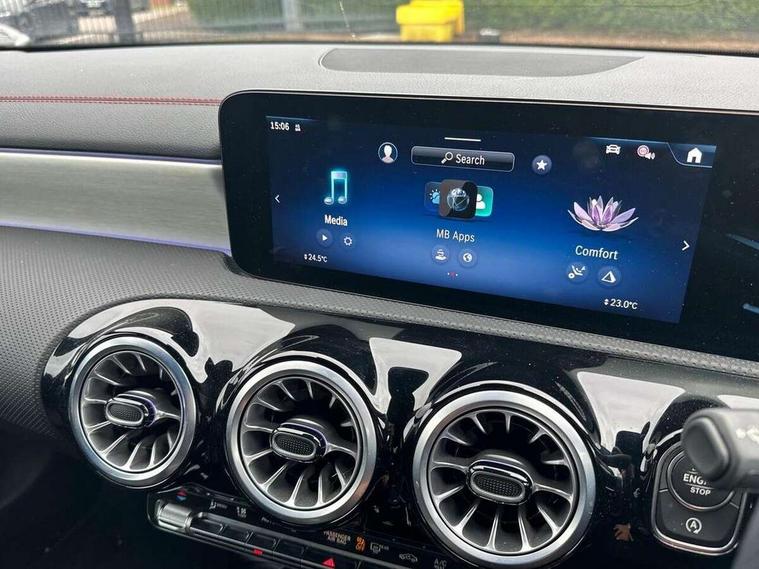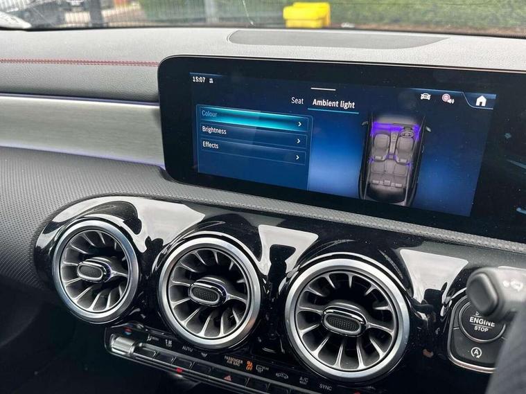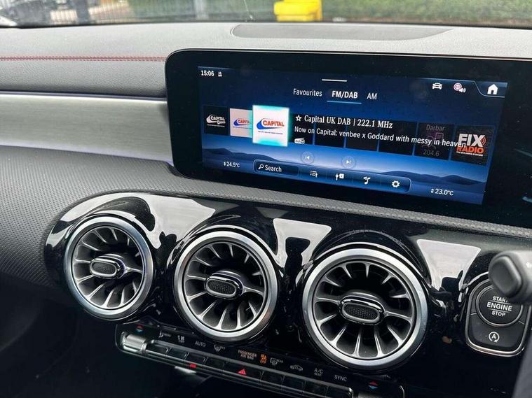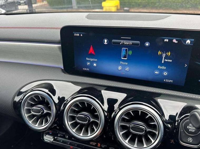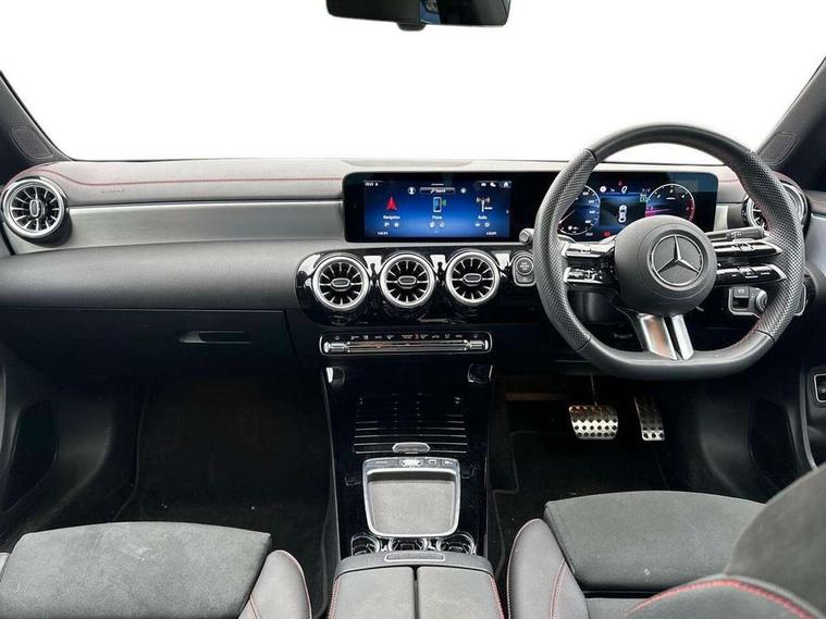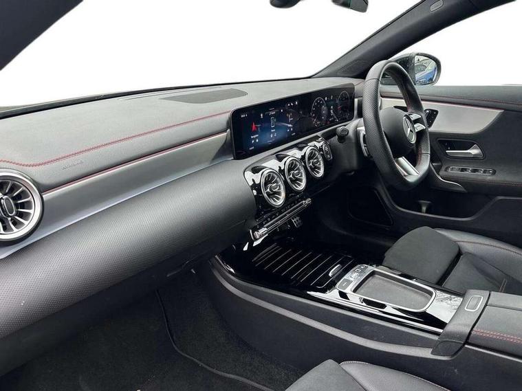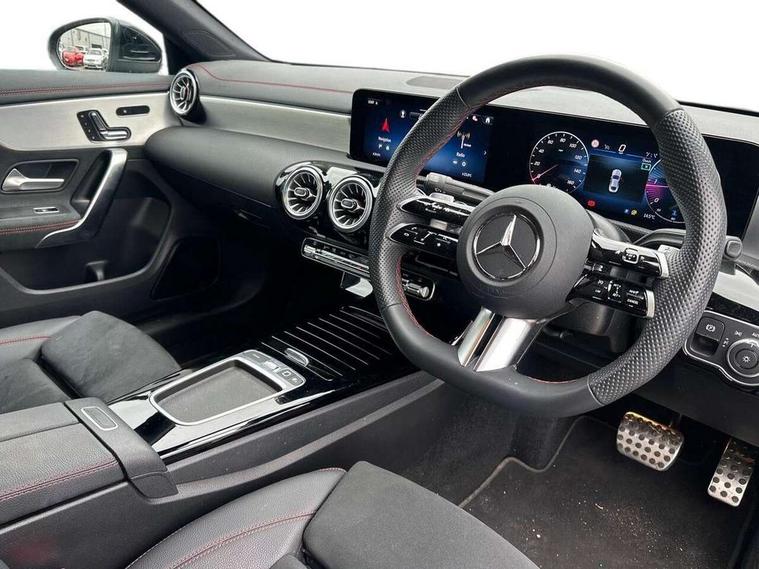 10.25 inch Instrument display with digital cockpit, 10.25 inch touchscreen central media display, Active lane keeping assist, Attention assist - Monitors steering behaviour and long journey fatigue, Blind spot assist, Bluetooth connection, Car wash mode, Cruise control with limiter, Direct steer system, DYNAMIC SELECT with a choice of driving modes (ECO, Comfort, Sport and Individual), ECO start/stop function, Fingerprint sensor, Fluid level warning indicator for fuel, oil, coolant and washer fluid, Hard-disk navigation, Hey Mercedes Voice activation, Lamp failure indicator, Mercedes me connect including emergency call system, accident recovery, breakdown and maintenance management, Mercedes me remote services, Outside temperature gauge, Owners manual in English, Pre-installation of private car share, Radio aerial integrated into front and rear windshields, Service indicator (ASSYST), Smartphone integration with Apple CarPlay and Android auto, Speed limit assist, Trip computer in multifunction display with current consumption indicator, Wireless charging in the front centre console, Comfort suspension with ride height lowering, Rear axle multi-link, DAB digital radio tuner, MBUX multimedia system, Mercedes Benz advanced sound system (225 W) with 10 speakers, 1 central speaker, speakers on doors, a tweeter on door, one sub woofer + boost amplifier, Pre installation for Mercedes Benz Link, Adaptive brake lights, AMG body styling with AMG front apron and rear apron and visible exhaust tailpipe in chrome trim elements, Body colour door handles, Electric windows, Electrically adjustable and heated door mirrors with integrated LED indicators, Exhaust system with 2 Visible tailpipe trim elements and rear apron with trim in chrome, Hand free access, Headlamp assist automatic headlamp activation, Heated glass rear windscreen + timer control, High level LED third brake light, Interior mirror with black reading lamps and frameless, LED high performance headlamps with integrated LED daytime running lights and adaptive highbeam assist, LED tail lamp, Privacy glass with dark tinting on rear side windows and rear window, Radiator grille with Mercedes-Benz pattern in chrome and central Mercedes star, single louvre in high-gloss black with chrome inserts, Rain sensing windscreen wipers with two sensitivity settings, Rear boot, Rear fog lamp, Rear side wing doors, Variable front intermittent wipers, 3 seat bench in 2nd row, 3 twin spoke flattened multifunction steering wheel in nappa leather - horizontal twin spoke in high gloss black, vertical twin spoke in silver chrome, 40:20:40 split folding rear seat backrests, Air conditioning - Two zone thermotronic luxury automatic climate control with display, Air vents with surround in silver chrome, Artico man-made leather/Microcut microfibre upholstery, Automatic child seat recognition sensor, Black roof lining, Brushed stainless steel sports pedals with rubber studs, Electrically adjustable front memory seats including 4 way lumbar support, Floor mats with stitched AMG lettering, Fluorescent jacket, Front centre armrest with stowage, Galvanished gear shift paddles in silver chrome, Interior lighting - 64 colour Ambient lighting, Luggage net on driver/front passenger seat backrest, Manually height and reach adjustable steering column, Rear armrest with two integral cup holders for drinks, Rear head restraints, Single front passenger seat, Sport seats with fixed head restraints, Stowage compartment in centre console with retractable cover, Sunvisors with illuminated vanity mirrors, Twin front cupholders, Two outer rear seat isofix and top tether child seat fixing points, Keyless go comfort pack - CLA, Light and sight pack - CLA, Mirror pack - CLA, Night package - CLA, Parking pack with reversing camera - CLA, Seat comfort pack - CLA, USB package plus - CLA, Winter pack - CLA, Active bonnet pedestrain safety measure which detects an impact and raises bonnet by 65mm, Active brake assist includes forward collision warning system with autonomous braking, Adaptive brake assist with hold function and hill start assist, Anti lock braking system (ABS) with brake assist, Bonnet with power domes, Brake calipers with Mercedes-Benz lettering, Brake pad wear warning indicator, Childproof locks manually operated for rear doors and electrically operated for rear power windows, Crash responsive emergency lighting, Crystal grey seat belts, Driver and front passenger head and sidebags, Driver and front passenger windowbags, Drivers knee airbag, Dual stage driver and front passenger airbags, Electric parking brake, Electronic stability programme with acceleration skid control, ESP curve dynamic assist, Exit warning, Front and rear seatbelt reminder, Front passenger seat occupancy sensor, Perforated front brake discs, Sports braking system, Three point rear seat belts, Tyre pressure monitoring system, Warning triangle and first aid kit, Alarm system with immobiliser and interior protection -Thatcham category 1, Guard 360 deg vehicle protection - tow away protection with visual, acoustic warning, interior monitoring, preinstallation for parking damage, Remote central locking and crash sensor with emergency opening function, Light aluminium with longitudinal grain interior trim, 19" AMG 5 twin spoke light alloy wheels painted in high gloss black with high sheen finish, Summer tyres, Tirefit tyre sealant kit,