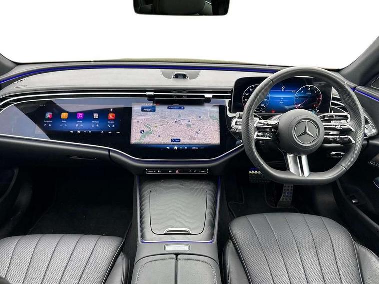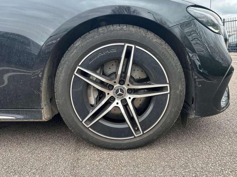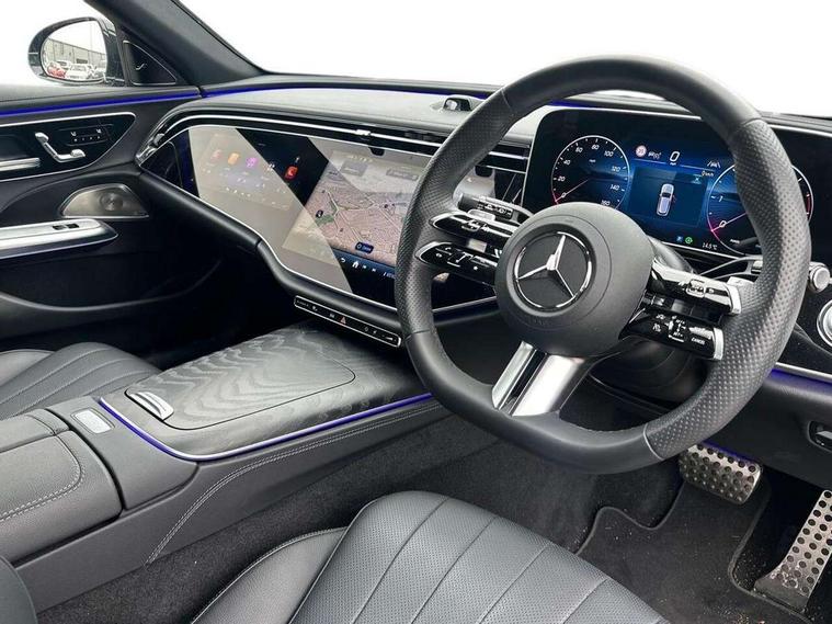 12.3" Driver display screen, 14.4" central media display, 5G Communications module, Attention assist, Augmented reality navigation, Blind spot assist, Brake wear warning display, Direct steer speed sensitive steering, Easy-pack tailgate - Powered opening/closing automatically, ECO start/stop function, Emergency call assistance, Evasive manoeuvre support, Fluorescent jacket for driver, Hard disc navigation, Head up Display, MBUX navigation premium, MBUX superscreen with 12.3" passenger display and privacy function, MBUX voice control, Mercedes connect me, Outside temperature display, Preinstallation for live traffic, Remote bootlid closing, Remote Services Premium, Selfie and video camera, Service indicator (ASSYST), Status display for rear seat belts in instrument cluster, Trip computer in multifunction display showing current fuel consumption, Wireless charging, Wireless smartphone integration with Apple CarPlay and Android auto, 48V Mild hybrid technology, 66 litre fuel tank, 9G TRONIC automatic transmission, Agility control suspension with selective damping and lowering, Bluetec emission control, Diesel particulate filter, Integrated starter generator Gen 2, Rear air suspension with level control, Sporty engine sound system, 2 USB ports in centre console, 2 USB ports in the rear, Burmester 4D premium sound system, DAB Digital radio, Preinstallation for MBUX Entertainment Plus, Sound visualisation, 3rd brake light, Acoustic glass, Adaptive brake lights, Aerial integrated in rear window, AMG bodystyling, Auto dimming driver's door mirror, Auto dimming rear view mirror, Black radiator grille, Chrome roof rails, Digital air vent control, Electric folding door mirrors, Electric windows with one touch opening/closing and obstruction sensors, Electrically adjustable and heated door mirrors, Heat insulating privacy glass, LED daytime running lights, LED digital light with adaptive highbeam assist plus, Pre-installation for roof rail systems, Rear side wing doors, Rear wiper, Surround lighting with logo projection, 3 seat bench in 2nd row, 4 way lumbar support, Active ambient lighting, AMG brushed stainless steel sports pedals with rubber studs, AMG floor mats, AMG line interior, Automatic child seat recognition sensor, Central stowage compartment with USB socket for use with Android Auto and Apple CarPlay, Comfort seats, Courtesy lights in rear grab handles with reading light functionality, Folding rear seat backrest, Front centre armrest with stowage compartment, Glove compartment - lockable, air conditioned and illuminated, Head restraints for driver and front passenger (four-way adjustability) and in rear (two-way), Heated front seats, Illuminated door sills, Multifunction sports steering wheel in nappa leather, Roof liner in black fabric, Seat occupancy sensor for front passenger seat, Single front passenger seat, Steering wheel touch control buttons for audio and onboard settings, Sunvisors with illuminated vanity mirrors, Thermotronic 4 zone climate control, Keyless Go comfort package - E Class, Leather package - E Class, Memory package - E Class, Parking package with 360 degree camera - E Class, USB plus package - E Class, 3x3 point rear seatbelts, Active bonnet pedestrian safety measure which detects an impact and raises bonnet, Adaptive brake system with HOLD function and brake drying in the wet, Airbags - sidebag for driver and front passenger with combined thorax/pelvis bag, Anti-lock braking system (ABS), Automatic front passenger airbag deactivation, Central airbag, Childproof locks manually operated for rear doors and electrically operated for rear power windows, Driver and adaptive front passenger airbags, Electronic parking brake, Electronic Stability Programme, Hill start assist, ISOFIX child seat attachment points two outer rear seats, Knee airbags, Pedestrian protection, Pre-Safe anticipatory safety system, Tyre pressure monitoring system, Warning triangle and first aid kit, Window airbags, Alarm system with interior monitoring, Central locking with interior switch, automatic locking and crash sensor with emergency opening function, Dashcam, Digital vehicle key, Guard 360 degree vehicle protection plus, Increased anti theft protection, Urban guard vehicle protection plus, Centre console trim in open pore black ash wood, Dash trim deleted for MBUX Superscreen, 19" AMG 5 twin spoke bi colour alloy wheels, Summer tyres, Tirefit,