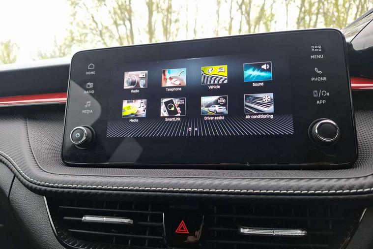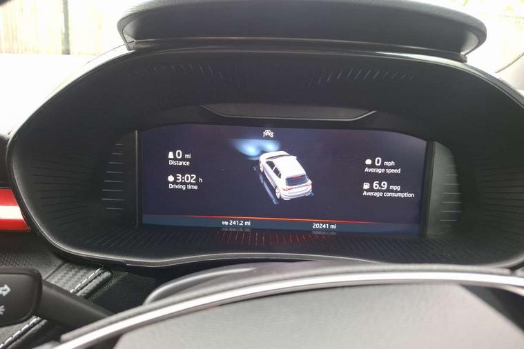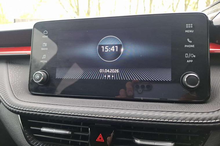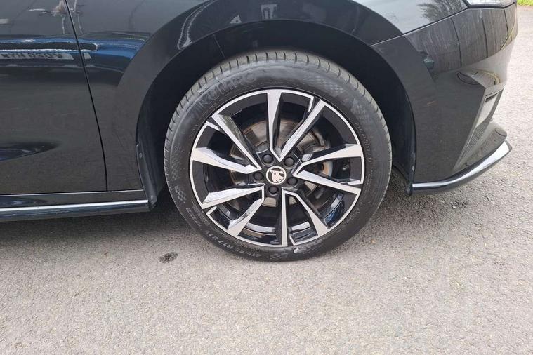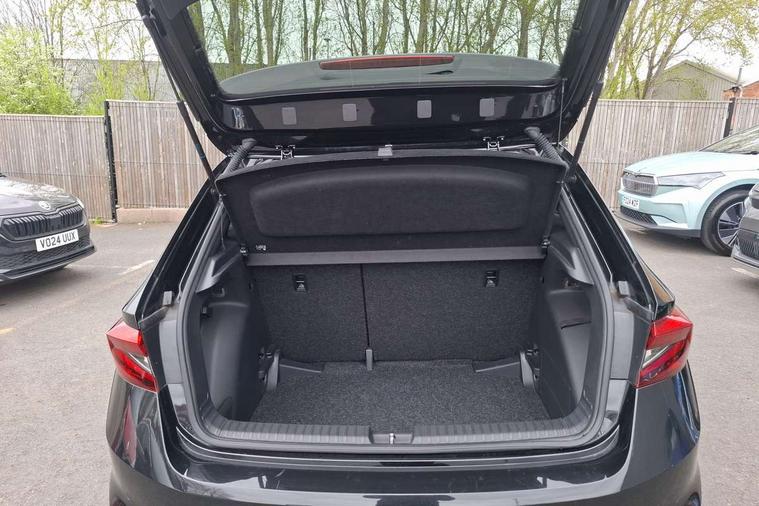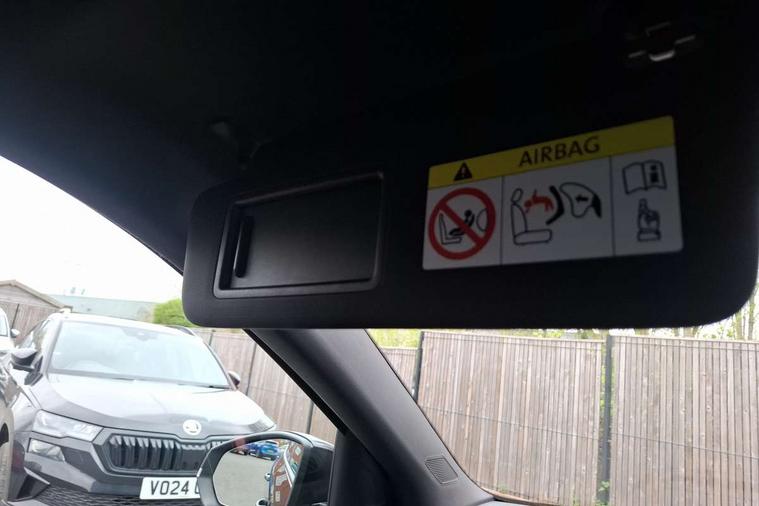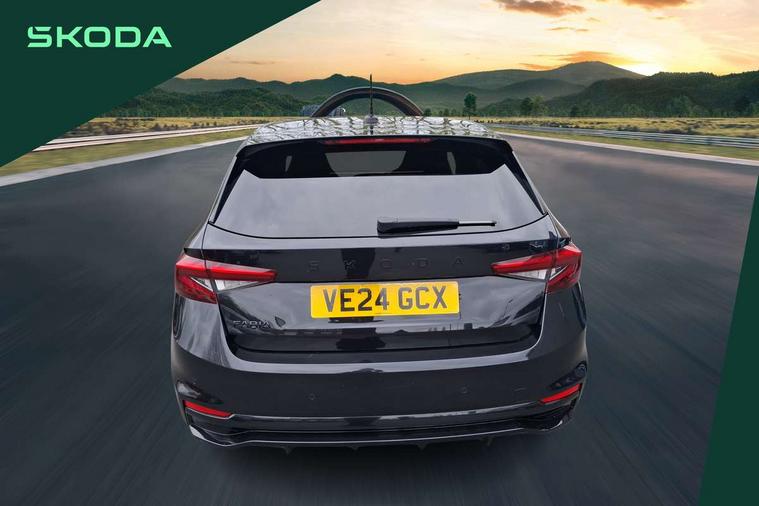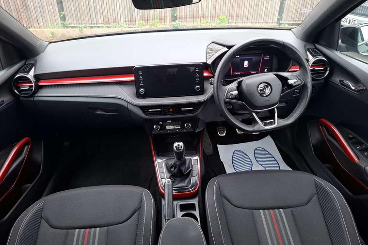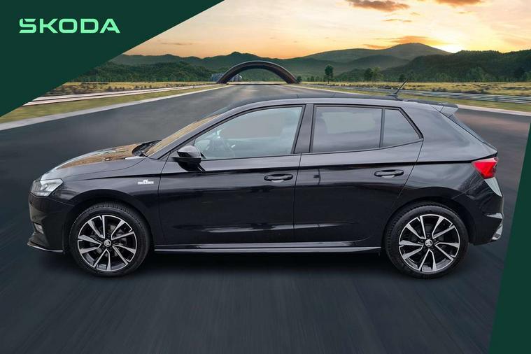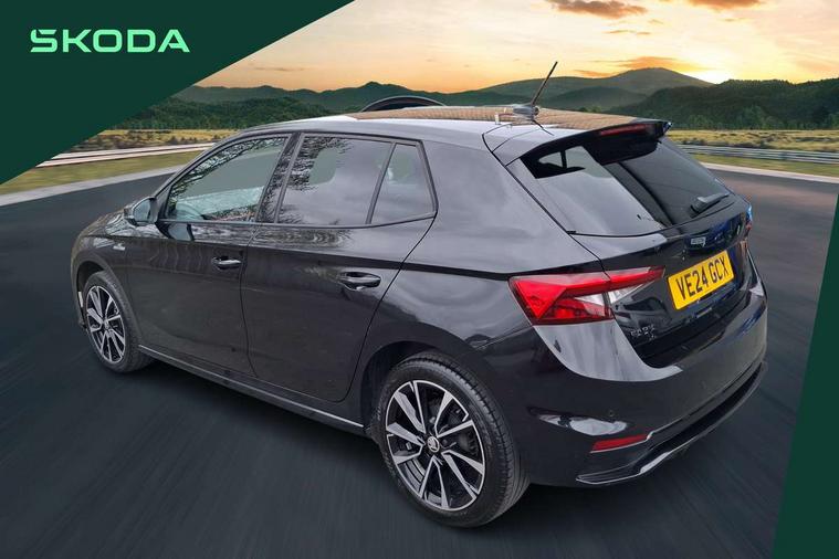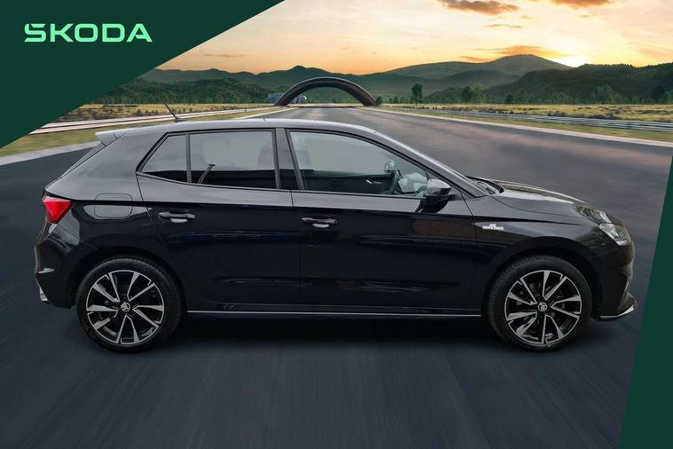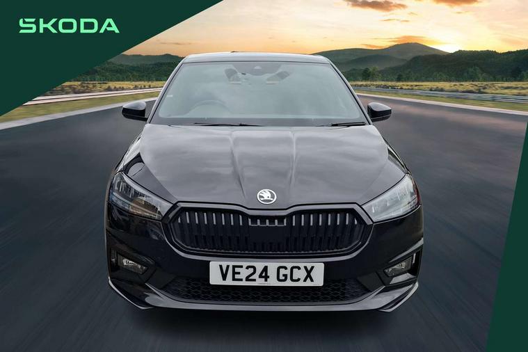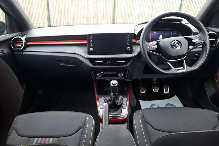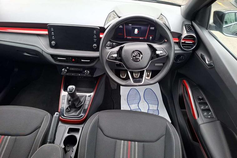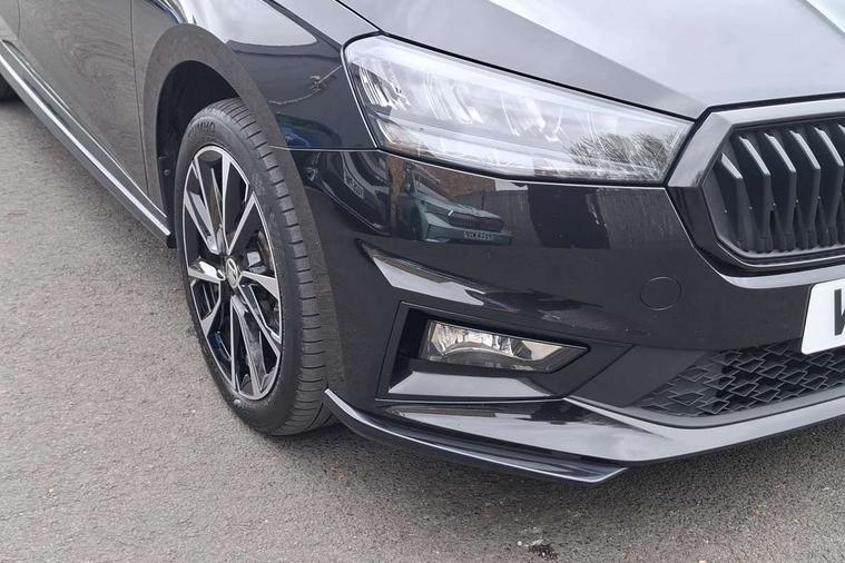 Advanced driver attention and drowsiness monitor, Bluetooth connection, Electromechanical power steering, Exterior temperature gauge, Service interval indicator, Traffic sign recognition, Virtual cockpit with 10.25" colour display, Wireless SmartLink for Apple CarPlay and Android Auto, 6 Speakers (4 in front and 2 in rear), Auxiliary socket for external MP3 player, DAB digital radio reception, Auto dimming rear view mirror, Black radiator grille, Body coloured bumpers, Door mirror integrated indicators, Front and rear electric windows, Front window wiper intermittent control, Headlight range control - Automatic, Ice scraper in fuel cap, LED daytime running lights with coming and leaving home feature, LED rear lights, Monte Carlo badging, Privacy glass, Rear LED fog light, Rear side wing doors, Rear window wiper with washing nozzles, Roof mounted spoiler, SKODA tailgate lettering in black, Sports bumpers, Third brake light, 2 reading lights in front and 2 reading lights in rear, 3 rear headrests, Aluminium pedals, Backrest split and folding, Black headlining, Central console with removable cup holder and storage box, Chrome handbrake release button, Door sills with fabia badging, Dual zone air conditioning with climatronic electronic control, Fabric/artificial leather upholstery, Front centre armrest, Front sports seats, Gearshift knob/handle in leather, Hand brake lever handle in leather, Height adjustable front headrests, Height adjustable front seats, Height adjustable steering wheel, ISOFIX and TopTether anchorage points to the outer rear seats, ISOFIX and TopTether on the front passenger seat, Luggage compartment lighting, Manually adjustable lumbar support in front seats, Metallic painted red central console cover, Metallic red interior door handles, Pollen filter, Rear seat bench unsplit, Single front passenger seat, Sun visors with mirror and airbag label on passenger side, Textile floor mats, Ticket holder, Umbrella in drivers door, 3-point height adjustable front seats belts with pretensioner and force limiter, Automatic warning lights in case of crash, Driver and passengers airbag with switch off function, e-Call+, ESC including ABS, MSR, ASR, EDS, HBA and XDS, Front and rear seat belt warning, FRONT ASSIST (AEB City and AEB Inter Urban), Front side airbags, Head airbags, One tone horn, Pedestrian protection, Three rear 3-points safety seat belts with pretensioner and force limiter including stop function for outer rear seat belts, Tyre pressure monitoring system, Anti-theft alarm system including immobiliser, interior monitoring, backup horn, and towing protection, Central locking with radio remote control, interior controls, SAFE function and 2 foldable keys, Carbon effect door and side trim panels, Carbon effect lower decorative trim with white stitching, Monte carlo air vents, Red metallic upper decorative trim, Anti-theft wheel bolts protection, Super-low rolling resistance tyres,