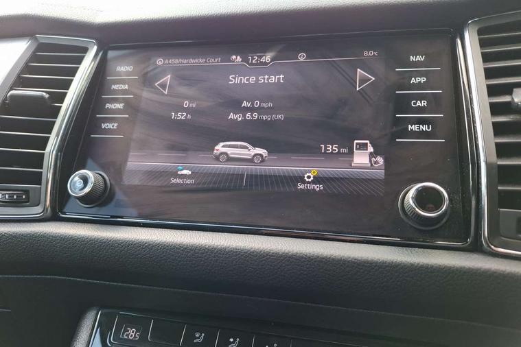 8" Digital display, Amundsen satellite navigation with 8" touchscreen, integrated Wi-Fi, web radio, Bluetooth system, Digital voice enhancement, e call+, ECO Stop/start function, Exterior temperature indicator, Power assist steering, Rear view camera, Smartlink wireless for apple carplay and wired for android auto, Speed limiter, Tailgate unlocking from outside, USB C Port x 2 in front centre console, 8 Speakers, DAB Digital radio, Aero front windscreen wipers with intermittent function, Aero rear window wiper, Auto dimming rear view mirror, Black wheel arch surrounds, Body colour bumpers, Body colour door mirrors and handles, Electric front and rear windows, Extended rear spoiler with finlets in gloss black, Front fog lights, Headlight washers, Heated rear window, Invisible tailpipe, LED rear fog light, LED third brake light in rear spoiler, Light assistant (coming/leaving home/tunnel light), Off-road style lower front bumper element, Privacy glass, Radiator grille frame in matt black with chrome strip, Rain and light sensors, Rear LED lights (high functionality) with welcome effect and dynamic indicators, Rear side wing doors, Safety reflectors on front and rear doors, Window control switches with black trim, 12V socket in boot, 2 rails with 2 hooks, 2 seat bench in 3rd row, 3 seat bench in 2nd row, 4 foldable roof handles with rear coat hooks, 60:40 foldable rear seat with sliding adjustment and backrest angle adjustment, Bottle holders in door panel in the 1.5 litre front and 1 litre rear, Cargo storage compartments, Chrome interior door handles, Cloth upholstery, Coat hooks on B pillar, Covered storage compartment on driver side, Dual zone automatic air conditioning with humidity sensor and control, Front centre armrest with storage compartment, cup holder and 12V socket, Gear shift lever with chrome frame and black gloss insert, Grey headlining, Grey stitching in front and rear armrests and door armrests + door inserts, Height adjustable front headrests, Height adjustable front seats, Illuminated and cooled glovebox, Illuminated luggage compartment, Isofix child seat fittings in outer rear seats with top tether, Manually adjustable steering column, Net programme in boot (1x horizontal Net, 2x vertical Nets), Overhead glasses storage compartment, Pollen filter, Rear centre armrest with cupholders, Single front passenger seat, Sliding trunk cover, Small Bags on the inner sides of the front backrests, Sunvisors with illuminated vanity mirrors, Three rear height adjustable headrests, Ticket holder on A Pillar, Umbrella in door panel, Variable boot floor, Auto door release and activation of warning lights in the event of an accident, Child locks on rear doors, Driver and front passenger airbag with knee airbag and front passenger airbag deactivation, Electronic parking brake with hill start assist, Emergency rear braking signal, ESC (incl. ABS+MSR+ASR+EDS+HBA+DSR+RBS+MKB), Front assist with autonomous emergency braking, Front side airbags with curtain airbags, Fuel cut off safety device, Height adjustable front 3 point seatbelts + pretensioners, Hill hold control, Rear disc brakes, Safety vest holder in door, Seat belt reminder for all seats, Three point rear seat belts, Two tone horn, Tyre pressure monitor, Alarm with interior monitoring and tilt sensor with safe function, Anti-theft wheel bolts, Immobiliser, Keyless entry and start system (KESSY), Remote central locking with 2 keys, Grey stitching in dashboard, Temporary spare wheel (space saver),