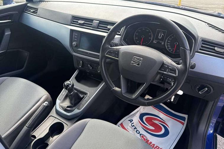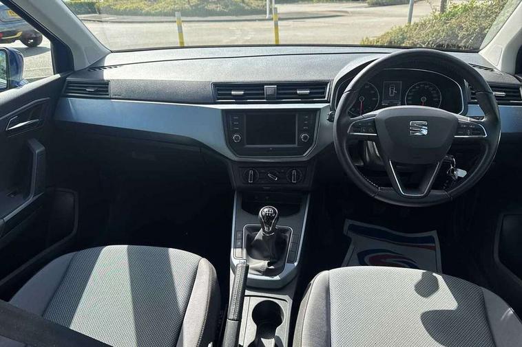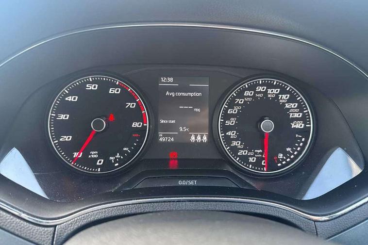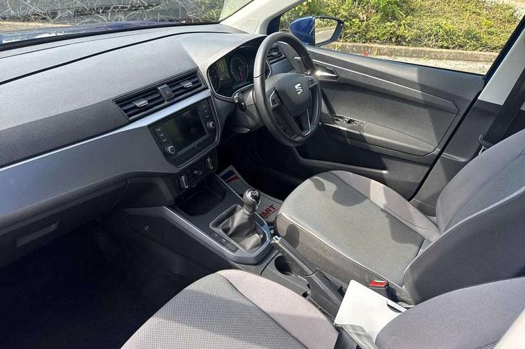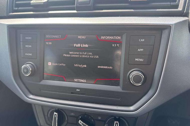 'Lights On' Reminder warning buzzer, Cruise control, Digital clock, Electric speed sensitive power steering, Front assistant collision mitigation, Full Link Smartphone Integration with Mirror Link, Apple Car Play, Google Android Auto, Low fuel warning light, Outside temperature display, RPM counter, Trip computer, Comfort suspension, 6 speakers, Bluetooth interface for hands free and audio streaming, DAB Digital radio, Media system with 6.5" colour touchscreen with USB/Aux-in, SEAT USB media cable, Steering wheel mounted audio controls, Anti theft roof antenna, Automatic activation of hazard warning lights, Automatic headlights, Black roof rails, Black window surrounds, Body coloured bumpers, Body coloured door handle inserts, Chrome grille surround, Electric adjustable door mirrors, Electric front/rear windows with one touch/auto up/down, Electric headlight adjustment, Front fog lights with static cornering function, Halogen headlights, Hidden exhaust pipe, LED daytime running lights, LED licence plate lighting, LED tail lights, Rear fog lights, Rear window wash/wipe, Visible VIN plate, Windshield wiper with intermittent control and potentiometer, 2 cupholders, 3 rear height adjustable headrests, 60/40 split folding rear seat, Active head restraints, Air conditioning, Ambient interior lighting, Card holder, Cloth upholstery, Double boot floor, Driver and passenger sunvisors, Driver/front passenger seat height adjustment, Dust/pollen filter, Footwell ambient lighting, Front courtesy lights, Front reading light, Gear shift indicator, Height/reach adjustable steering column, Illuminated boot, Instrument lighting with brightness control, Isofix attachments on outer rear seats, Leather handbrake, Leather steering wheel and gear knob, 3 point seatbelts on all rear seats, ABS+EBA, Child locks on rear doors, Driver/Front Passenger airbags, Electronic stability control, Front and rear seatbelt reminder, Front side/curtain airbags, Height adjustable active front headrests, Hill hold control + Tyre Pressure monitor, Multi-Collision braking, Passenger airbag deactivate switch, Tiredness recognition system, Traction control, 2 folding remote keys with window open/close function, Immobiliser, Locking wheel bolts, Remote central locking + deadlocks, Interior chrome line trim, 17" Dynamic alloy wheels,