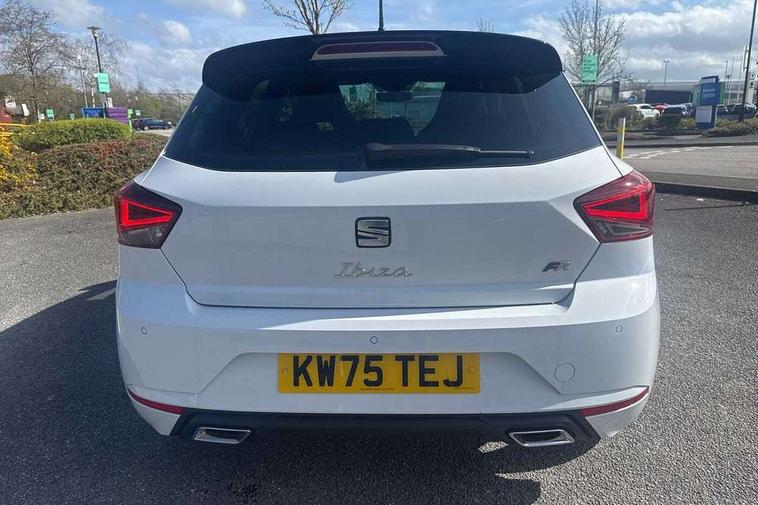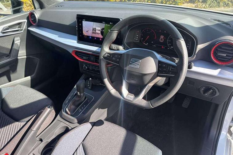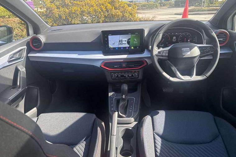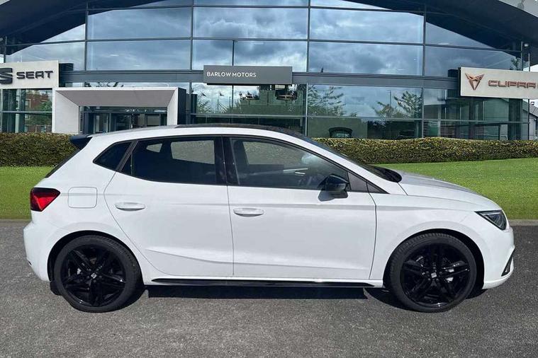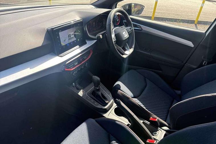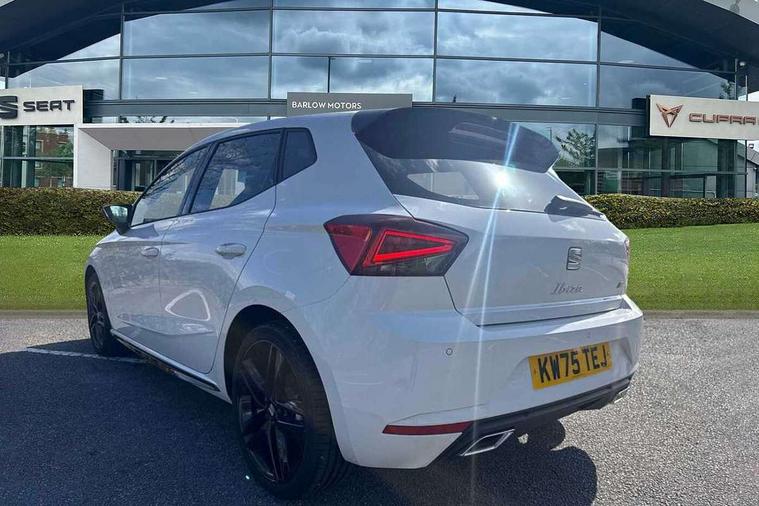 'Lights On' Reminder warning buzzer, 10" Digital cockpit, 9.2" touchscreen navigation system with type C USB socket, Voice control and DAB/AM/FM radio, Auto start and stop system, Bluetooth audio streaming with handsfree system, Digital clock, E-call, Full link smartphone integration with mirror link, wireless apple carplay, Google android auto + USB Type C cable for apple and android devices, Lane assist, Low fuel warning light, Outside temperature gauge, Power Steering, Rear parking sensor, Seat connect plus with safety, service, remote and online, SEAT drive profiles and ECO function, SEAT logo boot release, Speed limiter, Traffic sign recognition, Trip computer, Sports suspension, Auxiliary input socket, Radio/MP3 player, SD card slot, Steering wheel mounted controls, Anti theft roof antenna, Auto dimming rear view mirror, Automatic rain sensing wipers, Black door mirror caps, Black roof spoiler, Black side skirts, Body colour bumpers, Body colour door handles, Brilliant black window surrounds, Dark tinted rear windows, Electric adjustable/heated/folding door mirrors, Electric front windows, Electric headlight adjustment, Electric panoramic sunroof, Electric rear windows, Front/rear fog lights, FULL LED automatic headlights with dynamic headlight range control, coming and leaving home, LED daytime running lights, LED 3rd brake light, LED tail lights, Rear roof spoiler with FR twin exhausts, Rear side wing doors, Rear wiper, 3 seat bench in 2nd row, 60/40 split folding rear seat, Ambient interior lighting, Chrome detailing and black headlining, Dual zone climate control with combination filter, Front courtesy lights, Front cupholders x 2, Front reading lights, Front sport bucket seats, Gear shift indicator, Glovebox, Heated front seats, Height adjustable front and rear headrests (five), Height adjustable front seats, Height/reach adjust steering wheel, Illuminated air vent surrounds, Illuminated boot, Instrument lighting with brightness control, Isofix, Leather multifunction flat bottomed sports steering wheel with gearshift paddles, Microsuede cloth upholstery, Passenger sunvisor, Single front passenger seat, Storage pockets on back of front seats, Sunvisors with mirror and driver side card holder, Safety and driving pack (S) - Ibiza, ABS, Active front headrests, Child locks on rear doors, Electronic stability control, Energy recovery system, Front driver and passenger side airbags with curtain airbag and front passenger airbag deactivation, Hill hold control, Multi-Collision braking, Seat belt reminder for front and rear seats, Tiredness recognition system, Tyre pressure monitoring system, KESSY Keyless entry and go, Locking wheel bolts, Perimeter alarm and interior monitoring with backup horn and tow away protection, Remote central locking + deadlocks, 18" Performance alloy wheels in glossy black,