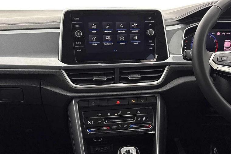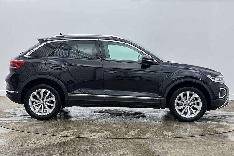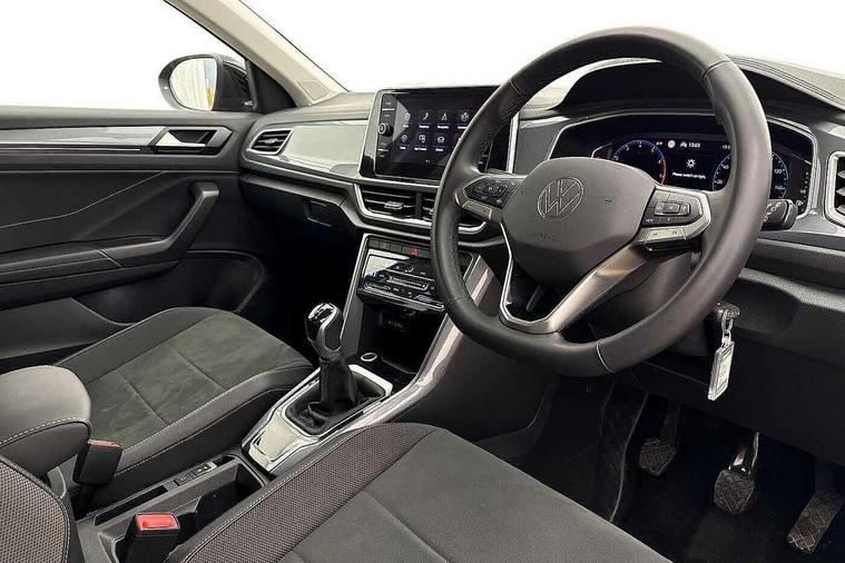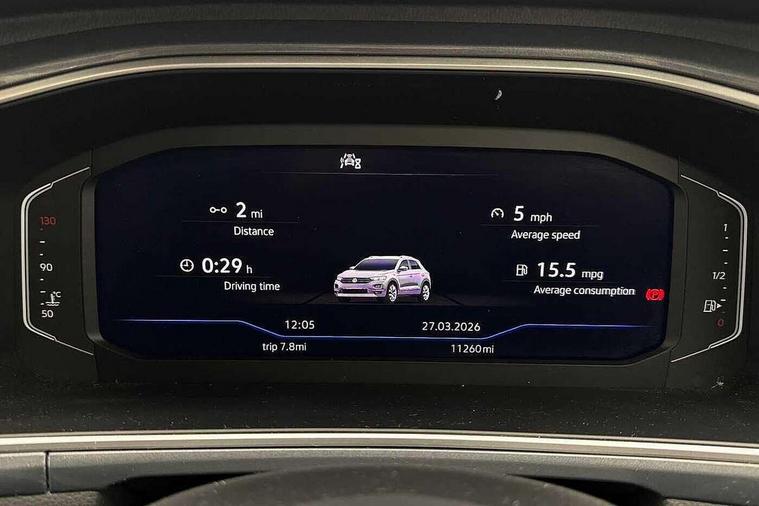 10.25" Digital cockpit pro, Advanced driver attention and drowsiness monitor, Emergency call service, Lane keeping system Lane Assist, Mobile phone interface, Modified key software - reduce switch off time for key status change to Long no motion, Online services, Park assist including front and rear parking sensors, Power assisted speed sensitive steering, Service interval indicator, Tailgate/trunk lid release from outside, Think blue trainer driver tips and journey analysis, Warning sound and light for front seatbelts unfastened, Wireless app connect, Battery regeneration during braking, Start/stop function with battery regeneration, DAB Digital radio, Diversity antenna for FM reception, Front and rear 6 speakers, Music playback - MP3, WMA and AAC files, Premium USB cable in choice of either Apple or Android smartphone compatibility, SD card slot, Simultaneous pairing of 2 compatible mobile devices, Title and cover art display, We Connect and We Connect Plus functionality, Auto dimming interior rear view mirror, Automatic hazard lights activation under emergency braking, Automatic headlight control with LED separate daytime running lights with coming/leaving home function, Body colour sports bumpers with silver metallic underbody fascia, Body coloured exterior mirror housings and door handles, Dynamic headlight range control with self adjusting whilst driving, Electrically adjustable and heated door mirrors, Extended roof spoiler, Exterior mirrors aspherical on driver side, convex on front passenger side, External USB type C socket and charging sockets, Front windscreen wiper with intermittent wipe and 4 position delay, Heated rear window, LED 3rd brake light, LED rear combination lamps, LED rear number plate lights, Light mode for poor weather, rain, fog or snow, Power windows with comfort operation and circuit breaker, Privacy glass for rear side windows and rear window, Rain sensor, Rear exhaust tailpipe, Rear fog light on one side and reversing lights on both sides, Rear side wing doors, Rear wash/wipe with intermittent wipe setting, Remote electrically foldable door mirrors, puddle lights and reverse activated passenger's door mirror, 12V power socket in centre console, 3 rear head restraints, 3 seat bench in 2nd row, 4 load lashing points in luggage compartment, Air care climatronic air conditoning system with active combination filter and 2-zone temperature control, Chrome plated radiator grille inserts, air vent surrounds and light switch surrounds, Door and side trim panel with leatherette insert, Drawer under drivers seat, Front + rear carpet mats, Front centre armrest, Front comfort sports seats, Front cupholders x 2, Front footwell illumination, Front seat back storage pockets, Glove compartment door with light, Instrument lighting, white adjustable panel illumination, Interior ambient lighting and surround lighting, Interior light delay, Isofix child seat preparation, Leather gearshift handle, LED interior light with switch off delay/dimmer and 2 front/rear LED reading lights, Load-through provision with cup holder when folded down ('Unsplit rear seat bench, split folding backrest, with centre armrest), Luggage compartment lighting, Non-folding front passenger seat backrest, Single front passenger seat, Storage compartment in left and right luggage area, Storage compartment in rear doors, Storage compartments in driver and front passenger doors, Sunvisors with illuminated vanity mirrors, Variable boot floor, height adjustable and removable, Driver assistance pack without proactive passenger protection - T-Roc, 3 point height adj front seatbelts + pretensioners, 3 point seatbelts in outer rear with ECE label, ABS, Child locks on rear doors, City emergency braking and pedestrian monitoring, Driver and front passenger airbag with front passenger airbag deactivation, Driver and front passenger safety-optimised head restraints, Drivers seatbelt reminder, Electronic parking brake, Electronic Stability Control (ESC) inc EDL (Electronic Differential Lock) and ASR (Traction Control), Front and rear passengers curtain airbag system including front side airbags, Predictive pedestrian protection, Rear disc brakes, Two tone horn, Tyre pressure loss indicator, Volkswagen roadside assistance, Deep iron grey decorative inserts in dashboard, centre console and front door trim panels, Trims for alloy wheels,