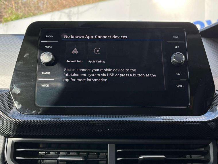 'Lights On' Reminder warning buzzer, 8" Digital cockpit, Advanced driver attention and drowsiness monitor, Bluetooth telephone and audio connection for compatible devices, Car information display, Dynamic road sign display, E-Sim card for online connectivity, eCall emergency call system, Front and rear parking sensors, Front assist, forward collision warning, autonomous emergency braking and speed limiter, Low washer fluid warning light, Multifunction computer with visual gear change recommendation for fuel consumption, Multifunction front facing camera for distance control, Operating permit alteration, Power assisted steering, Predictive adaptive cruise control, Preparation for navigation system with media and internet package, Preparation for We connect and We connect plus, Rear view camera, Semi-automated driving assistance, travel assist including lane keeping system Lane Assist and emergency assisst, Side assist, Speedo, rev counter, electronic odometer, trip, service interval display, exterior temperature and fuel gauge, Warning sound and light for doors and tailgate open, Warning sound and light for front seatbelts unfastened, Wireless Car net app connect with Apple CarPlay, combined functionality of Apple CarPlay/Android Auto and MirrorLink, Wireless charging, Misfuel prevention device, Start-stop system with battery regeneration (recuperation - energy recovery during braking), 2 USB C ports in front, 2 USB charging sockets on the centre console in the rear charging capacity upto 45W, DAB Digital radio receiver, Diversity antenna for FM reception, Multi device interface (MDI) with USB connection, Music playback - MP3, WMA and AAC files, Radio, Automatic dimming interior rear view mirror, Automatic hazard lights activation under emergency braking, Automatic headlight control with LED separate daytime running light and coming home and leaving home feature, Body colour door handles, Body colour door mirrors, Body coloured bumpers, Dynamic headlight range control with self adjusting whilst driving, Electric folding door mirror, adjustable, heated with front passenger exterior mirror lowering function, Exterior mirrors convex on the left and aspherical on the right, Front and rear electric windows, Galvanised body, Heat insulating and laminated safety glass windshield, Heat insulating darkened glass in side and rear windows, High Beam Assist, automatic sensing for switching between dipped and main beam, LED rear combination lights, LED third brake light, Lower door sills and door pillars in black, Rain sensor, Rear fog light on one side, reversing light on both sides, Rear side wing doors, Rear window aerial, Rear window wiper with intermittent control, Reflectors in all doors, Scuff plates, Tailgate with integrated roof spoiler, 12V Accessory socket in centre console, 3 rear head restraints, 3 seat bench in 2nd row, 60/40 split folding rear seat backrest, Ambient lighting and logo projection, Ceramique roof lining, Cloth upholstery, Door and side trim panel, Driver and front passenger sunvisor with vanity mirror, Dust and pollen filter, Front and rear reading lights X 2, Front centre armrest with storage compartment, Front seat back storage pockets, Glove compartment door with light, Heating and fresh air system with 4 stage blower, Height/reach adjust steering wheel, Instrument lighting white adjustable panel illumination, Interior light with switch off delay and dimmer, Isofix anchors for child seats on outer rear seats and front passenger seats, Leather gearshift handle, Leather wrapped multifunction steering wheel, Luggage compartment floor, Luggage compartment lighting, Manual front seats with height adjustment, Padded dashboard, Removable luggage compartment cover, Single front passenger seat, Storage compartment in drivers and front passengers door, Unsplit sliding rear seat bench, Without drawers under front seats, 3 point outer rear seat belts with ECE label, 3 Point seatbelt for centre rear seat, Anti-lock Braking System (ABS) with Hydraulic Brake Assist (HBA), Automatic post collision braking system, Disc brakes in front, Driver and front passenger safety-optimised head restraints, Drivers and Front Passengers airbags with front passengers airbag deactivation switch, Drum brakes in rear, ESC with EDL and ASR (traction control), Extended and predictive pedestrian/cyclist protection, Front and rear passenger curtain airbag system including front side airbags, Height adjustable front 3 point seatbelts + pretensioners, Hill start assist, Pre crash preventive occupant protection, Proactive passenger protection system in combination with front assist, Rear door child safety locks, Rigid safety cell with front and rear crumple zones, Single tone horn, Tyre pressure loss indicator, Volkswagen roadside assistance, Alarm with interior protection, Anti theft alarm system, Electronic engine immobiliser, Remote keyless entry using key fob including Start/Stop button on centre console with SAFELOCK, Remote tailgate unlocking using key fob, Low rolling resistance tyres,