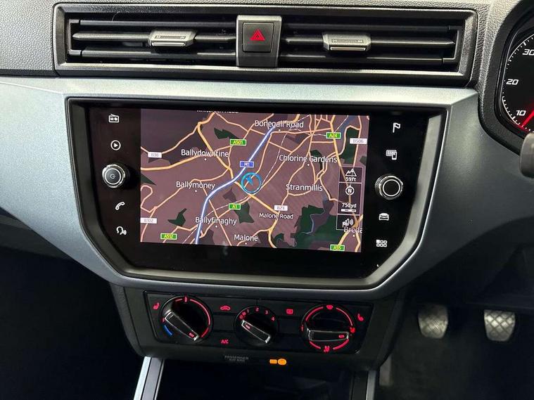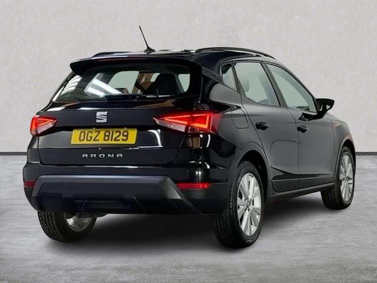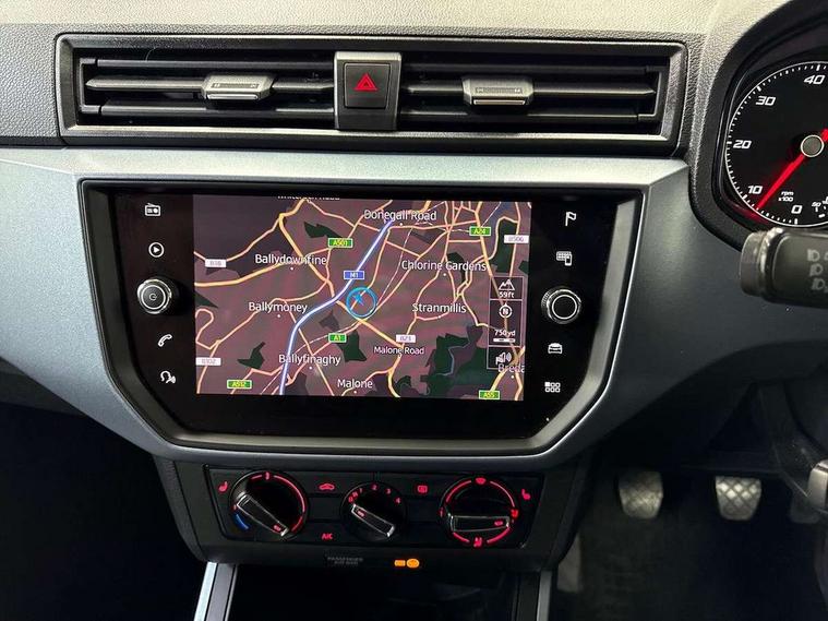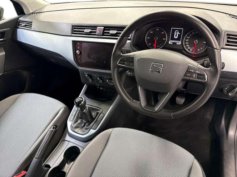 'Lights On' Reminder warning buzzer, Adaptive cruise control, Digital clock, Electric speed sensitive power steering, Full Link Smartphone Integration with Mirror Link, Apple Car Play, Google Android Auto with USB Type C cable for Apple and Android compatibility, Low fuel warning light, Outside temperature display, Rear parking sensor, RPM counter, Trip computer, Comfort suspension, 6 speakers, Beats audio system, Bluetooth interface for hands free and audio streaming, DAB digital radio and AM/FM radio, Steering wheel mounted audio controls, Anti theft roof antenna, Automatic activation of hazard warning lights, Automatic headlights, Black roof rails, Black window trims, Body coloured bumpers, Body coloured door handle inserts, Body coloured door mirrors, Chrome front grille frame, Dimming rear view mirror, Electric adjustable door mirrors, Electric front/rear windows with one touch/auto up/down, Electric headlight adjustment, Front fog lights with cornering function and rear fog light, Hidden exhaust pipe, LED daytime running lights, LED rear tail lights and licence plate lights, Rear window wash/wipe, Visible VIN plate, Windshield wiper with intermittent control and potentiometer, 2 cupholders, 60/40 split folding rear seat, Air conditioning, Cloth upholstery, Double boot floor, Driver sunvisor with covered mirror + card holder, Dust/pollen filter, Front courtesy light with front reading lights, Gear shift indicator, Grey interior roof, Height adjustable front seats, Height/reach adjustable steering column, Illuminated boot, Instrument lighting with brightness control, Interior footwell lighting, ISOFIX points in outer rear seats with top tether anchorage points, Leather steering wheel/gear knob/handbrake, Multi-colour ambient interior lighting, Passenger sunvisor with vanity mirror, Two front and three rear height adjustable headrests, Connectivity pack plus - Arona, Interior chrome pack - Arona, Winter pack - Arona, 3 point seatbelts on all rear seats, ABS, Active front headrests, Child locks on rear doors, Driver and front passenger airbags with front passenger airbag de activation, front side and curtain airbags, Electronic stability control, Emergency Brake Assist (EBA) and front assist, Front and rear seatbelt reminder, Hill hold control, Multi-Collision braking, Tiredness recognition system, Traction control, Tyre pressure monitoring system, 2 folding remote keys with window open/close function, Electronic engine immobiliser, KESSY Keyless entry and go, Locking wheel bolts, Remote central locking + deadlocks, Interior chrome line trim, Plastic grey dashboard, 17" Dynamic alloy wheels,