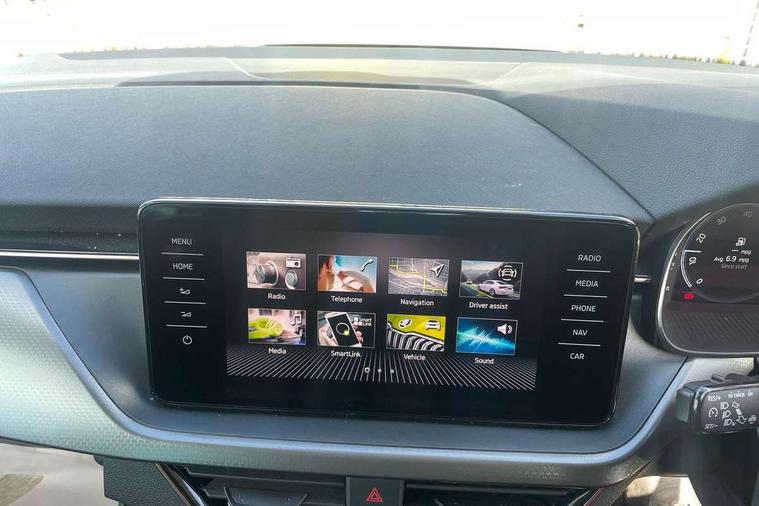 Amundsen satellite navigation with 9.2" glass colour touchscreen with virtual cockpit, web radio, Android Auto, Bluetooth system, Colour multifunction trip computer, eCall emergency system, PAS, Rain and light assist with auto dimming rear view mirror, Rear view camera, Speed limiter, Tailgate, Traffic sign recognition, Virtual cockpit, Voice control system, Wireless SmartLink for Apple Car Play, 2 USB - C ports, 8 loudspeakers, DAB Digital radio, 3rd brake light, Automatic headlamp activation with Coming home and Leaving home feature, Body colour door mirrors and handles, Chrome grille surround, Dimming rear view mirror with black frame, Electric folding door mirrors, Electrically adjustable and heated door mirrors, Front and rear electric windows, Front fog lights with cornering function, LED rear tail lights with dynamic indicators, Privacy glass, Rear side wing doors, Rear wiper, Tinted windows, 12V Accessory socket in centre console, 3 seat bench in 2nd row, Chrome inner door handles, Chrome on gear and handbrake lever, Chrome strip on the dash and door panel, Dual zone climate control, Front head restraints, Glasses storage in roof liner, Instrument cluster with chrome painted decor ring, ISOFIX for rear passenger seat, Leather gearknob and handbrake lever, Manual lumbar support for front seats, Net in centre console, Reading lights for driver and front passenger, Single front passenger seat, Sun visor with make up mirror for front passenger, Textile floor mats, Third rear headrest, Umbrella, 3x3 point rear seatbelts, Curtain airbags, Emergency call and proactive services, Front head and side airbags, Hill hold control, Manual rear child locks, One tone horn, Passenger airbag switch off function, Seat belt reminder for all seats, Alarm, Anti-theft wheel bolts, Keyless entry with start/stop button, Remote central locking with 2 remote folding keys, SAFE function for remote central locking, Latice grey decorative insert with copper hot stamping, Temporary space saver wheel,